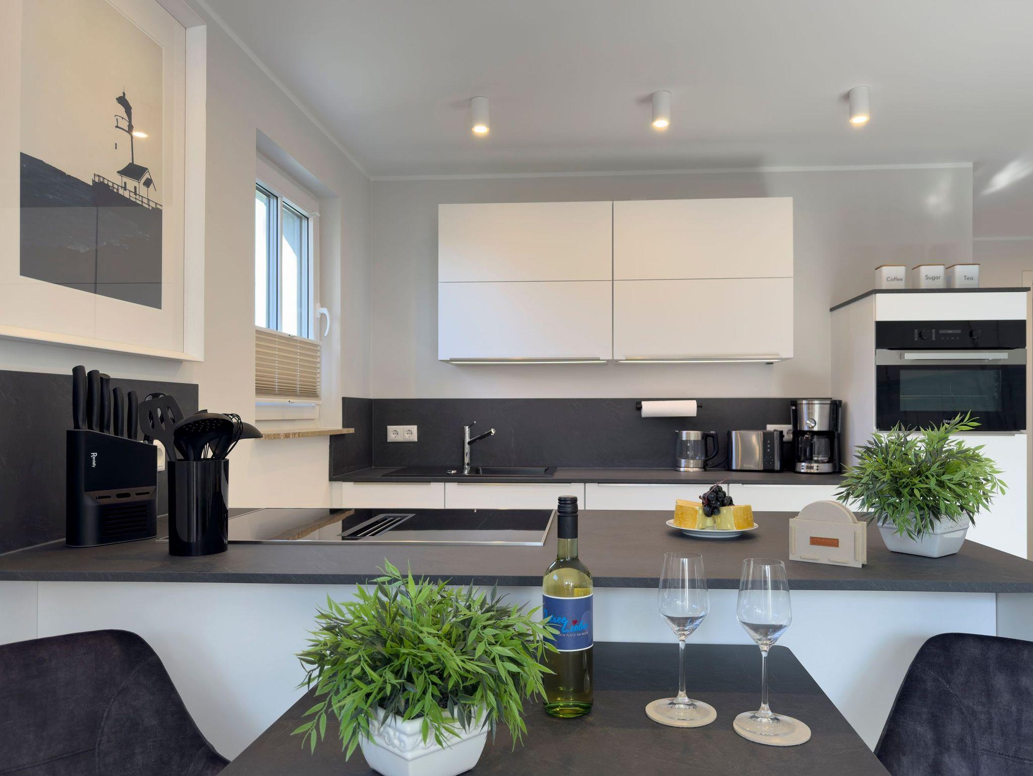 • Gut ausgestattete Küchenzeile mit Geschirrspüler und Filterkaffeemaschine