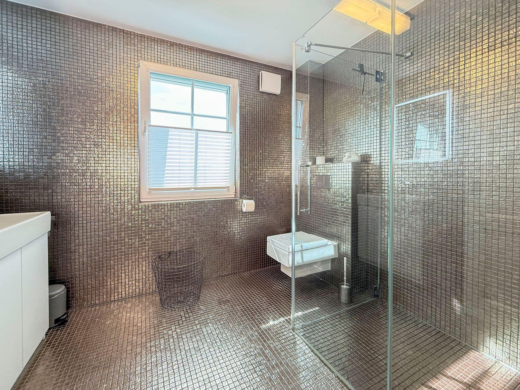 • Zwei moderne Badezimmer mit ebenerdiger Dusche und Föhn