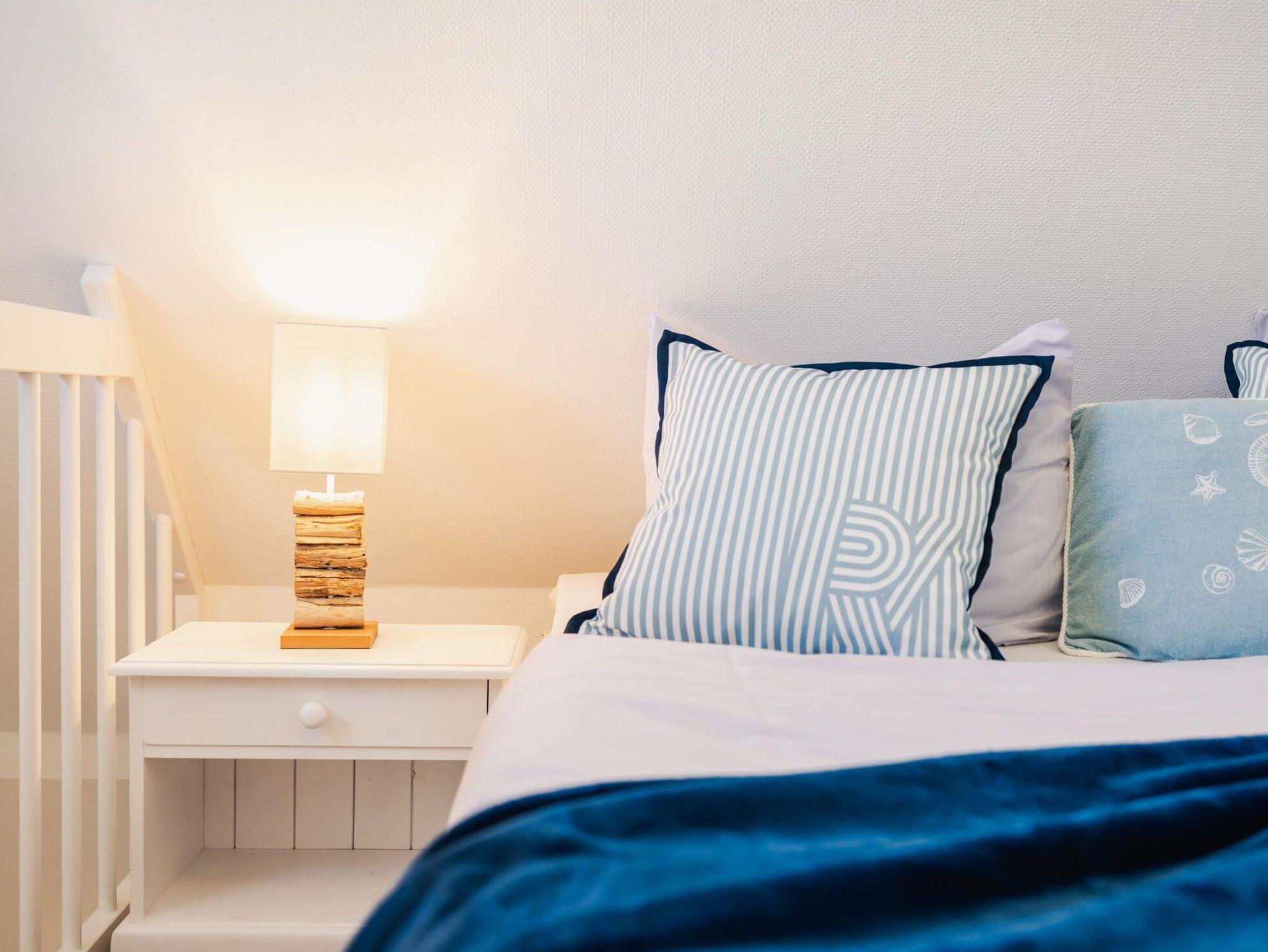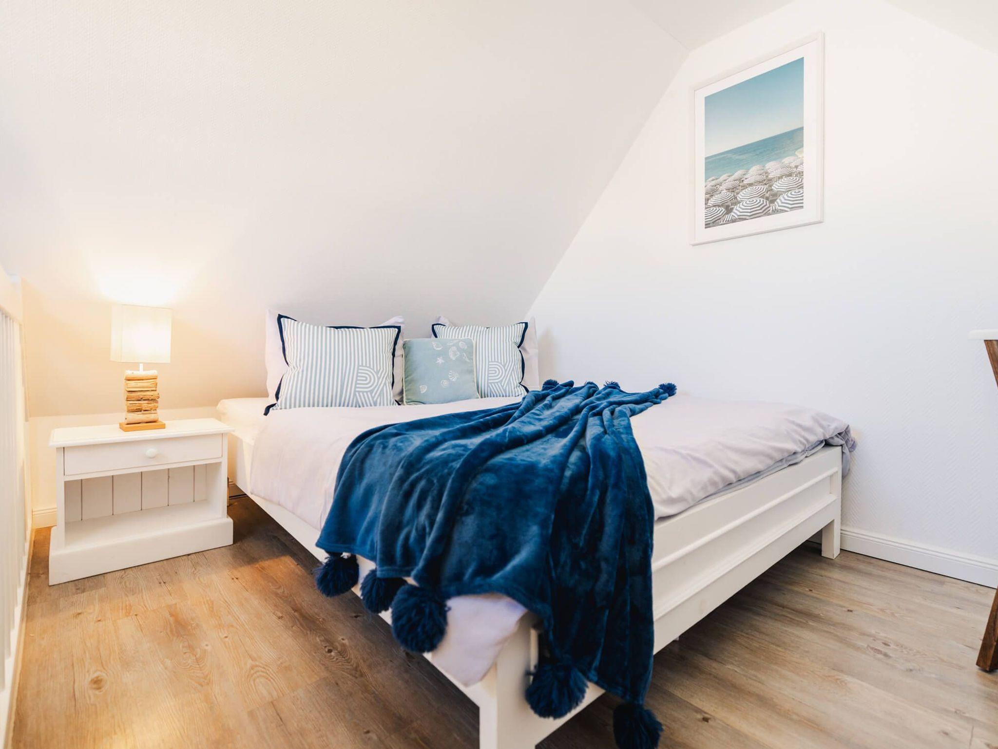 Ruhe und Entspannung im Obergeschoss: U?ber eine schmale Treppe gelangen Sie in das offene Obergeschoss, wo Sie ein Schlafzimmer mit komfortablen Betten erwartet.