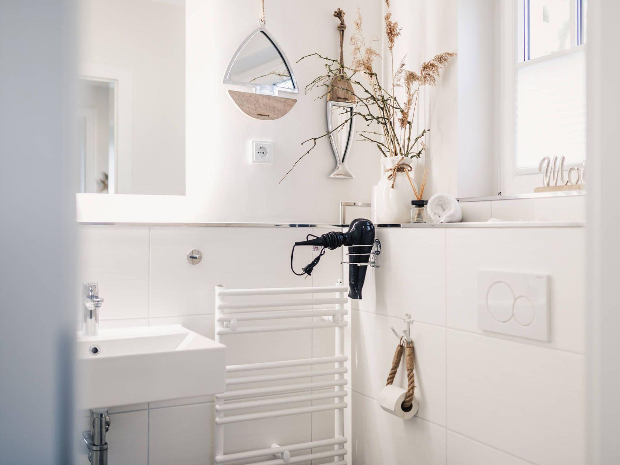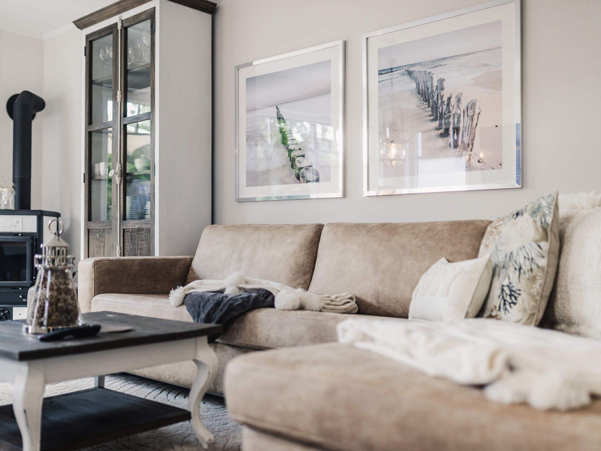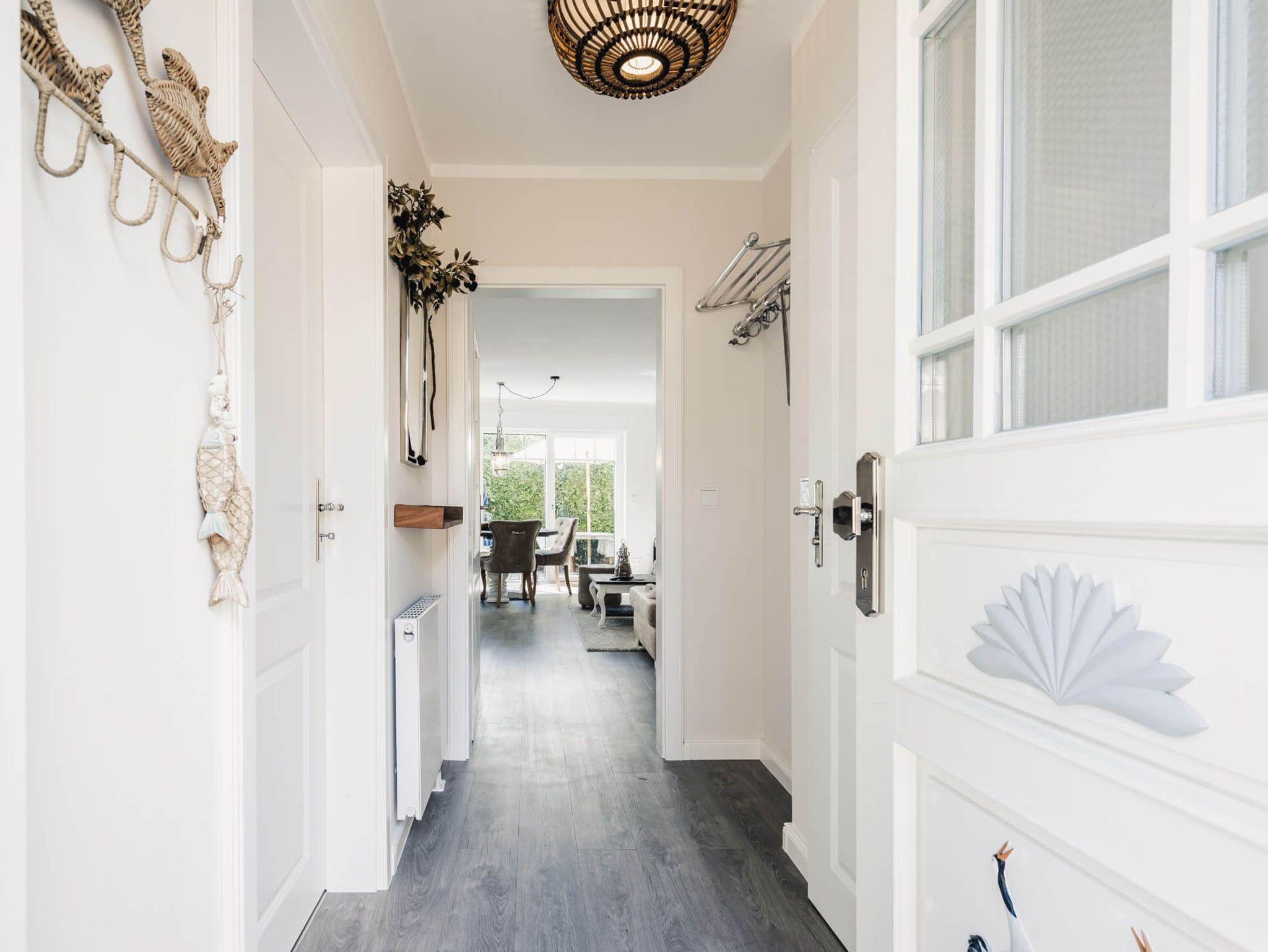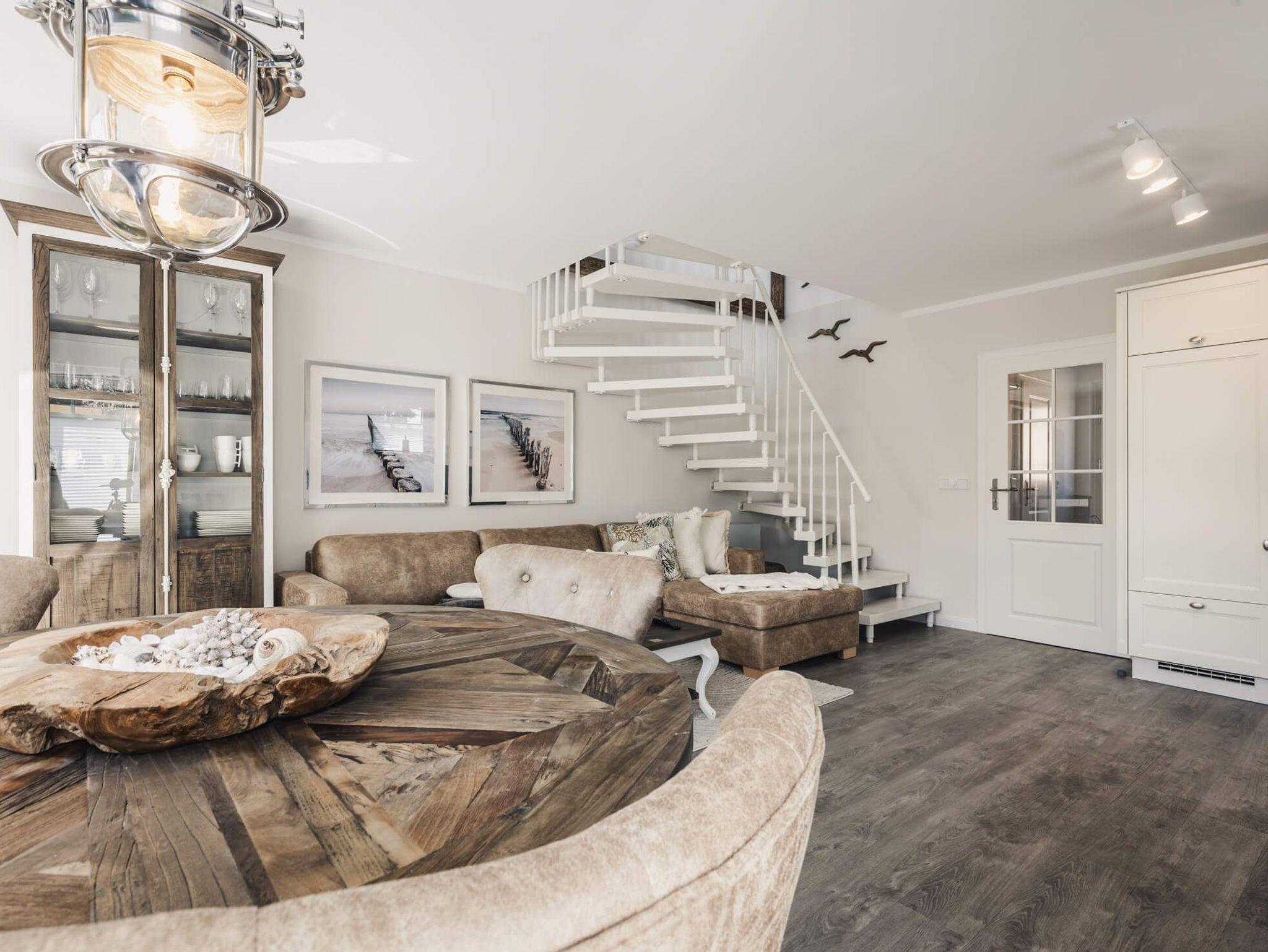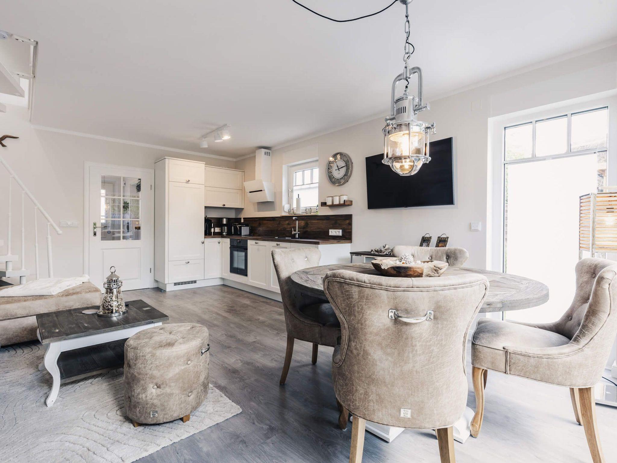 Das gesamte Haus Meerschönheit wurde liebevoll und hochwertig im Beachhouse-Stil von Riviera Maison eingerichtet. Helle Sandtöne, edles Holz und maritimer Flair lassen die lichtdurchfluteten Räume zu einem harmonischen Wohlfühlort werden.