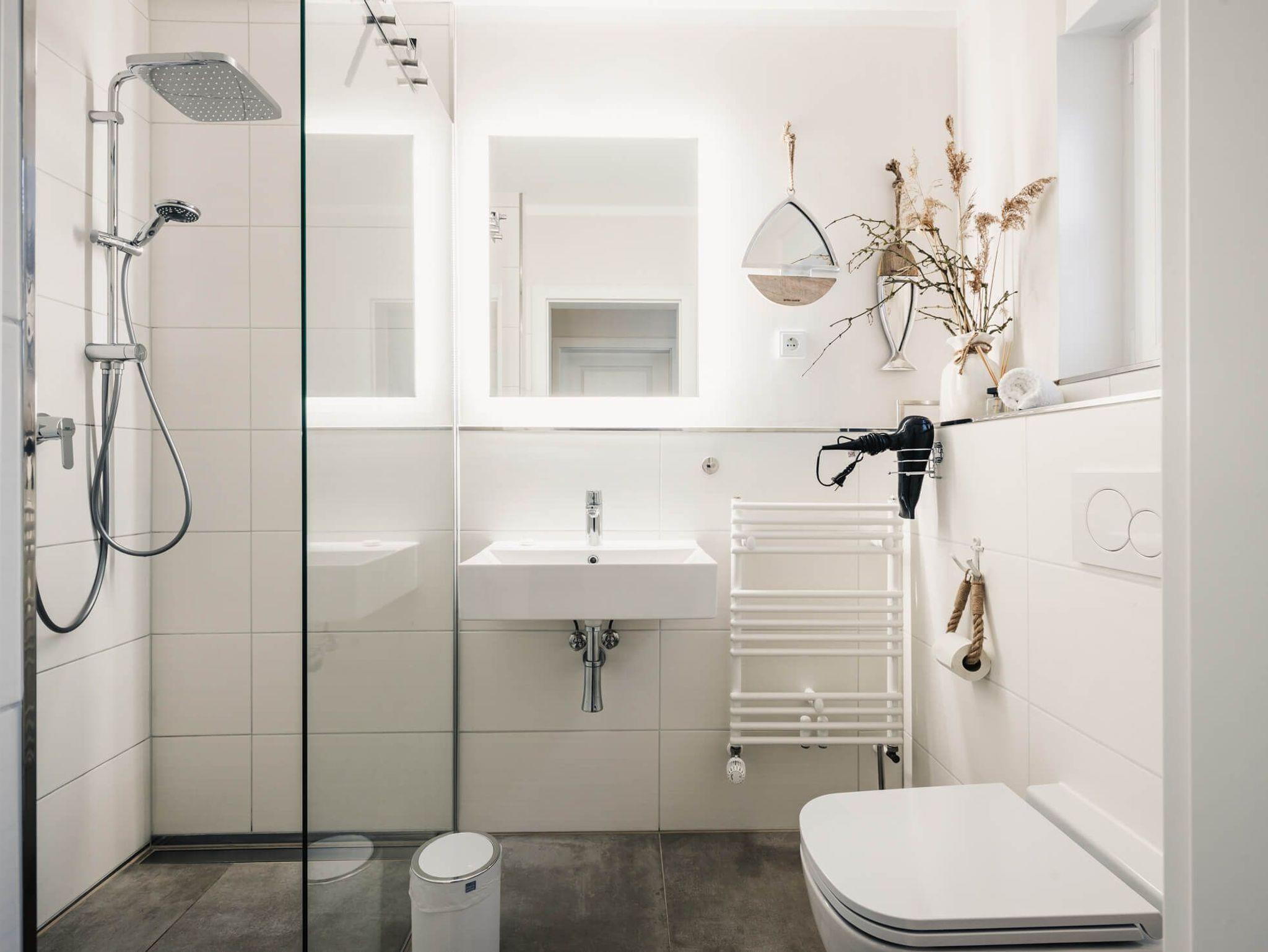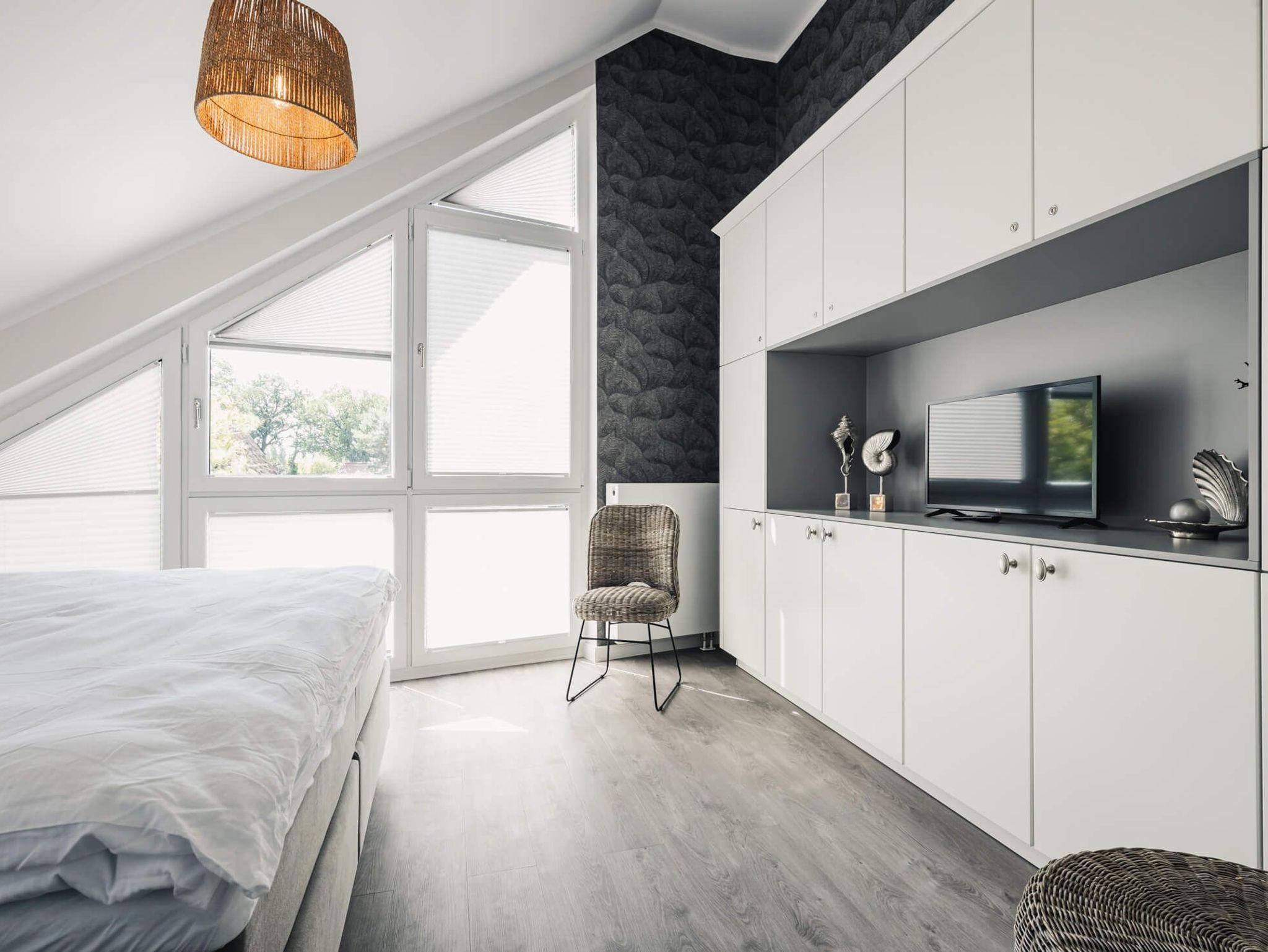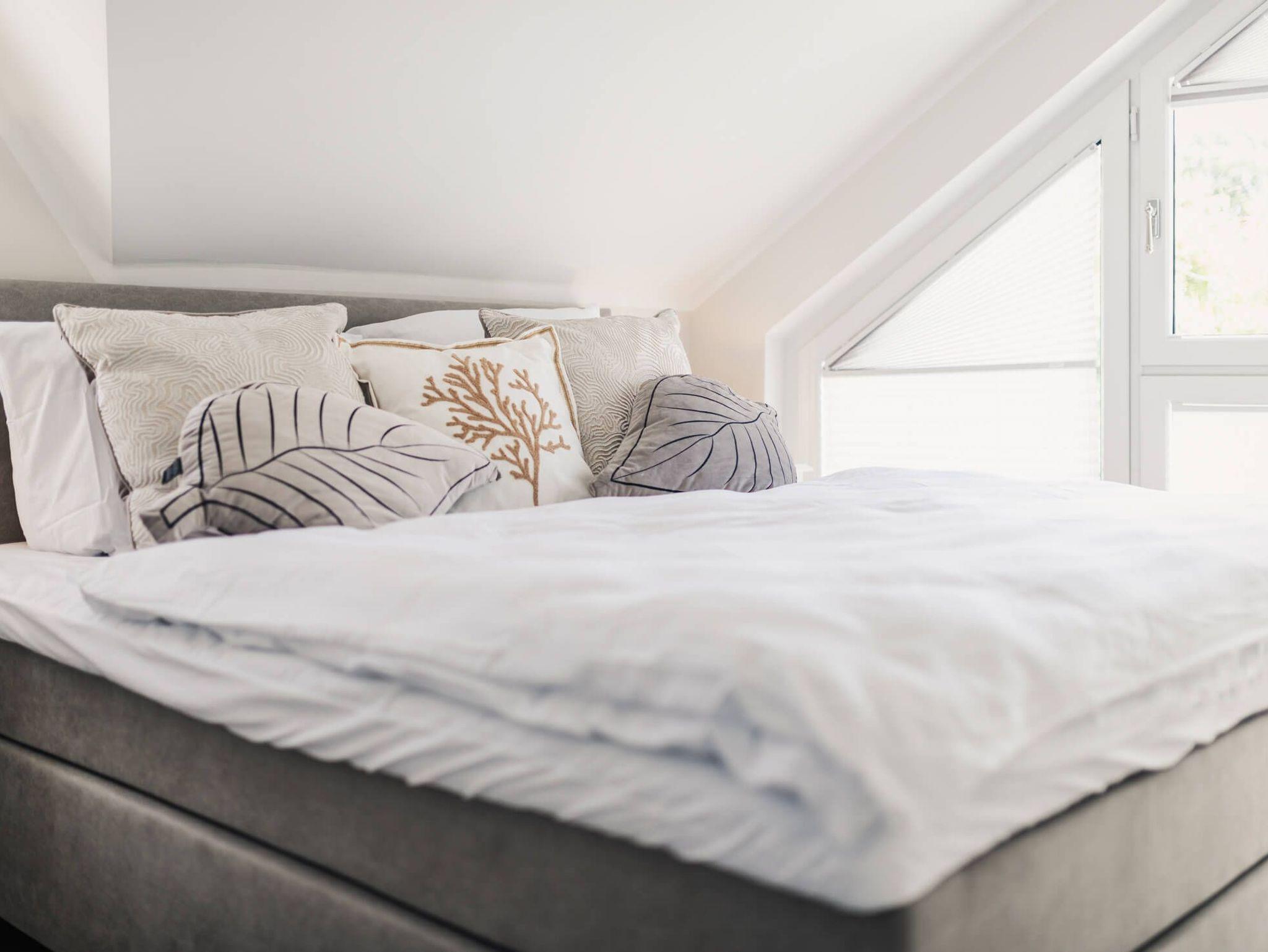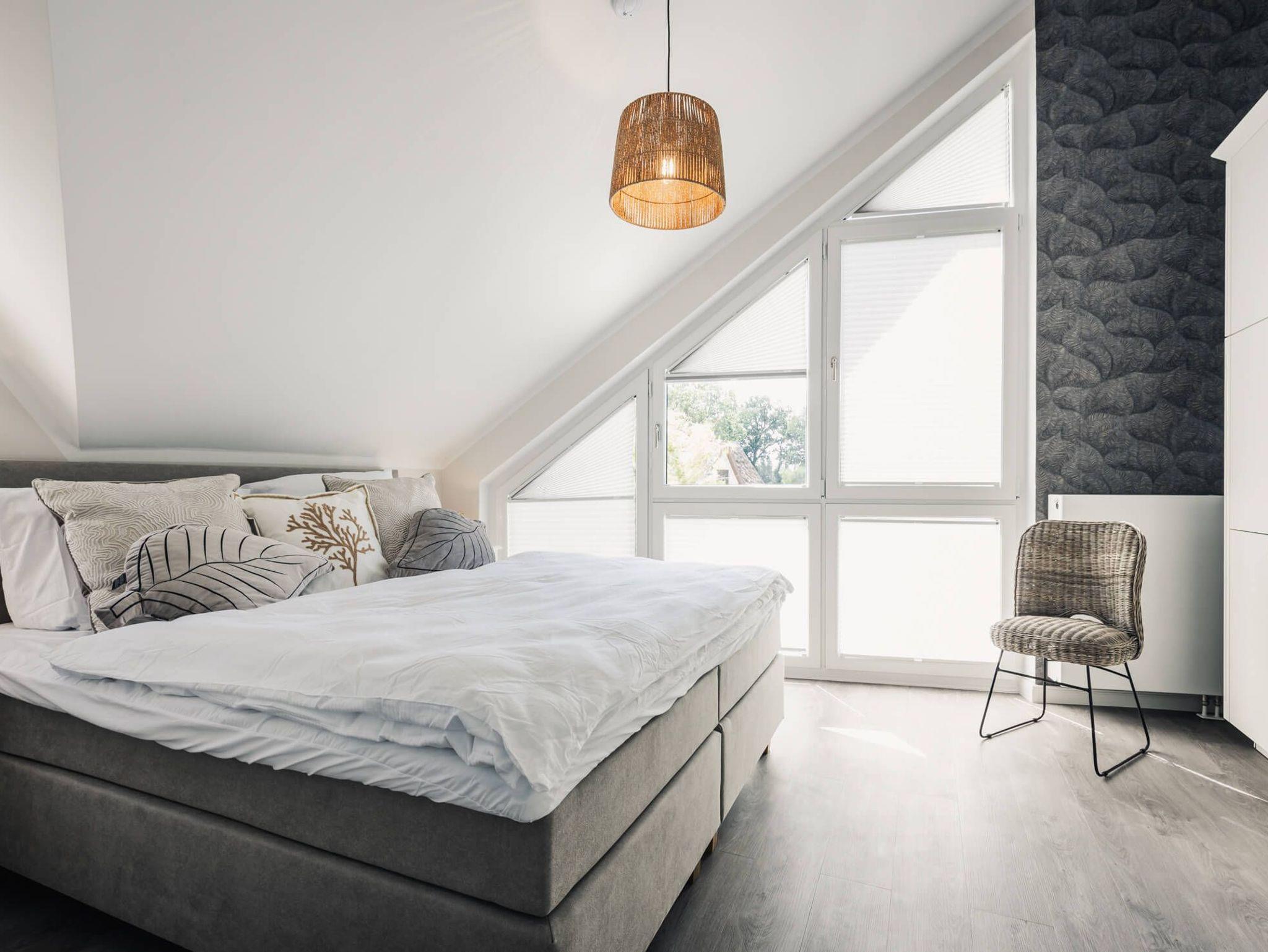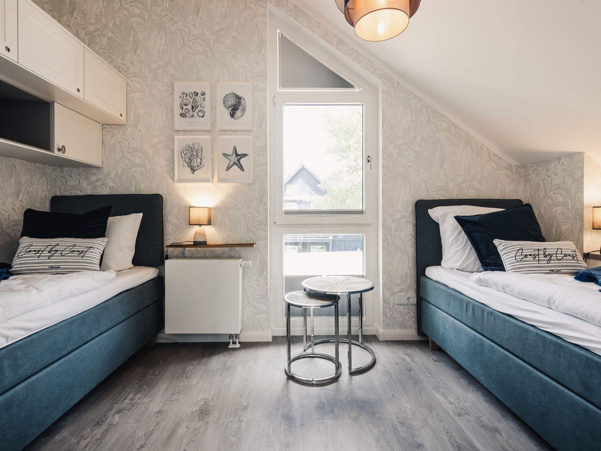 Im Obergeschoss finden Sie ein modernes ansprechendes Wannenbad vor. In beiden Schlafräumen laden komfortable Boxspringbetten zum erholsamen Schlaf ein. Sie finden neues Mobiliar sowie elegante und zugleich maritime Accessoires vor. Weitere zwei bequeme Schlafplätze bietet die hochwertige Schlafcouch im Wohnbereich.