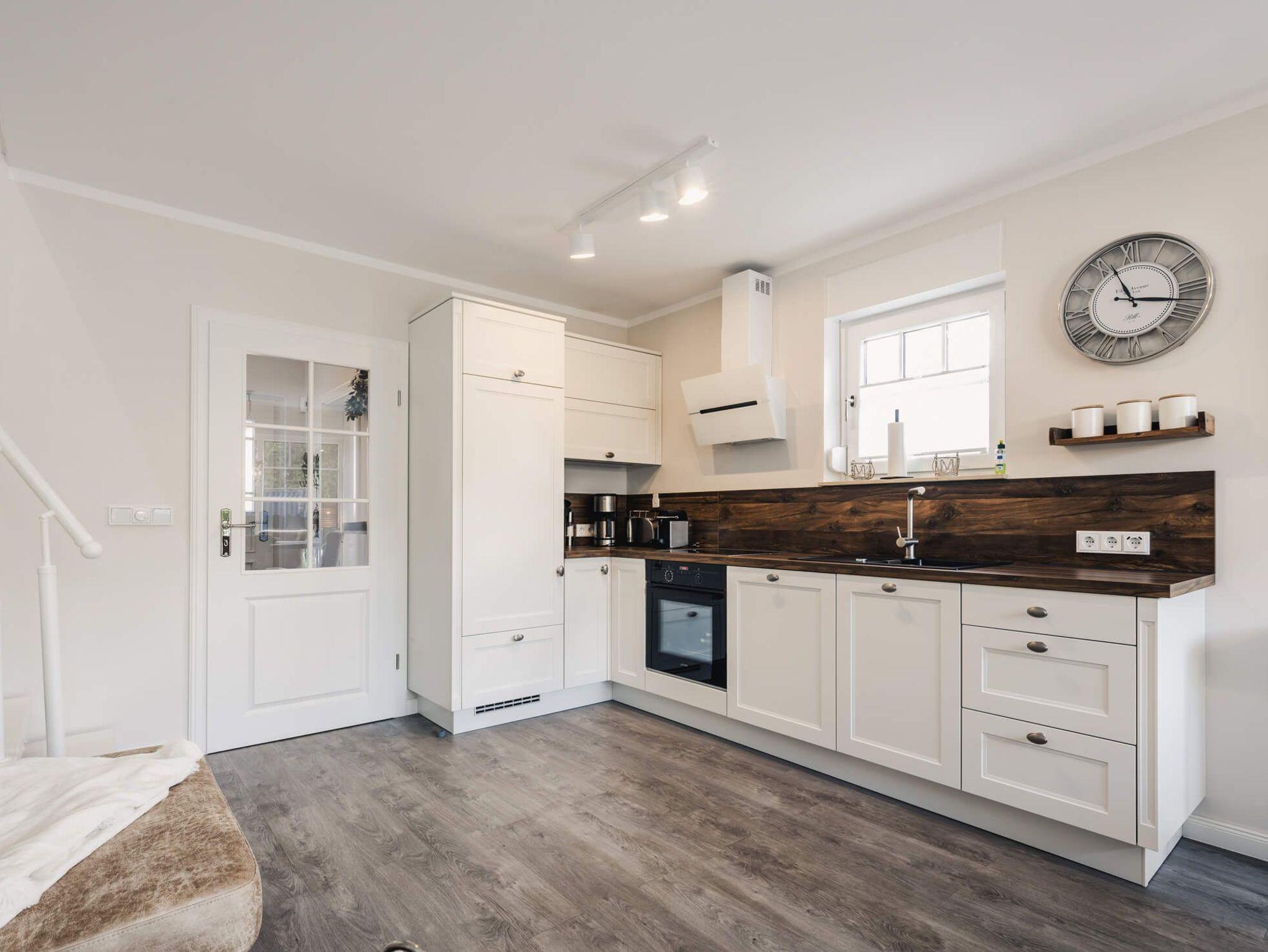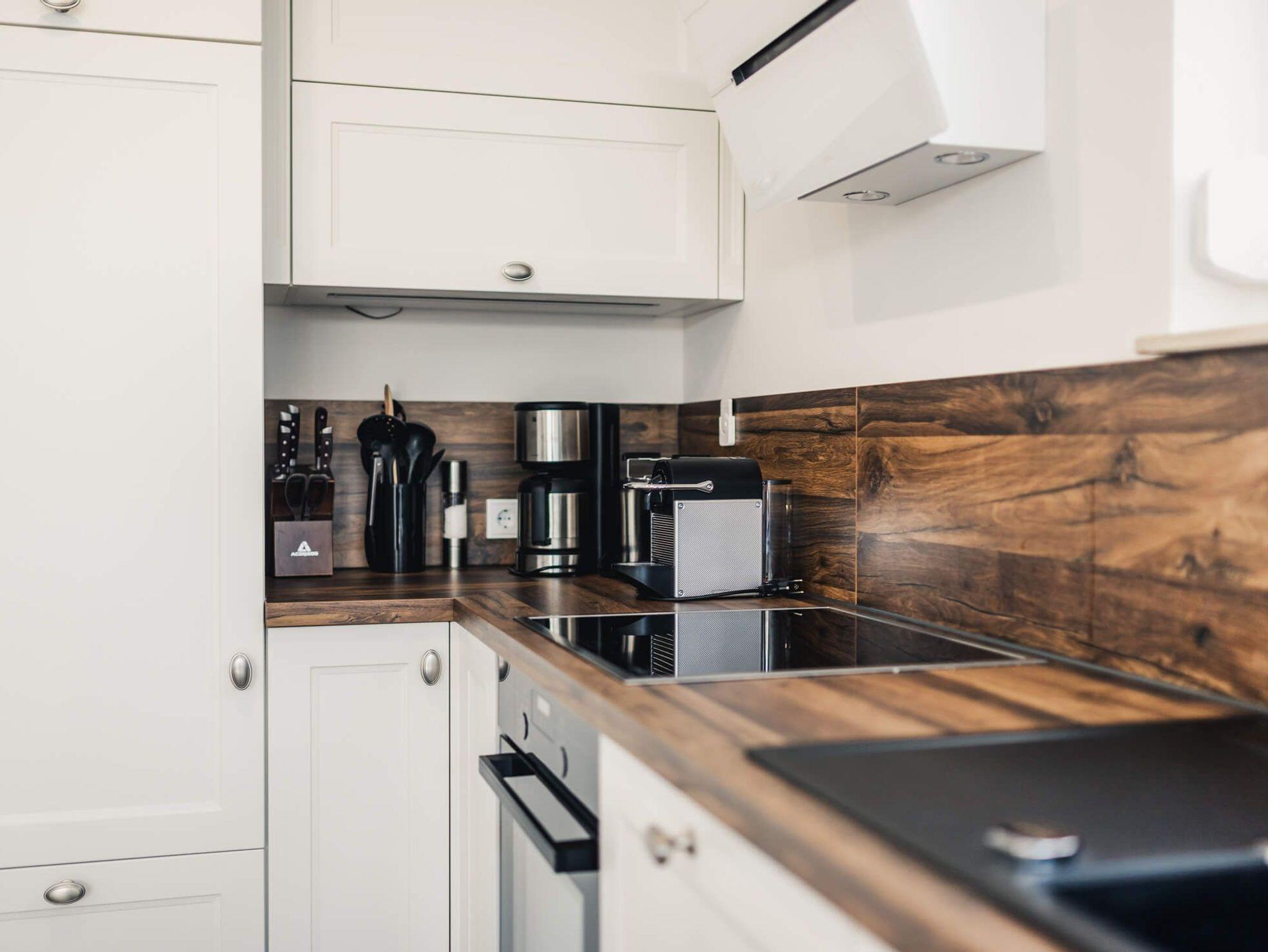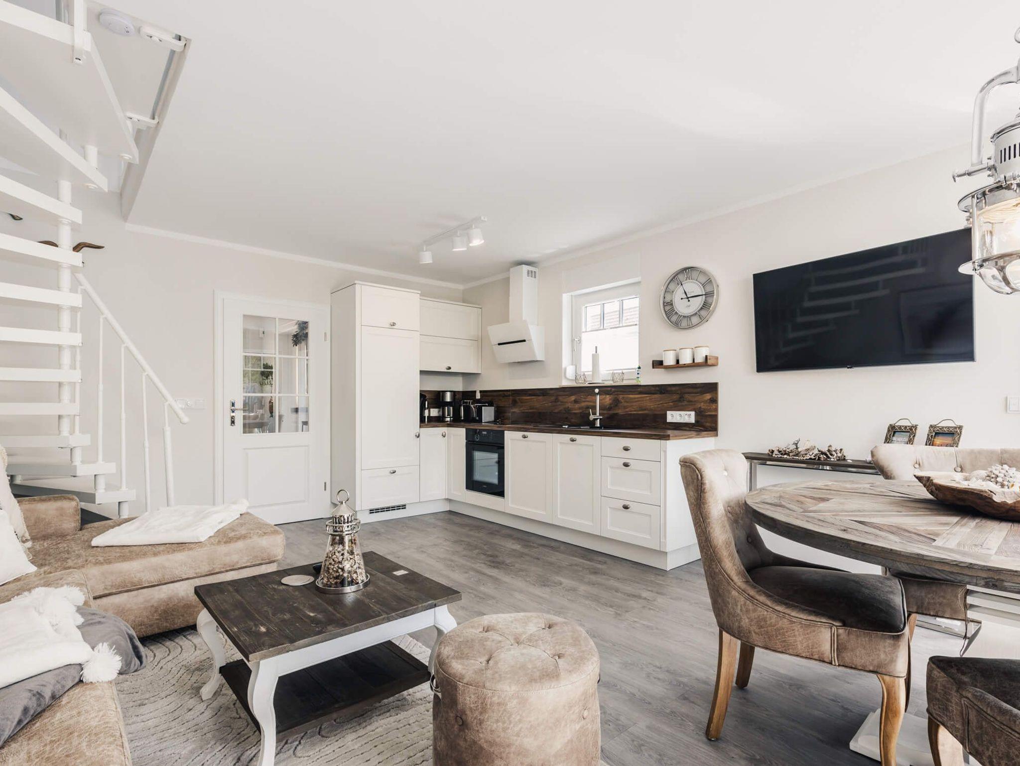 Im Erdgeschoss erwartet Sie ein kommunikativer und gemütlicher Wohn-Essbereich. Die hochwertige vollständig ausgestattete Landhausküche lässt keine Wünsche offen und eröffnet eine flexible Selbstversorgung. Am Abend sorgt ein Kamin für kuschelige Atmosphäre.