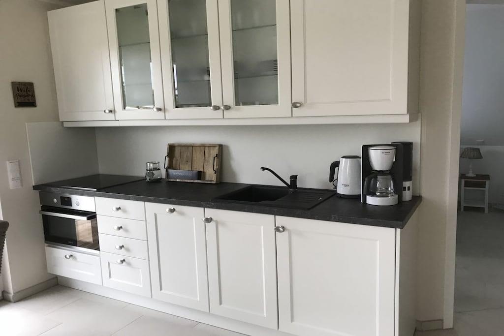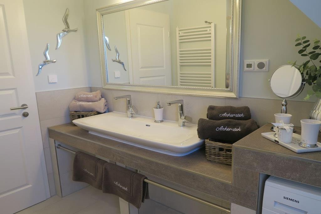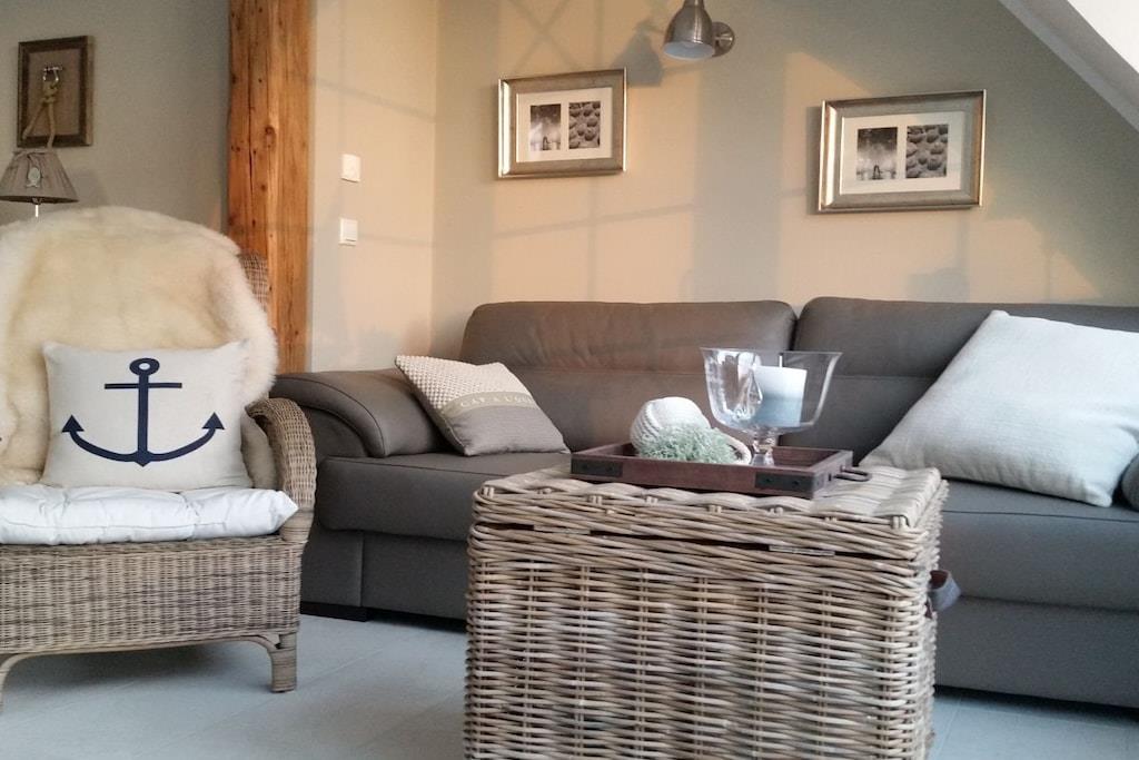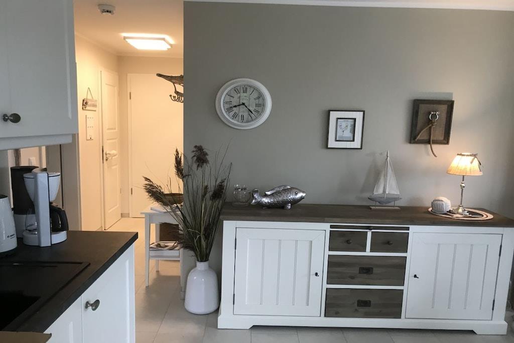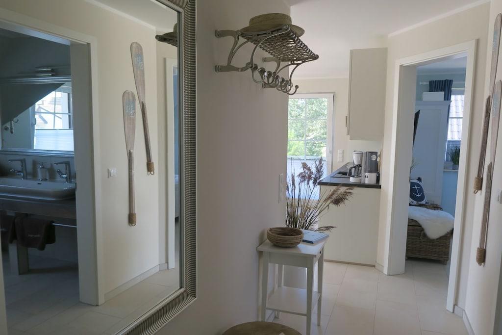 Ihr Urlaub liegt uns am Herzen. Ankommen, Wohlfühlen, Entspannen. Genießen Sie unsere lichtdurchflutete, elegante 5 Sterne-Ferienwohnung mit Fußbodenheizung und mondernstem Komfort in heller freundlicher Ausstattung für 2 Personen, in fußläufiger Nähe zum Strand und zum Ortskern. Mittelpunkt der süd-/westlich ausgerichteten Ferienwohnung im Obergeschoss ist ein großzügiger Wohn-/Essbereich im maritimen Flair mit einer modernen, voll ausgestatteten Markenküche. Im gemütlichen Schlafzimmer mit einem komfortablen Doppelbett (1,80 x 2,00) können sie sich von einem ausgiebigen Strandtag bei geruhsamem Schlaf erholen. Das Bad lässt mit einem großzügigen Designerwaschtisch, ebenerdiger Dusche mit Regenschauer- und Handbrause sowie Handtuchheizkörper keine Wünsche offen. Weiterhin verfügt die Ferienwohnung über 2 eigene Balkone, von denen sich die Mittags- und Abendsonne genießen lässt.