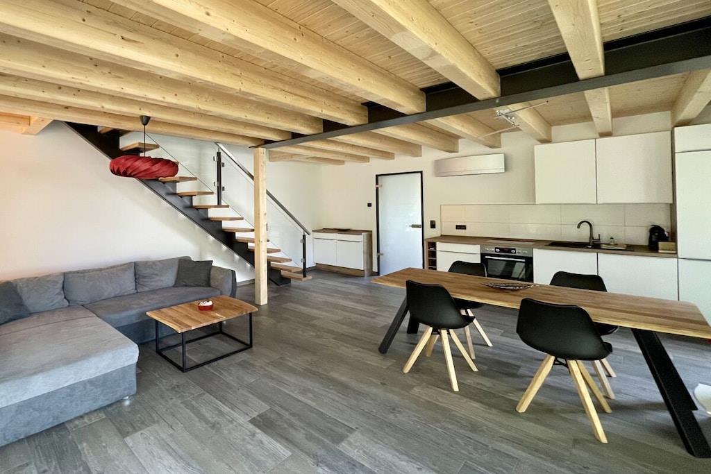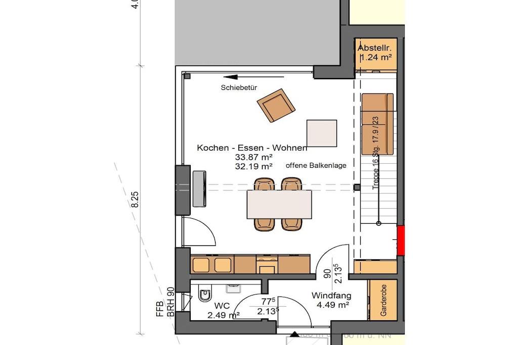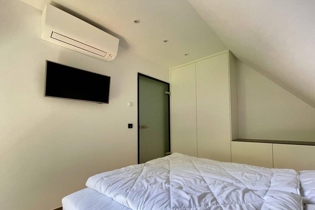 Parterre: (Eingangshalle(, Heizung), Wohn/Esszimmer(, , , , , Kochnische, TV, Esstisch, Herd, Kochplatte, Kochherd, Kaffeemaschine, Backofen, Grill, Spülmaschine, Kühlschrank, Tiefkühlschrank, Heizung, Klimaanlage, Hochstuhl, Föhn, Fliegenfenster), guest toilet(, Toilette, Waschbecken, Heizung)) Dachgeschoss: (Eingangshalle(Heizung, Fliegenfenster), Schlafzimmer(, , Doppelbett, TV, Heizung, Klimaanlage, Fliegenfenster), Schlafzimmer(, , Doppelbett, TV, Heizung, Klimaanlage, Fliegenfenster), Badezimmer(, Toilette, Dusche, Waschbecken, Heizung)) , Heizung, Terrasse(Gartenmöbel), Parkplatz