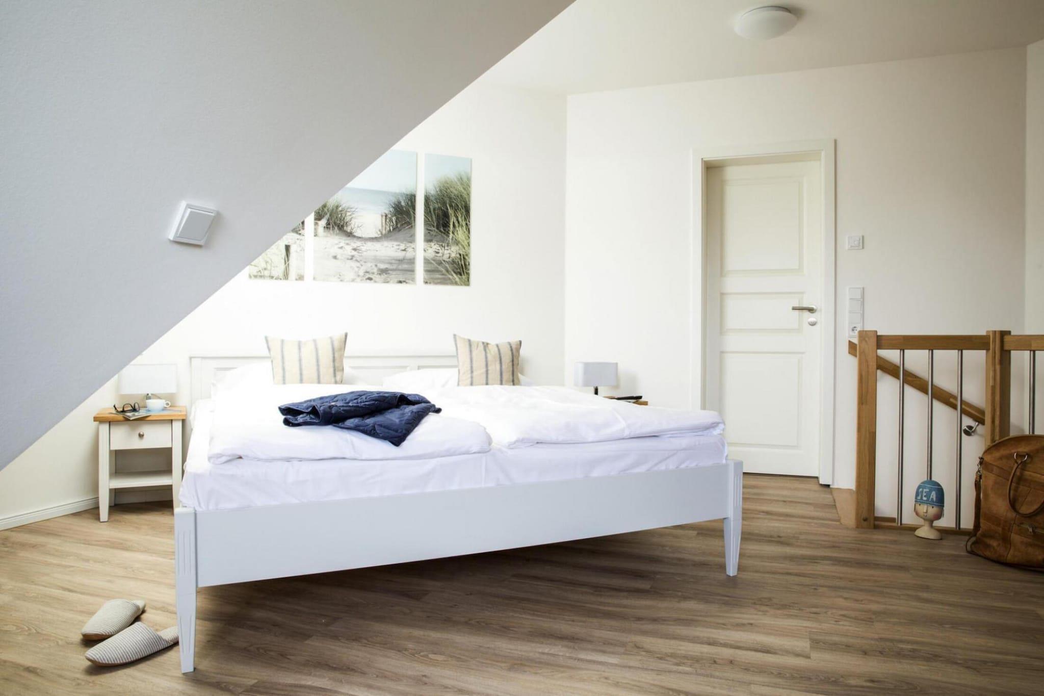 In der 1. Etage: (offene Küche(Esstisch, Kochplatte(4 Kochplatten, Ceranfeld), Wasserkocher, Toaster, Kaffeemaschine, Backofen, Mikrowelle, Spülmaschine, Kühl-/Gefrierkombination, Heizung(Fußbodenheizung)), Wohn/Esszimmer(TV(Satellit), CD-Spieler, Stereoanlage, Heizung(Fußbodenheizung), Fliegenfenster), guest toilet) In der 2. Etage: (Galerieschlafzimmer(Doppelbett(180 x 200 cm), TV(Satellit), Heizung(Fußbodenheizung)), Badezimmer(Dusche(ebenerdige Dusche), Toilette, Waschmaschine)) Balkon, Fahrradabstellraum(Gemeinschaftliche Nutzung mit anderen Gästen), Gartenmöbel, Parkplatz, Sonnenschirm, Hochstuhl, Babybett (kostenlos), Handtücher/Bettwäsche (inklusive)