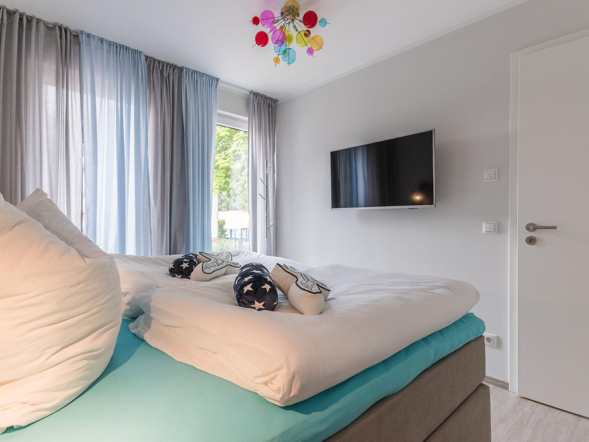 Die Ferienwohnung bietet durch ihre großzügige Gestaltung einen idealen Rückzugsort für erholsame Tage. Zwei einladende Schlafzimmer mit jeweils einem Doppelbett garantieren einen erholsamen Schlaf. Die offene Küche ist mit modernen Geräten wie Geschirrspüler, Elektro-/Gasherd, Backofen, Mikrowelle, Kühlschrank, Kaffeemaschine und weiteren Annehmlichkeiten ausgestattet, sodass das Kochen zum Vergnügen wird.