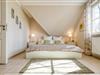 Im Dachgeschoss befindet sich der dritte Schlafraum mit zwei Einzelbetten. Kinderreisebett und Hochstuhl sind ebenfalls vorhanden.