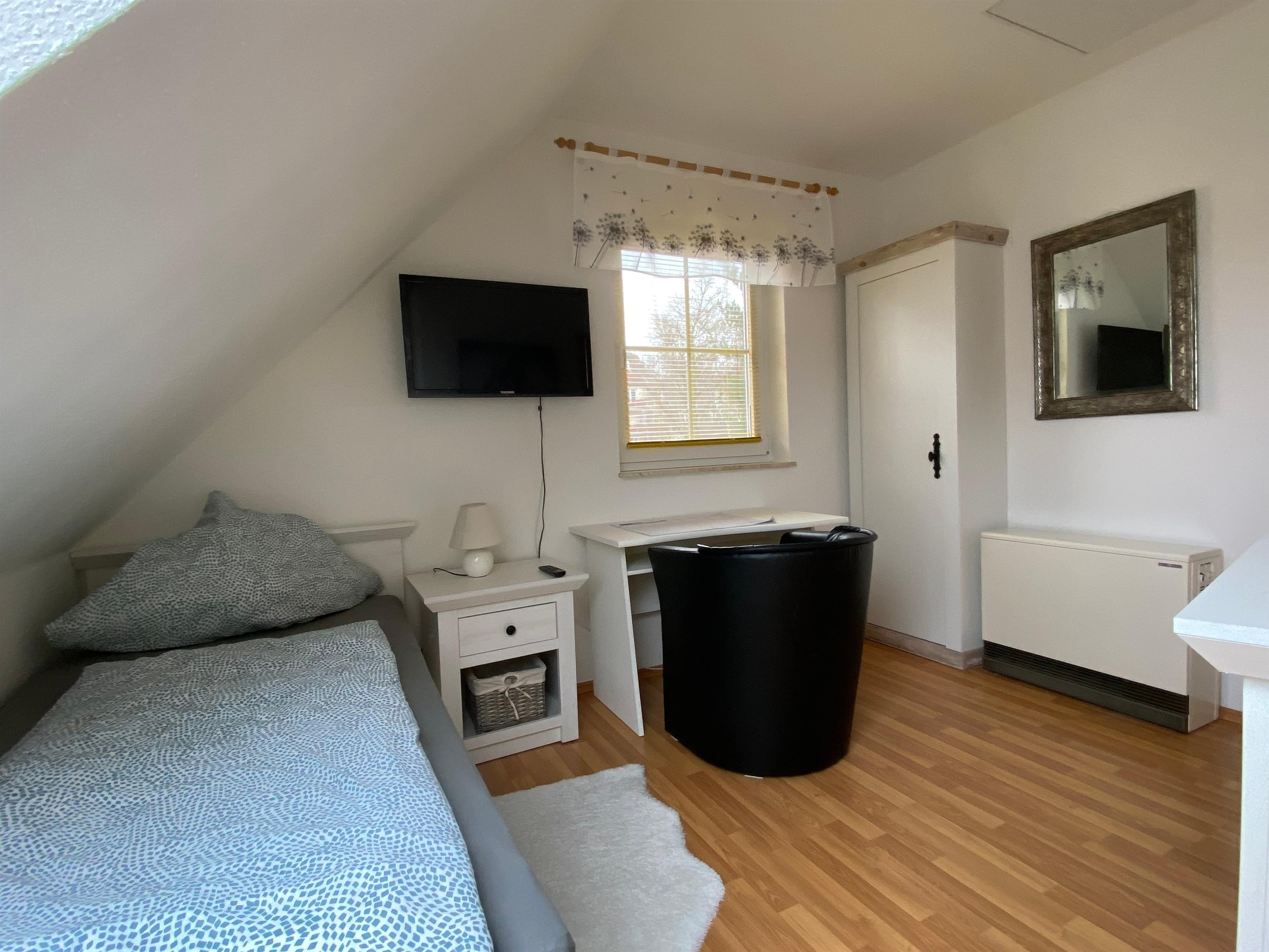 Im EG befindet sich ein Duschbad mit Außenfenster. Im OG befinden sich zwei gemütlich eingerichtete Schlafzimmer, eines mit einem Doppelbett und eines mit zwei Einzelbetten, sowie ein Gäste-WC.