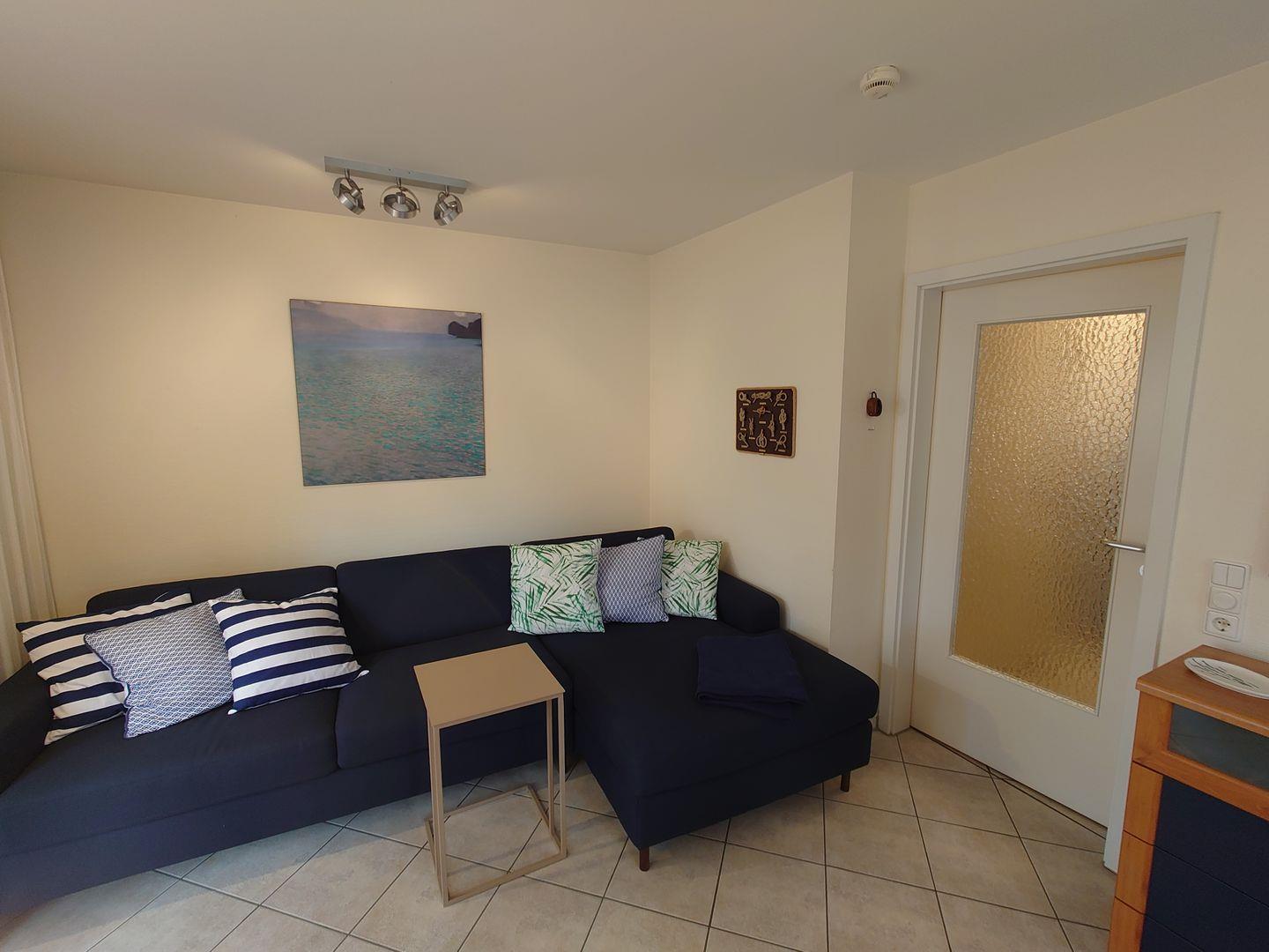 Die Ferienwohnung für zwei Personen liegt Parterre, hat ca. 55 qm Wohnfläche und ist sehr geschmackvoll eingerichtet. Sie besitzt ein Wohnzimmer mit offener und komplett ausgestatteter Küche, ein Schlafzimmer, ein Duschbad und einen kleinen Abstellraum. Vom Wohnzimmer aus gelangen Sie auf die große nach Süd / West ausgerichtete Terrasse. Hier können Sie den Tag gemütlich ausklingen lassen. Im Keller des Hauses haben Sie die Möglichkeit ihre Fahrräder unterzustellen.