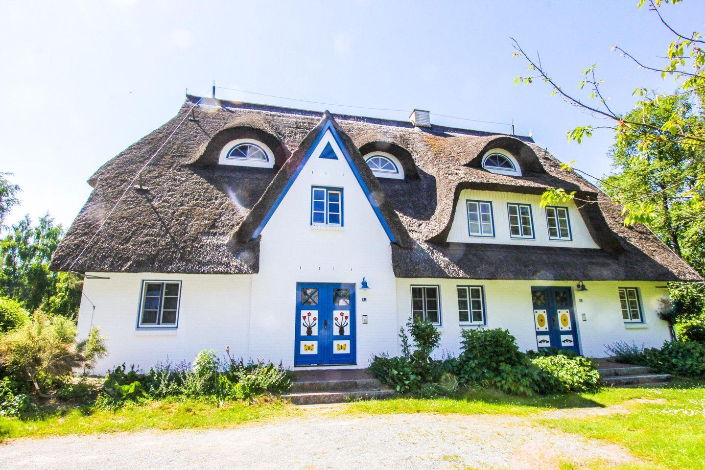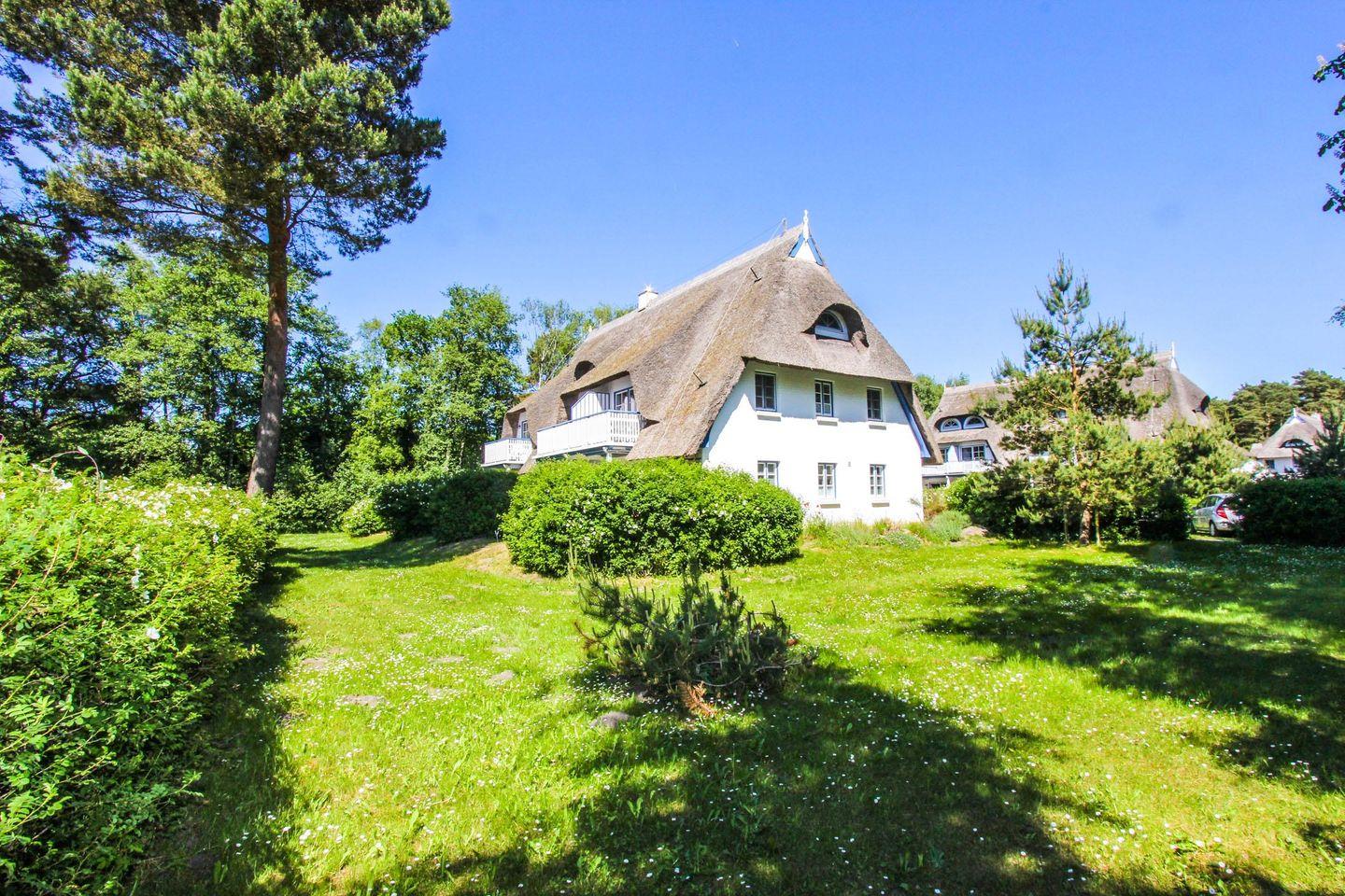 Die Ferienanlage "Achtern Dieck" besteht aus Häusern traditioneller Reetdachbauweise auf großen Rasengrundstücken mit liebevoller Bepflanzung und ist direkt hinter dem Deich gelegen. Die Lage wird durch den Dreiklang aus feinsandigem Ostseestrand, unmittelbar östlich angrenzendem Osterwald und Nationalpark sowie der südlich gelegenen Boddenlandschaft geprägt.