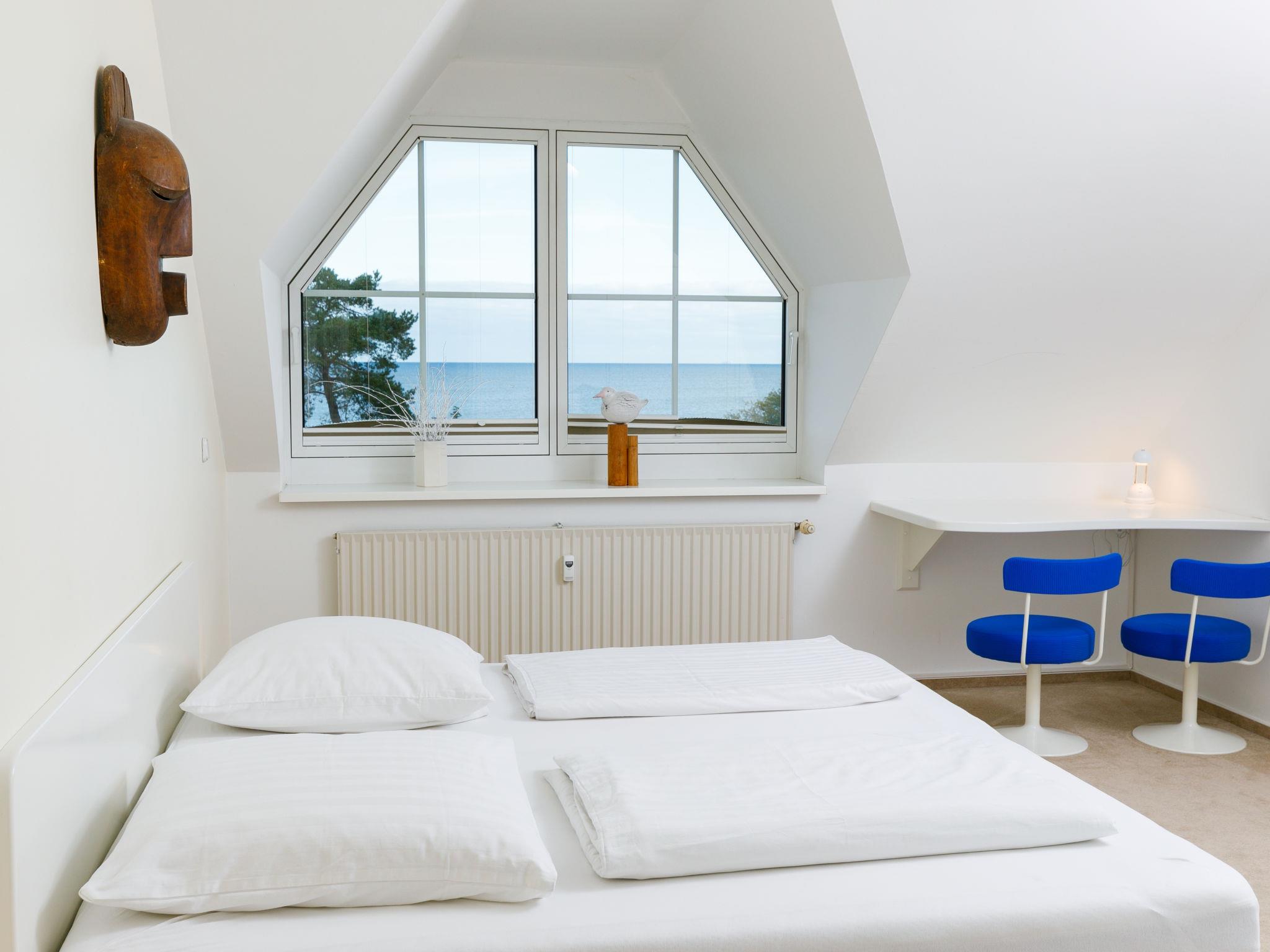"Morgensonne", 2-Zimmer-Wohnung 51 m2, im Dachgeschoss. Abgeschrägt, gemütlich eingerichtet: Wohn-/Esszimmer mit 1 Doppeldiwanbett (160 cm, Länge 200 cm), Kabel-TV (Flachbildschirm). 1 Zimmer mit 1 Doppelbett (2 x 100 cm, Länge 200 cm). Kochnische (Backofen, Geschirrspüler, 4 Glaskeramikplatten, Toaster, Wasserkocher, Mikrowelle). Bad, sep. WC. Schöne Sicht auf das Meer. Zur Verfügung: Kinderhochstuhl, Babybett. Parkplatz (eingezäunt, 1 Auto). Bitte beachten: Nichtraucher-Unterkunft. Rauchmelder.