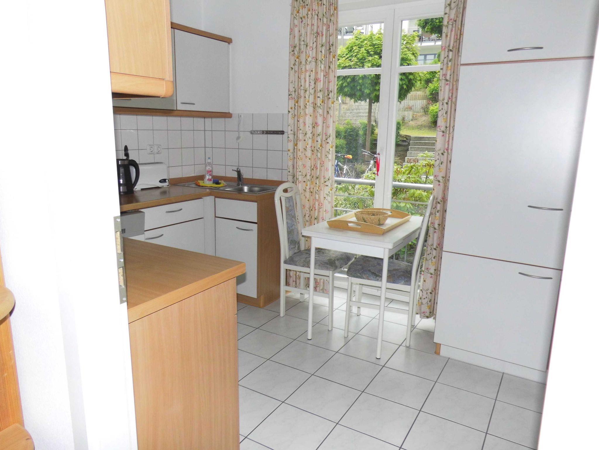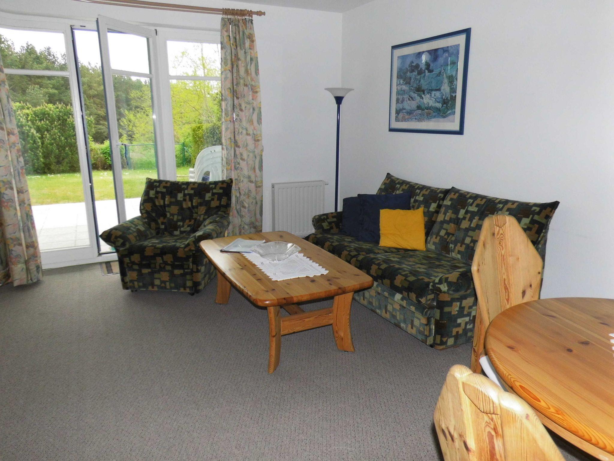 Die Parterre-Wohnung hat eine Terrasse die nach Süden ausgerichtet ist; mit 4 Terrassenstühlen, Tisch und Sonnenschirm. Die Wohnung ist hell und freundlich eingerichtet und verfügt über SAT-TV und Radio. Eine gut ausgestattete Küche mit Geschirrspüler, vollständigem Geschirr, Küchengeräten, Kaffeemaschine, Wasserkocher und Toaster sind vorhanden. Schlafzimmer mit Doppelbett für 2 Personen; Wohnzimmer mit Schlafsofa für 2 Personen; Babyreisebett kann gemietet werden.