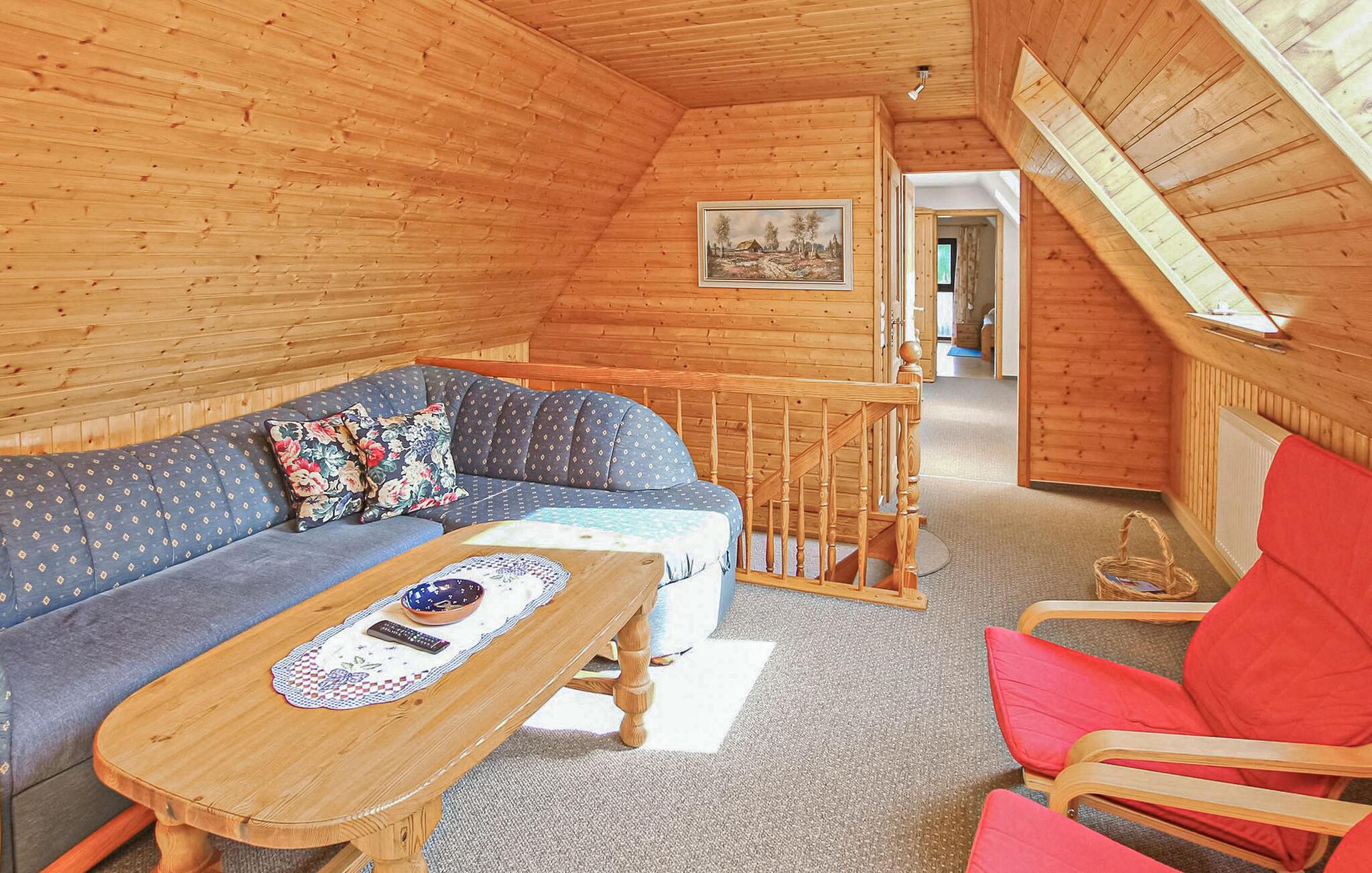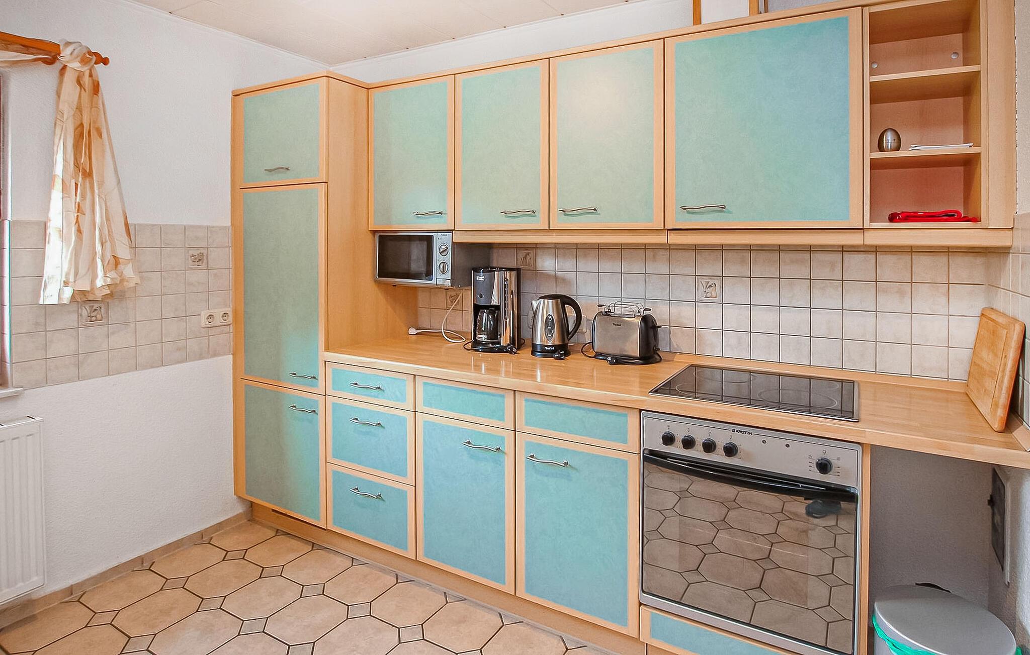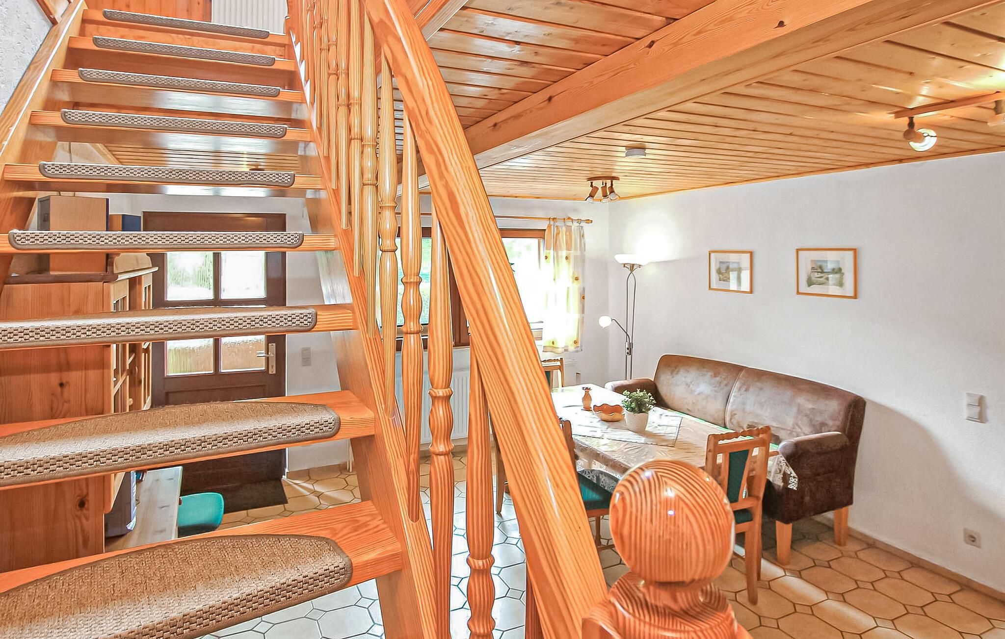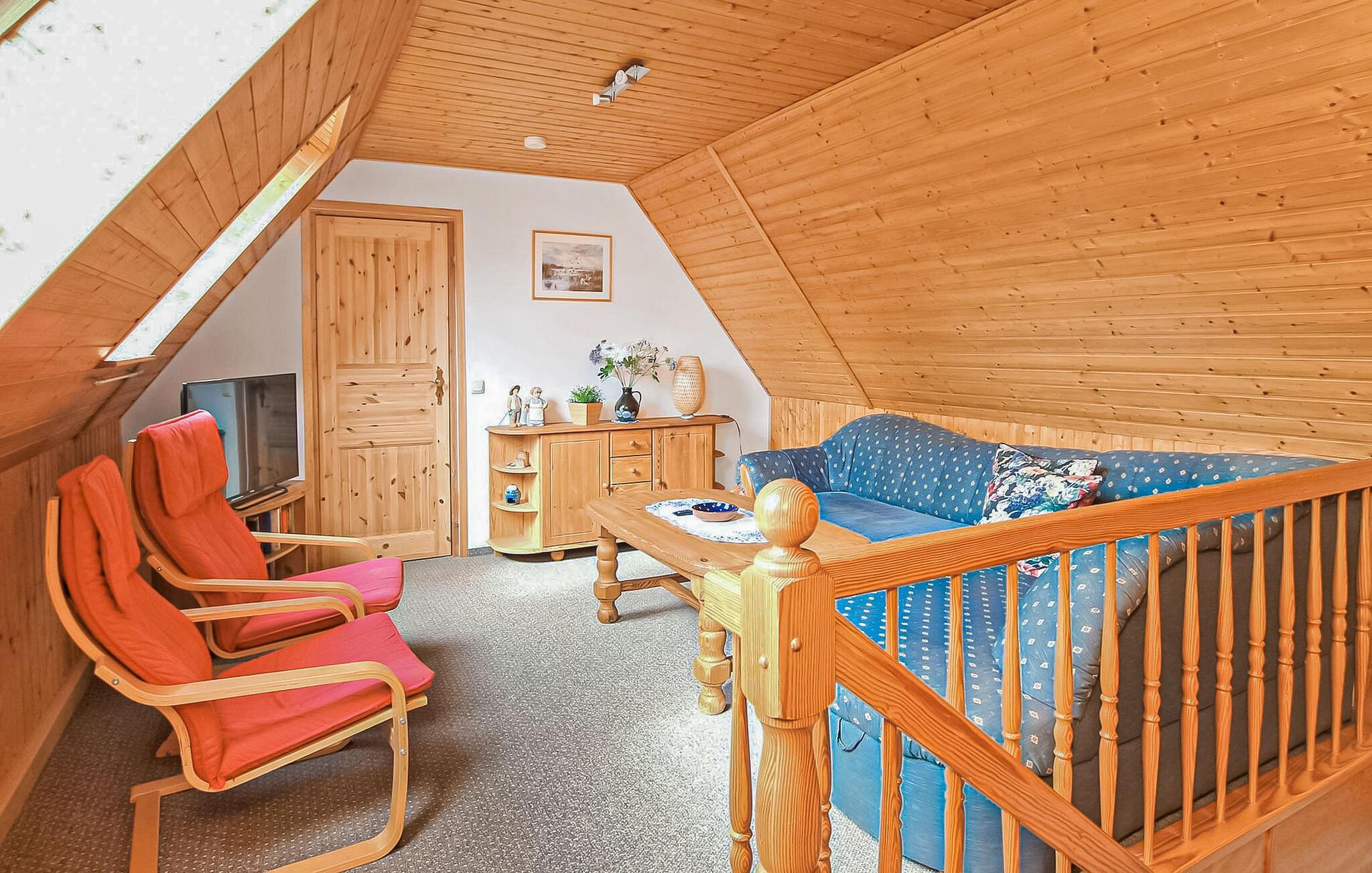 Diese Nichtraucher-Wohnung mit separaten Eingäng sind mit Insektenschutz an den Fenstern ausgestattet und werden zentral beheizt. Die ca. 110 qm große Wohnung für bis 8 Erwachsene und 1 Baby erstreckt sich über zwei Etagen. Im Erdgeschoss befindet sich ein großes Esszimmer (Esstisch, Kaminofen - auf Wunsch Holz) mit angrenzender Küche (E-Herd mit Backofen, Kühlschrank mit Gefriermöglichkeit, Spülmaschine, Mikrowelle, div. Küchenkleingeräte) und das Bad (Dusche, Badewanne, WC, Waschmaschine). Vom Esszimmer führt eine Treppe ins Obergeschoss zu einem offenen Wohnbereich (Polstergarnitur, Sessel, Flachbild-TV), einem Gäste-WC und den 3 Schlafzimmern. (1 x Doppelbett 1,60 m breit, 1 x Doppelbett groß - Durchgangszimmer zum 3. Schlafzimmer mit 2 Rollbetten) Zur Wohnung gehört eine große, überdachte und möblierte Sitz- und Grill-Ecke vor dem Haus. Hier stehen auch Kinderbett und Hochstuhl zur Verfügung.