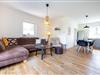 Im lichtdurchfluteten Wohnbereich mit offener Küche spielt sich das gemeinsame Urlaubsleben ab: zusammen kochen, essen und den Tag entspannt ausklingen lassen. Große Fenster sorgen für eine freundliche, helle Atmosphäre.