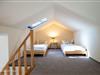 - Zwei Schlafzimmer, Zusätzlicher Schlafbereich im Dachgeschoss (2 Einzelbetten, mittig Stehhöhe)