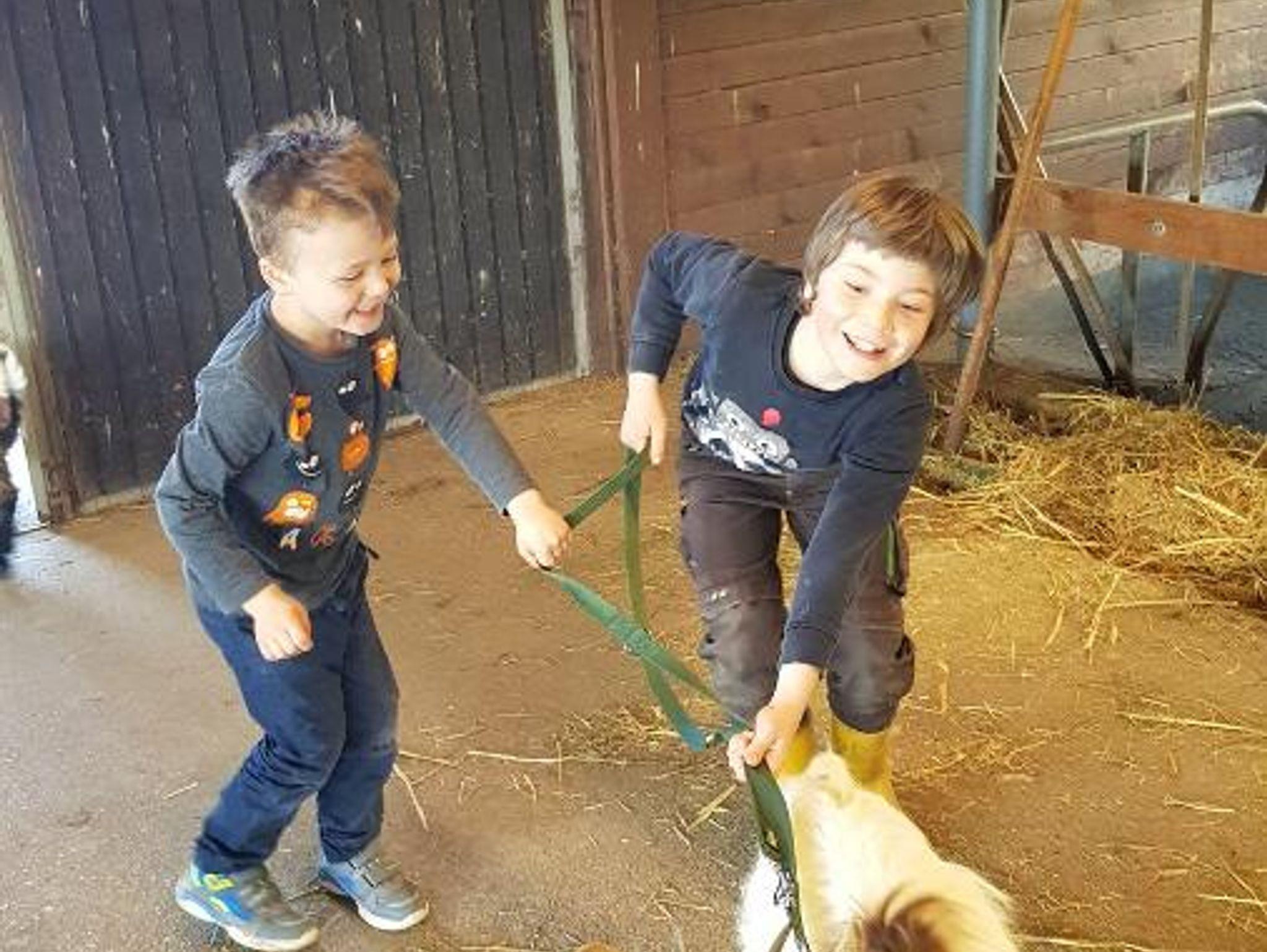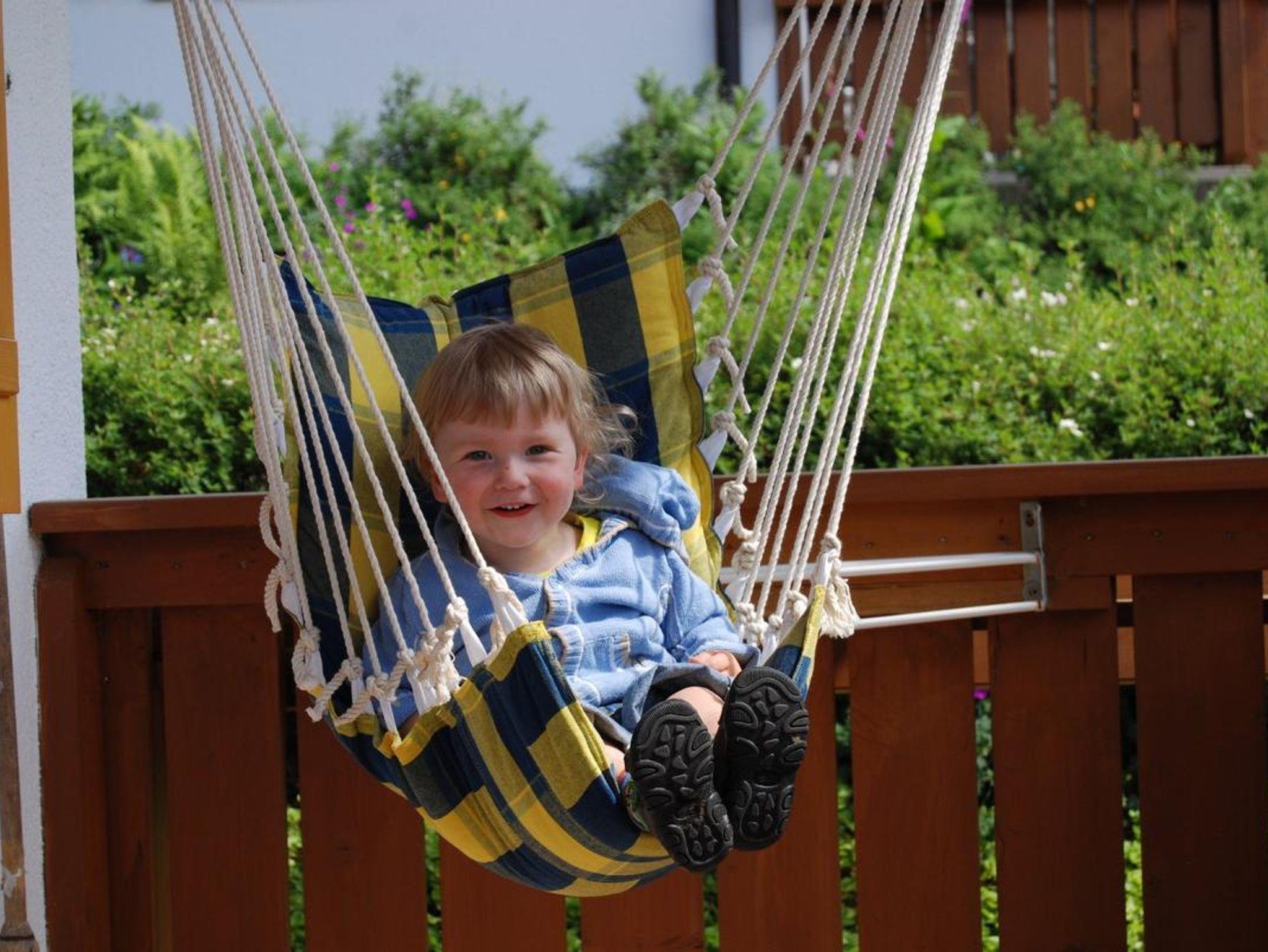 Ein Paradies für Groß und Klein. Ob Schaukeln, Kettcar fahren, Sandburg bauen, auf dem Holzturm Verkleiden spielen, Traktor fahren, Riesentrampolin springen – den Kindern wird der Tag immer zu kurz. Bei schlechtem Wetter bieten die Spielscheune mit Heurutsche und Hängematte, sowie das Spielzimmer mit Tischtennis und Fußballkicker viel Abwechslung.