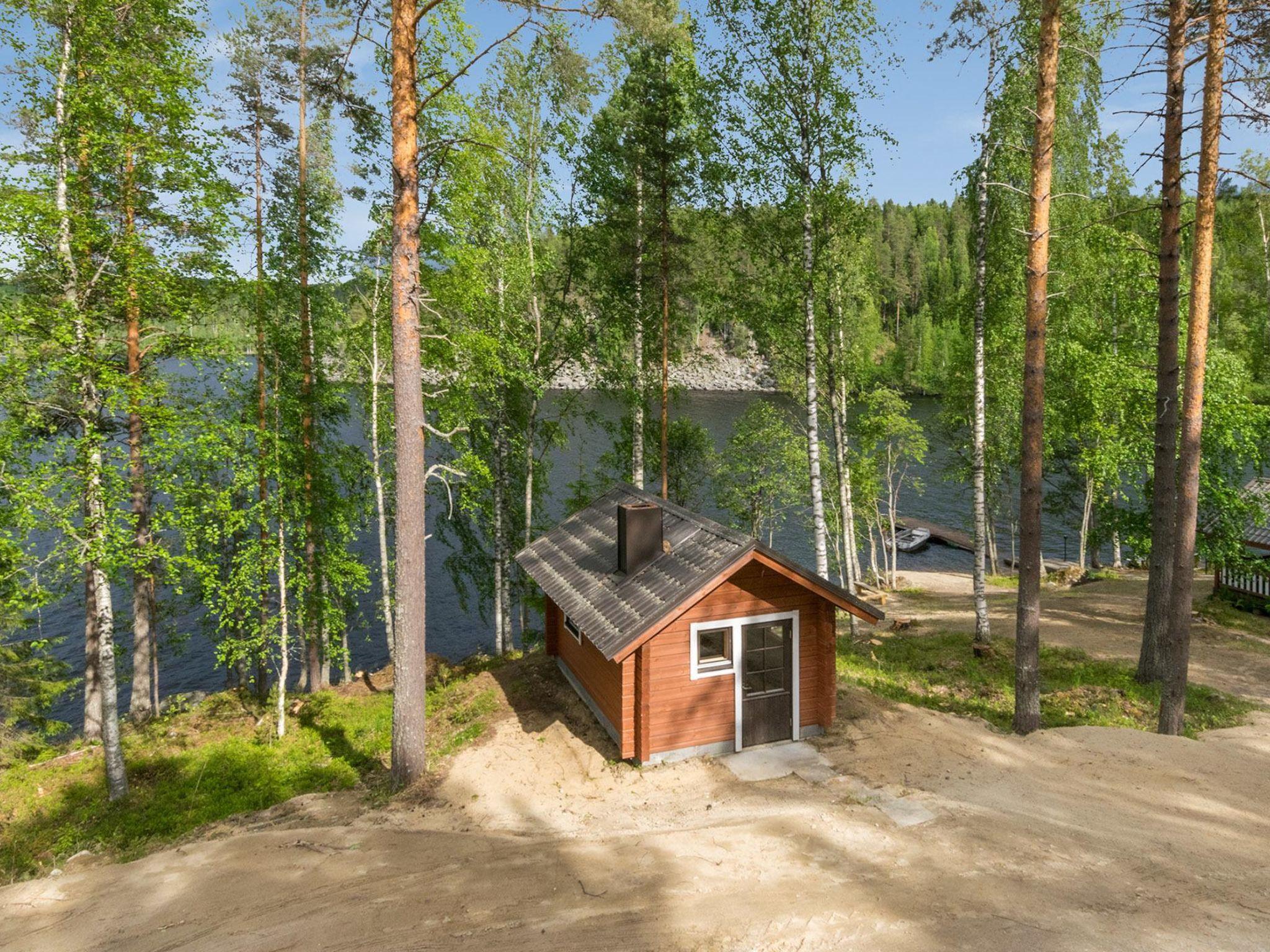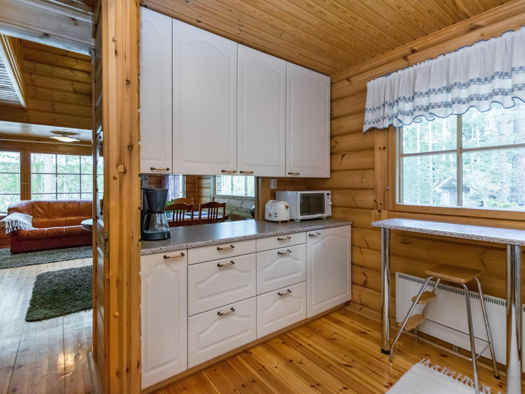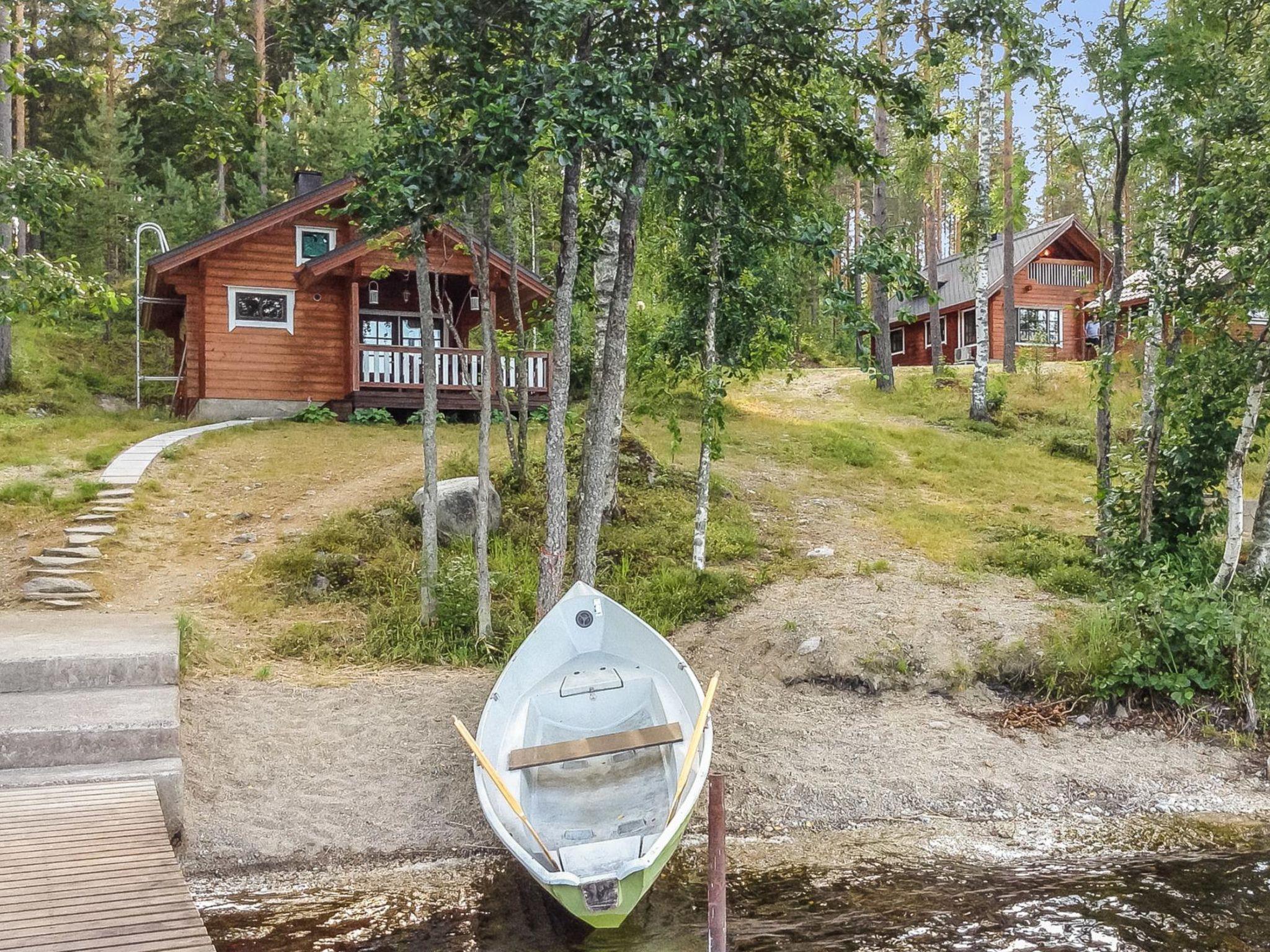 40 km nördlich von Savonlinna, See Saimaa/Kuikanlahti 30 m, tiefer Kies-/Steinstrand, teilweise Sand, eigene Anlegestelle und Ruderboot. Blockhaus, Baujahr 2000, Küche, Wohnzimmer, kleines Schlafzimmer (5 m²) mit Doppelbett (Breite 140 cm), Waschraum mit WC und Dusche, Lobby, überdachte Veranda. Doppelbett für Kinder (Breite 160 cm, Länge 185 cm) in der Schlafnische im Obergeschoss, ausziehbares Bet für zwei Personen in der Lobby und 1 Matratze als alternatives Bett, Balkon. Sauna am See (26 m²), Wohnzimmer mit Kamin, Schlafnische mit zwei Einzelbetten, Dachboden, Waschraum und Sauna (holzbeheizter Saunaofen), übedachte Terrasse. Das Wasser zum Waschen kommt über die Pumpe in die Sauna. In der Grillhütte gibt es gemauerten Grill und Ofen, vor dem Keller gibt es auch Gasgrill. Vuorilahti ist eine exklusive Mietvilla, die sich auf einem weitläufigen Hanggrundstück befindet, auf dem Sie genügend Platz für viele Arten von Spielen im Freien haben. In der Grillhütte können Sie bei jeder Witterung verschiedenste Köstlichkeiten zubereiten. Aufgrund der grossen Anlegestelle an einem Seeufer können Sie dieses Objekt bequem mit Ihrem eigenen Boot erreichen. Die Sehenswürdigkeiten der Region Savonlinna erreichen Sie mühelos mit dem Auto. Sie können beim Eigentümer Motorboot (15 PS) und Motorschlitten mieten. Der Eigentümer kann auch geführte Angel- und Kanutouren arrangieren. Enonkoski 11 km, Kolovesi Nationalpark 29 km, Oravi 31 km (zahlreiche Dienstleistungen und Ausflüge im Linnansaari-Nationalpark), Kerimäki 33 km (die grössste Holzkirche der Welt), mittelalterliche Burg Olavinlinna 42 km, Savonlinna 42 km, Landschaftsroute von Punkaharju 50 km, Imatra 147 km, Helsinki 375 km.