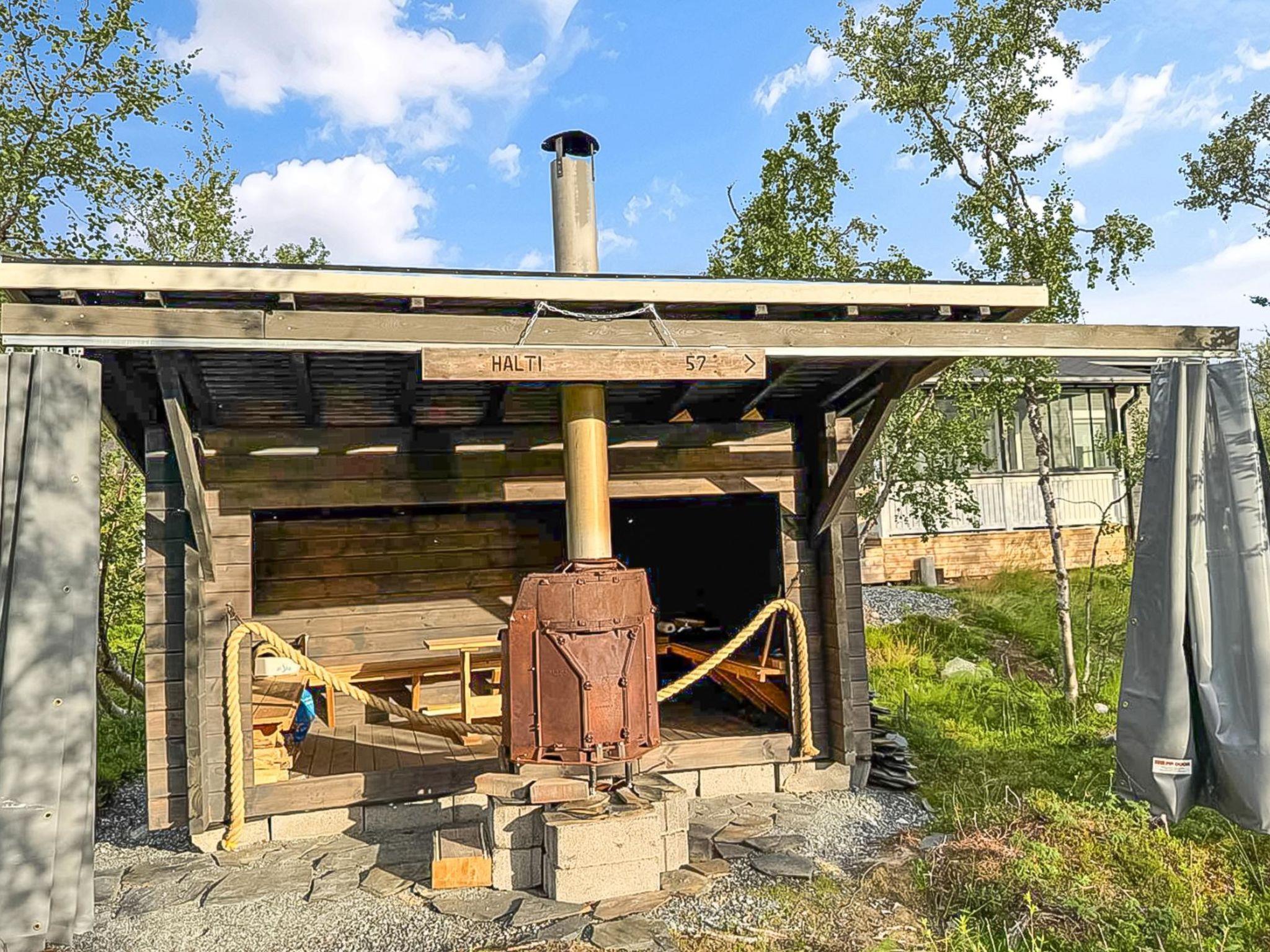 430 km to the northwest from Rovaniemi, located by lake Ala-Kilpisjärvi, 65 m distance to the shore, natural beach, shallow, rocky (not suitable for swimming), very fresh water, rowing boat.