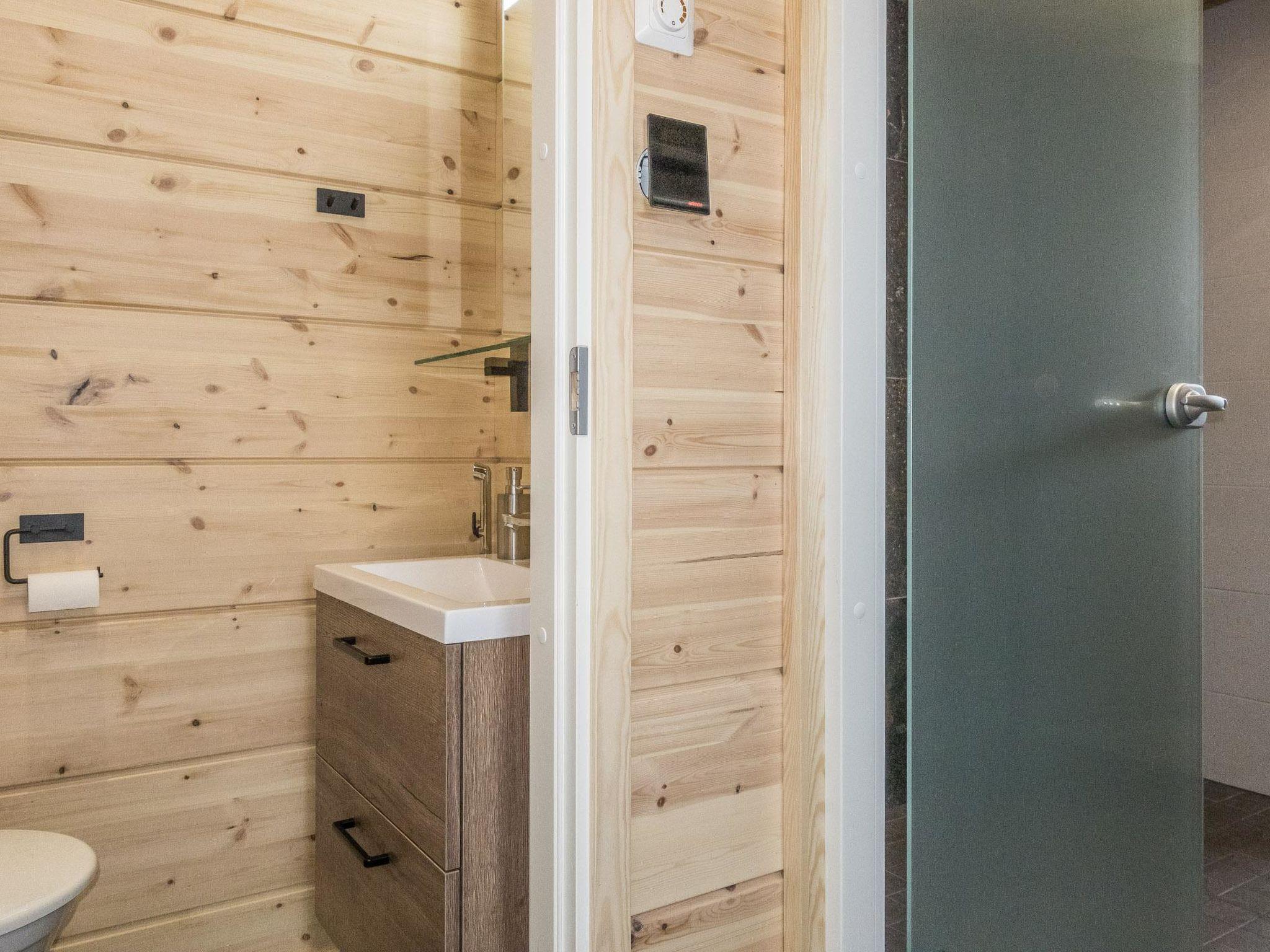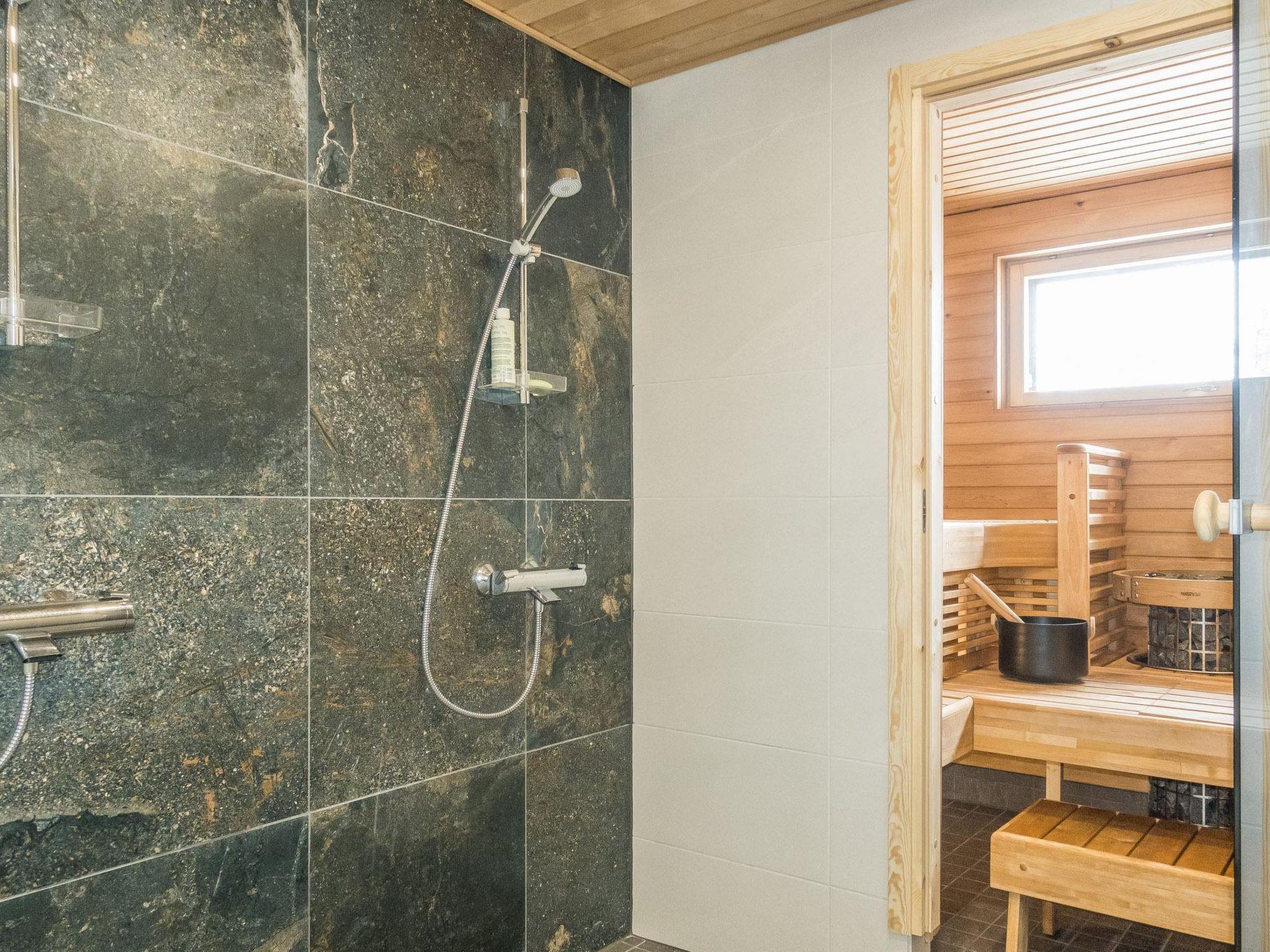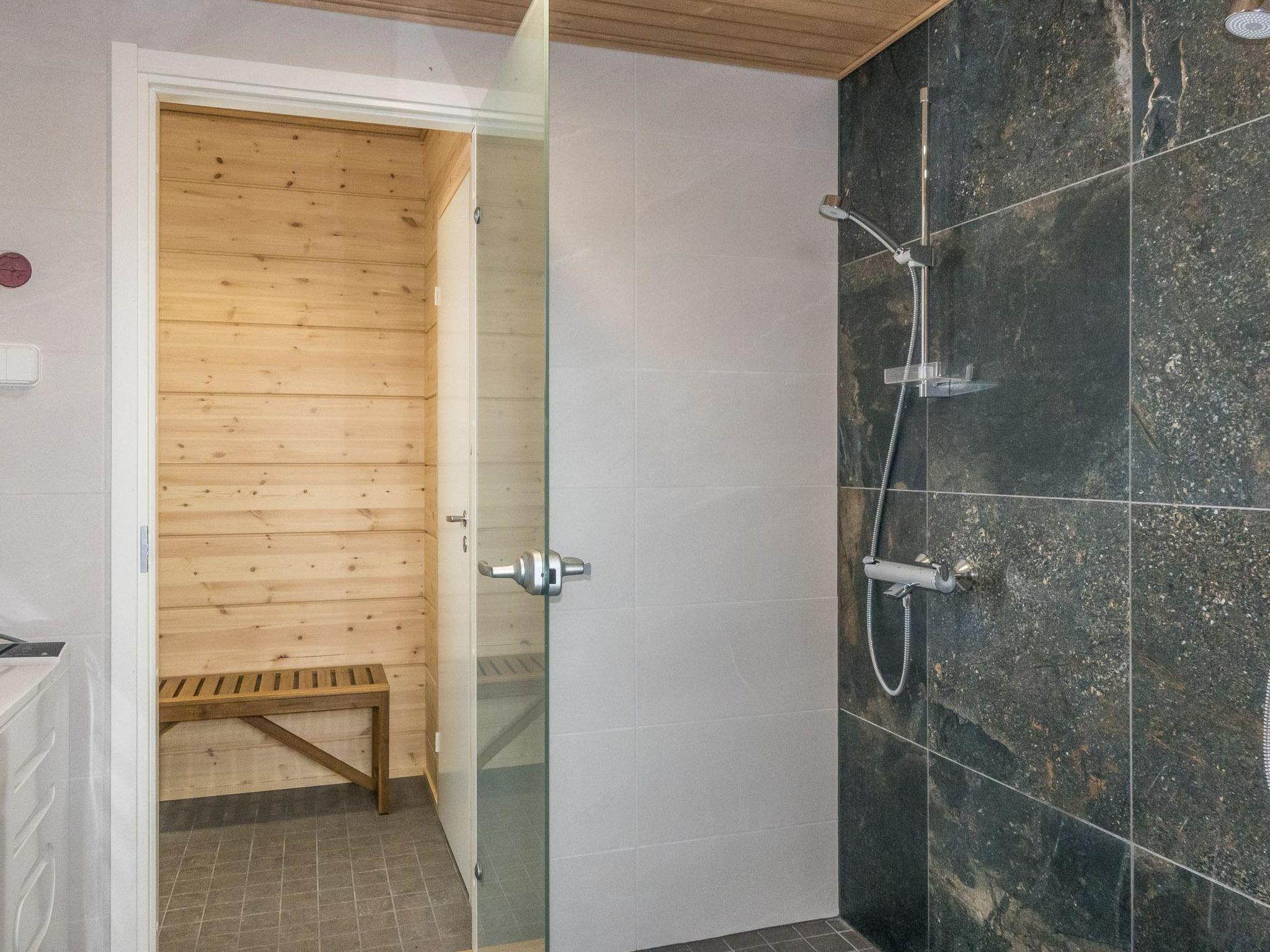 The highlight of the apartment is undoubtedly the sauna area, where you can indulge in leisurely sauna sessions. You'll enjoy a magnificent view directly to Saana fell, enhancing the sauna experience even further. The bathroom has two showers, and there's also a small dressing room and WC.