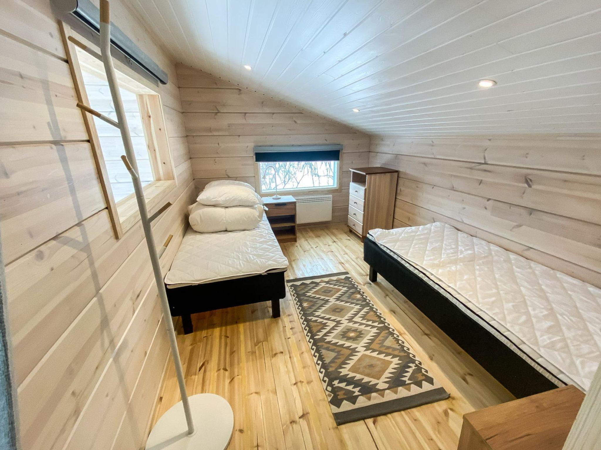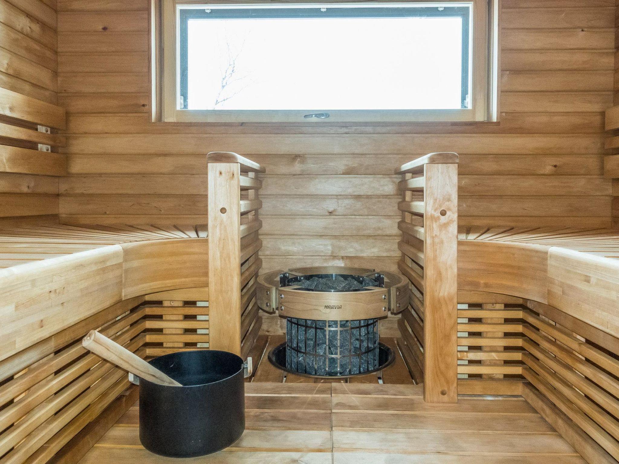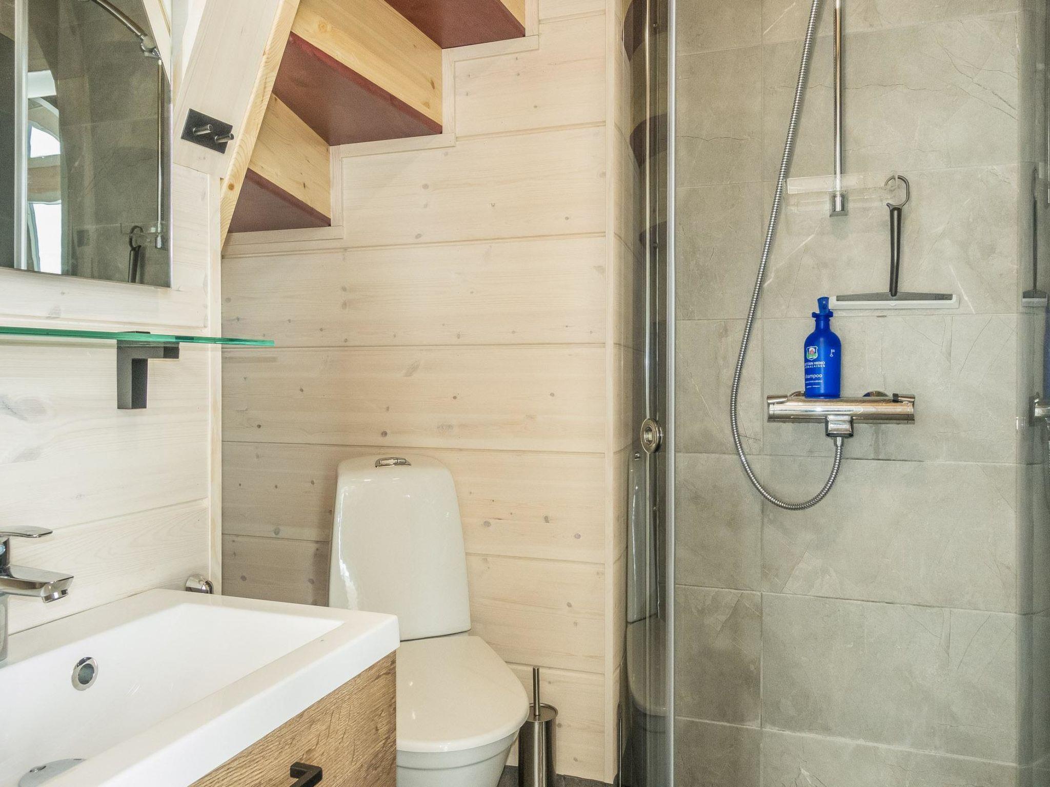 The highlight of the apartment is undoubtedly the sauna area, where you can indulge in leisurely sauna sessions. You'll enjoy a magnificent view directly to Saana fell, enhancing the sauna experience even further. The bathroom has two showers, and there's also a small dressing room and WC.