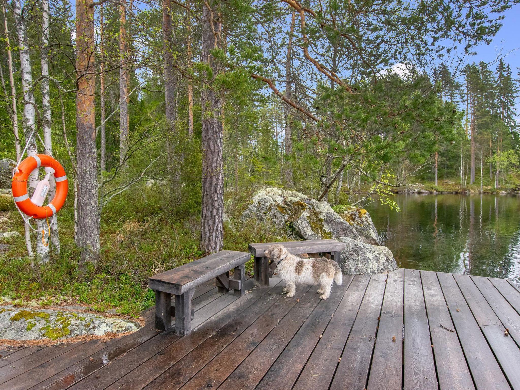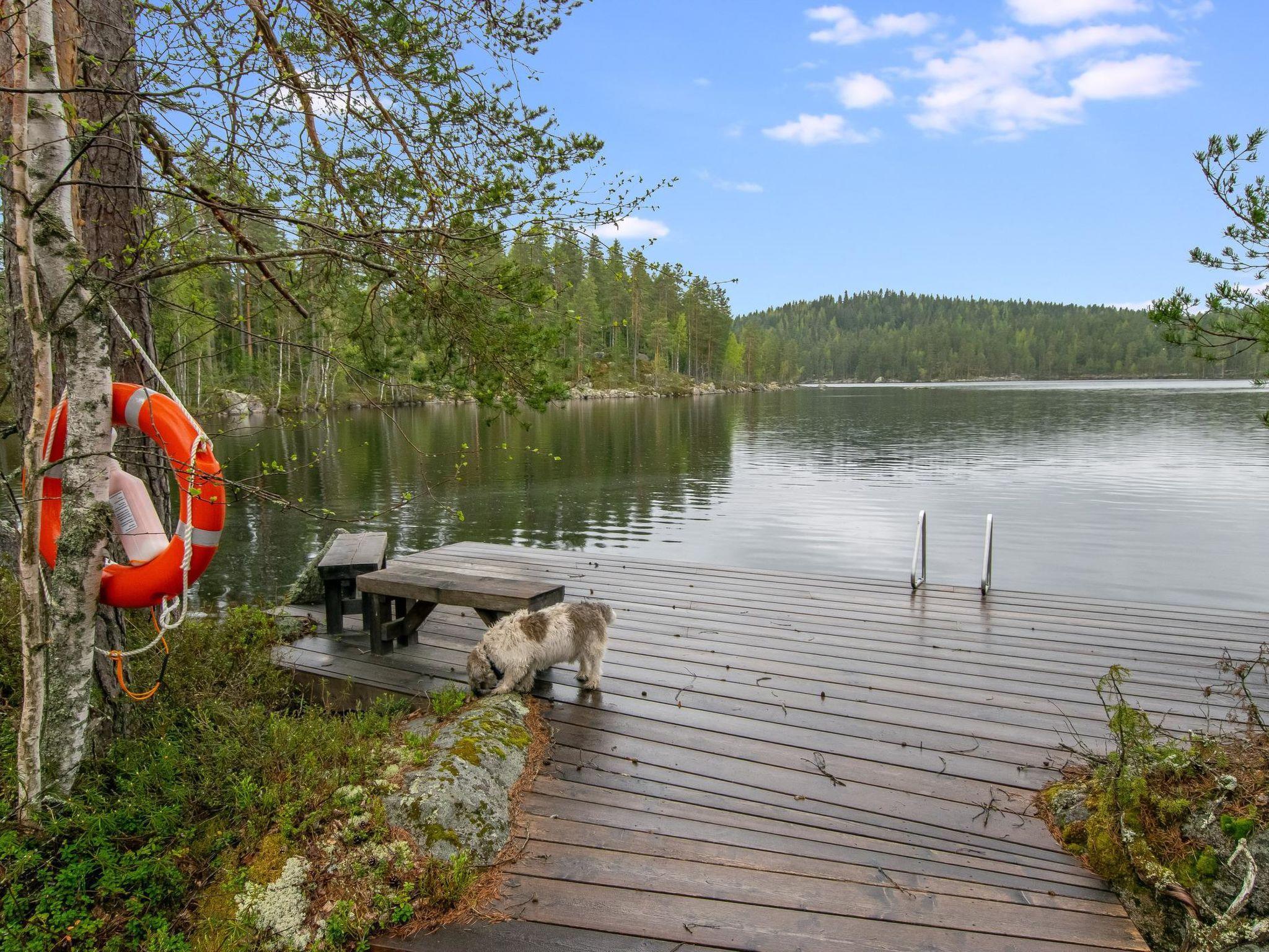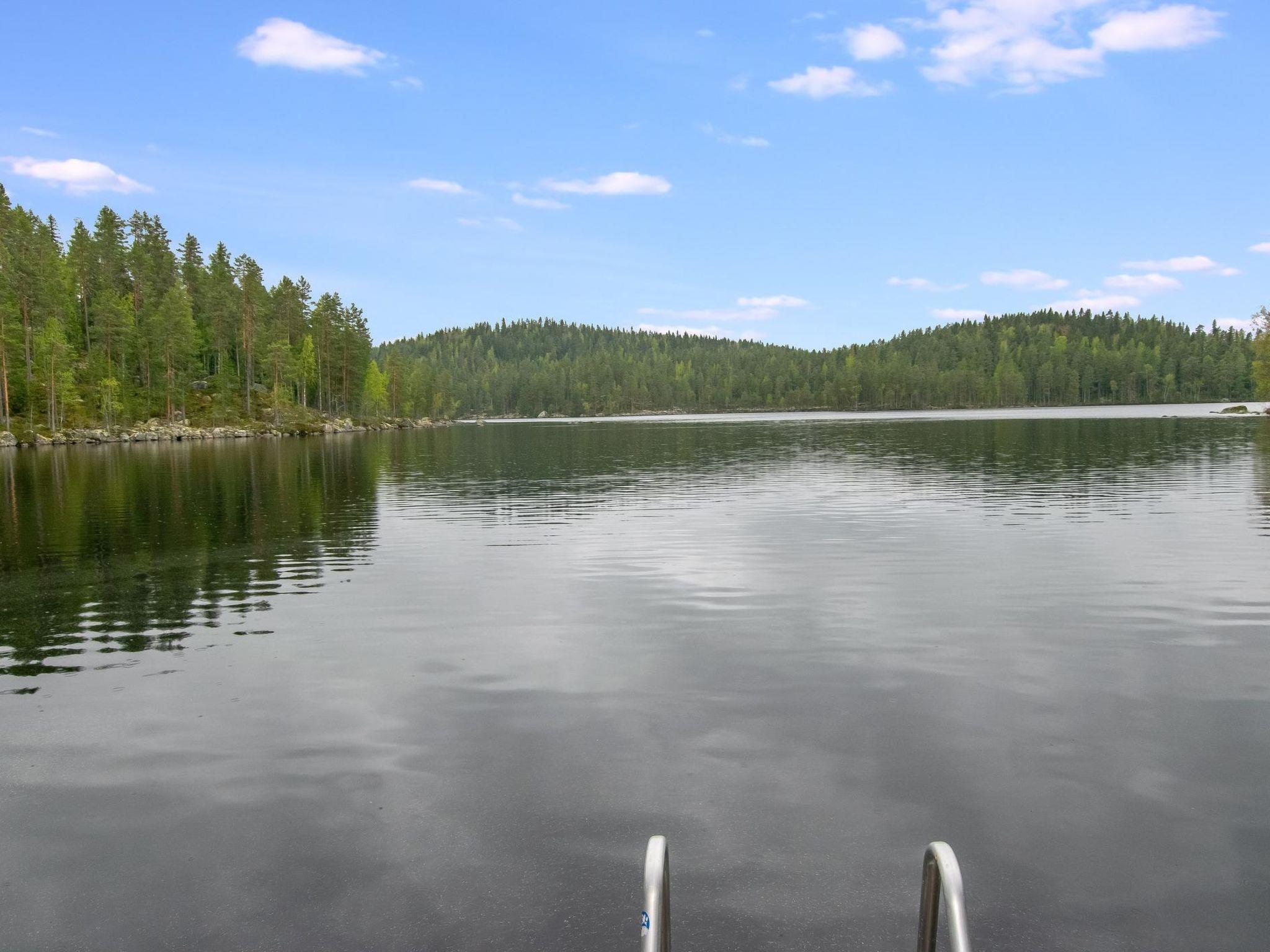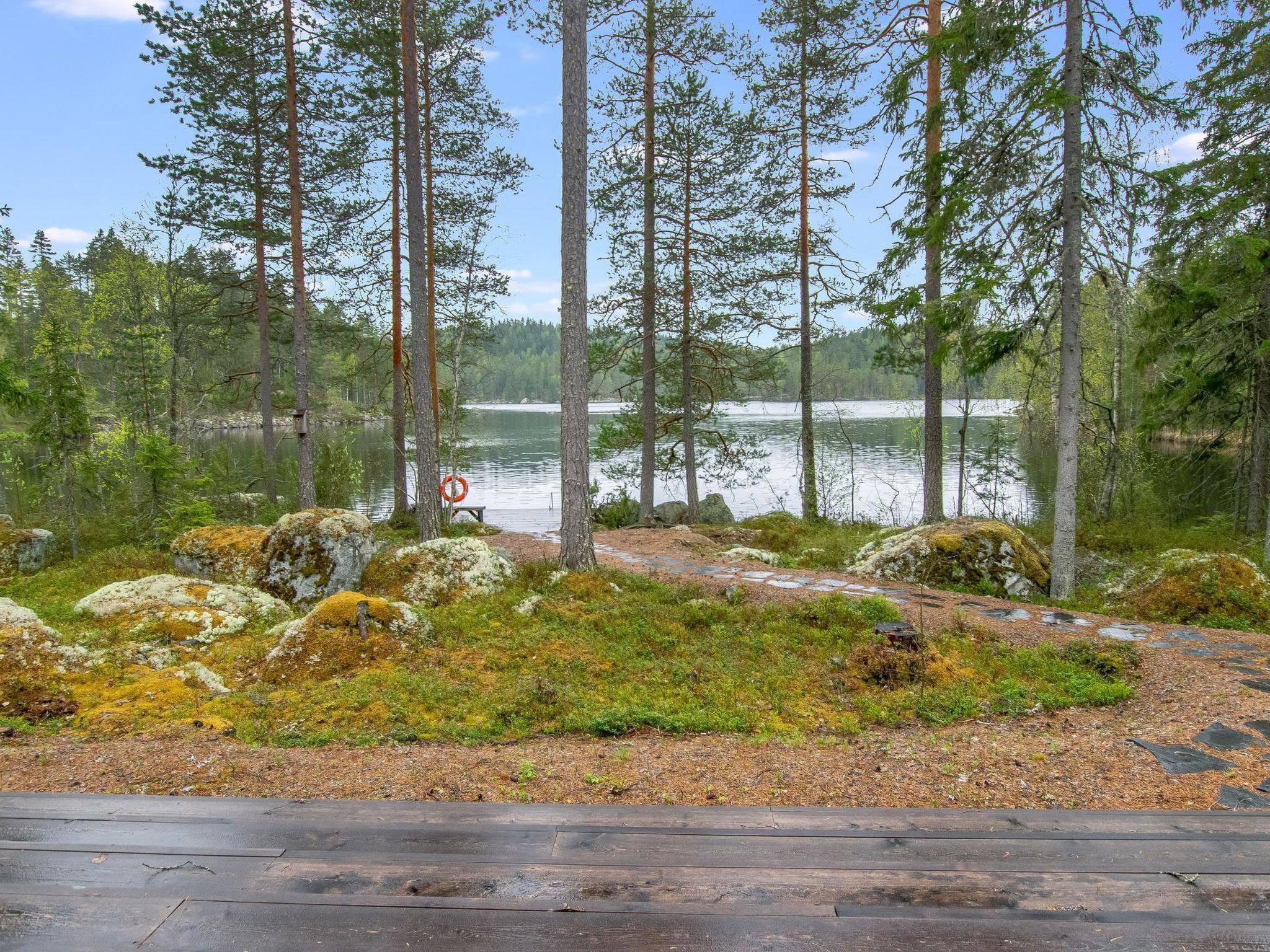 72 km north of Heinola, Iso Kalliojärvi 20 m (length 1.5 km, width 0.2 km), deep beach, 2.5 m of water at the pier, rowing boat.