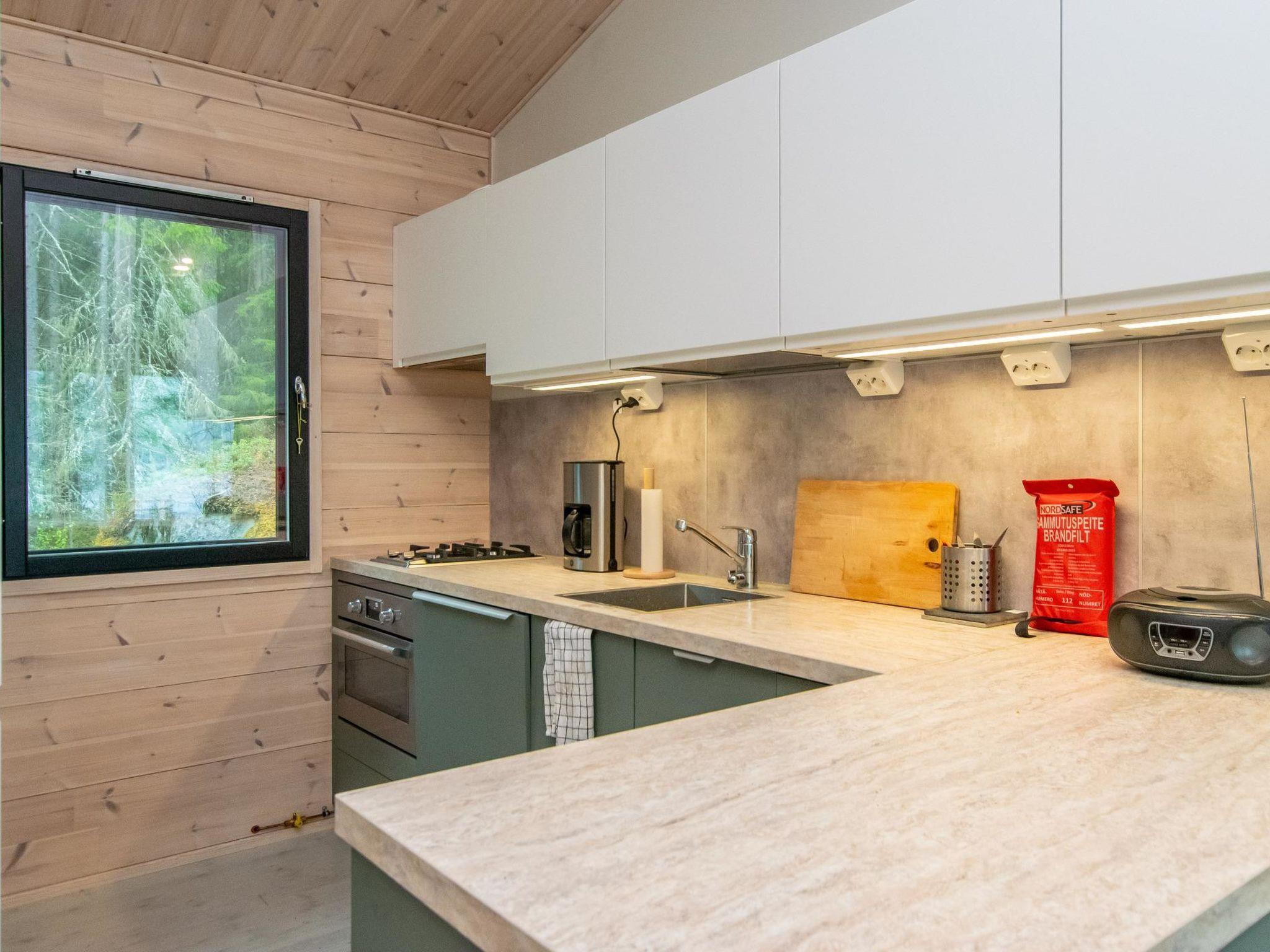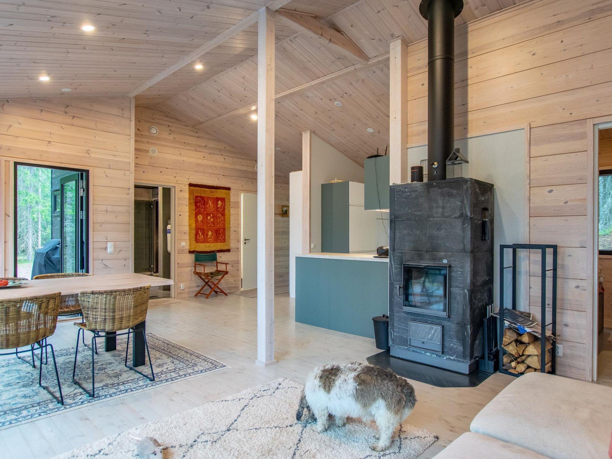 Log cottage 2021, living room and kitchen, two bedrooms, both with a double bed, toilet, shower in the bathroom, wood stove in the sauna. The kitchen has a gas hob, oven-microwave combination and other devices are electric.