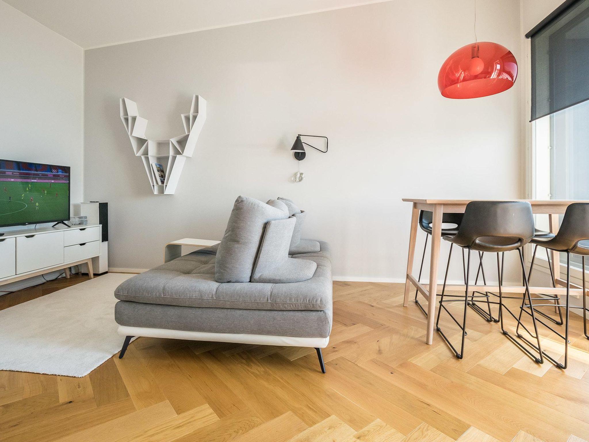 Penthouse, in einer der besten Lagen von Helsinki. Das Reiseziel eignet sich gut für mehrtägige Aufenthalte. Sie können Ihre eigenen Mahlzeiten in der Küche zubereiten und es gibt auch viele Restaurants in der Nähe. Die Anreise mit dem Auto ist einfach, da die Wohnung über einen eigenen Stellplatz in der Tiefgarage verfügt. Penthouse in einem mehrstöckigen Gebäude, in der Gegend von Alppila, Baujahr 2020. Das mehrstöckige Gebäude wurde 1966 gebaut, aber die oberste Etage erst im Jahr 2020. Wohnzimmer, Wohnküche, Schlafzimmer mit Doppelbett, Schlafcouch für 1 Person (120x180 cm) im Wohnzimmer, Waschraum/WC, Luftwärmepumpe zur Kühlung, wohnungsweite Terrasse mit Blick über die Stadt, geräumiges Außensofa, Essgruppe und Gasgrill. Parkplatz für ein Auto in der hauseigenen Parkhalle. Der Aufzug bringt Sie in die zweite oberste Etage, von wo aus eine Treppe in die zehnte (oberste) Etage führt. Bettwäsche für drei Personen und Endreinigung sind im Gesamtpreis der Buchung enthalten. Es gibt allgemeine Regeln für das Leben in der Wohnung, einschließlich Ruhephasen. Die Stille beginnt um 22.00 Uhr. BITTE BEACHTEN BEI ??DER ANFAHRT ZUR WOHNUNG: Der Aufzug bringt Sie in das 2. Obergeschoss (dies ist die oberste Etage, die mit dem Aufzug erreichbar ist). Von dieser Etage aus gelangen Sie über eine Treppe in eine andere Etage. Elegant eingerichtete Stadtwohnung in zentraler Lage in Helsinki. Die Dachterrasse der Ferienwohnung bietet einen schönen Blick über die Dächer der Stadt. Vergnügungspark Linnanmäki 800 m, Marktplatz Hakaniemi 1,2 km, Olympiastadion 1,8 km, Eisbahn Helsinki 2 km, Einkaufszentrum Tripla 2,2 km, Bahnhof Pasila 1,7 km, Einkaufszentrum Redi 2,2 km, Hauptbahnhof Helsinki 3,3 km, Hartwall-Arena 2,5 km, Marktplatz von Helsinki 2,6 km, Naturhistorisches Museum 2,9 km, Zoo Korkeasaari 3 km.