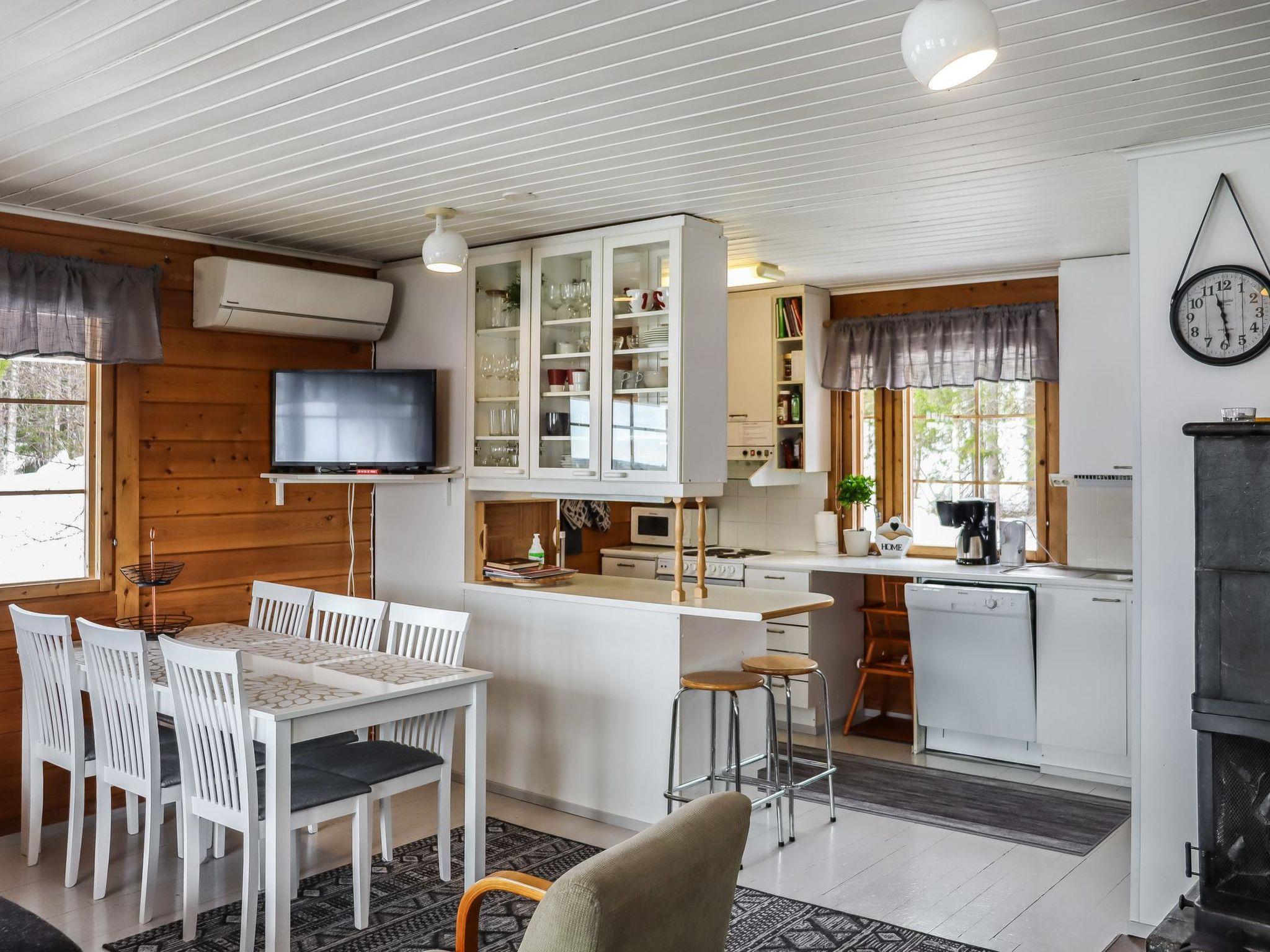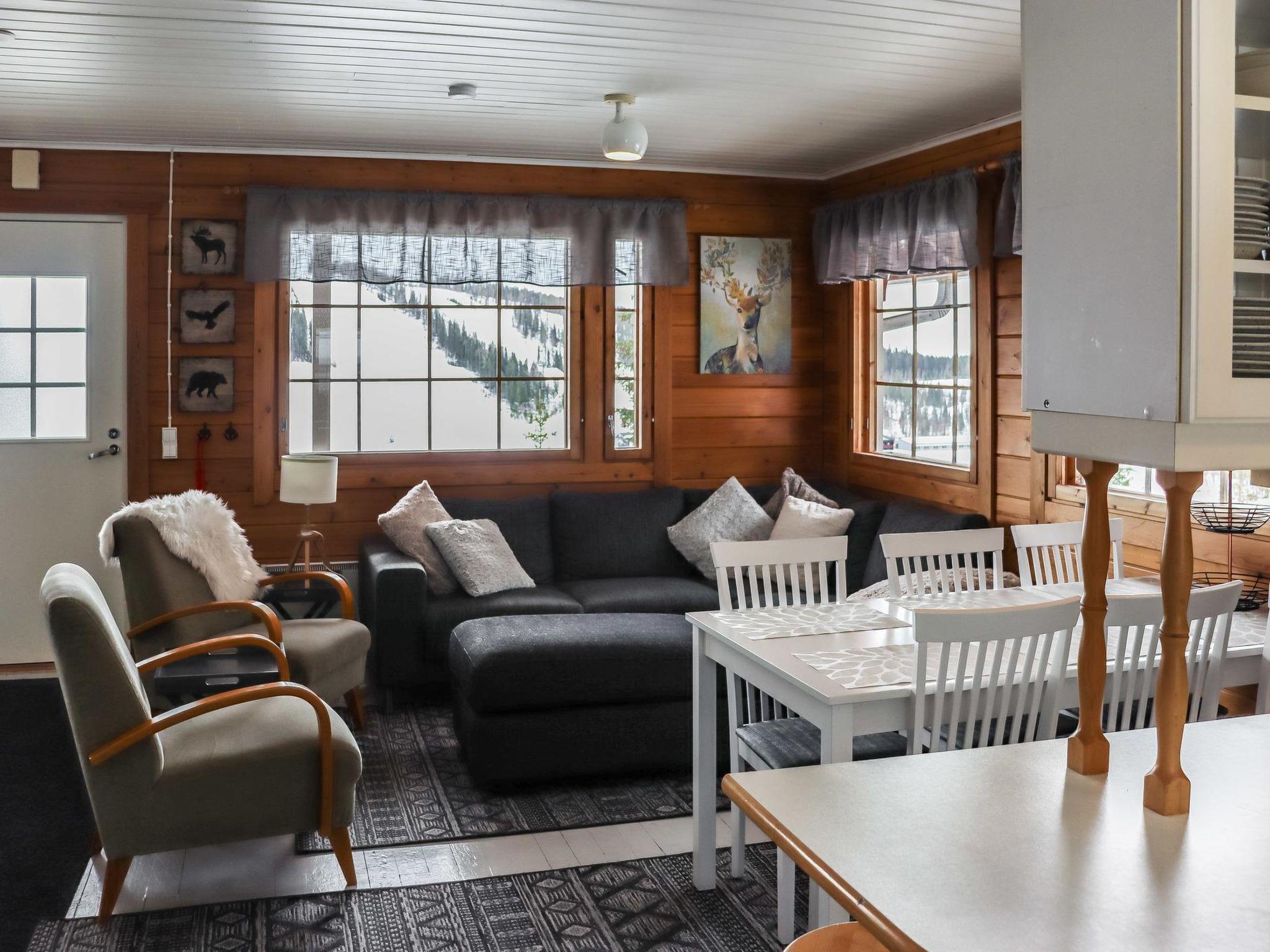 Maximal 1 Haustier/Hund erlaubt. Das Obergeschoss in einer Doppelhaushälfte, im Tourismuszentrum Ukkohalla, für 8 Personen, 75 m2, Baujahr 1991. Küche, Schlafecke, Dachboden, Sauna, Duschbad/Toilette, Balkon, Kamin, Etagenbett in der Schlafecke, 1 Doppelbett und 2 Matratzen auf dem Dachboden. Der Preis beinhaltet 1 Beutel Brennholz. Zusätzliches Holz vom Hausmeister, gegen Aufpreis EUR 10/Beutel. Ukkohalla - Tourismuszentrum am Syväjärvi-See: Informationszentrum, Geschäft, Restaurant, Spa, Pisten-Zentrum, Schneemobilspuren, Skispuren, Programmdienste, Kabel-Wakeboard, Strand (weitere Informationen unter www.ukkohalla.fi). Weitere Entfernungen: Dienste in Ukkohalla 1.5 km, Kajaani-Flughafen 86 km, Oulu 170 km, Helsinki 650 km, Bushaltestelle Hyrynsalmi 18 km, Bahnhof Kontionmäki 66 km. Haustiere sind erlaubt. Schöner Blick über die Pisten und See Syväjärvi. Das Ferienhaus ist am Anreisetag ab 16:00 Uhr bis 12:00 Uhr am Abreisetag verfügbar.