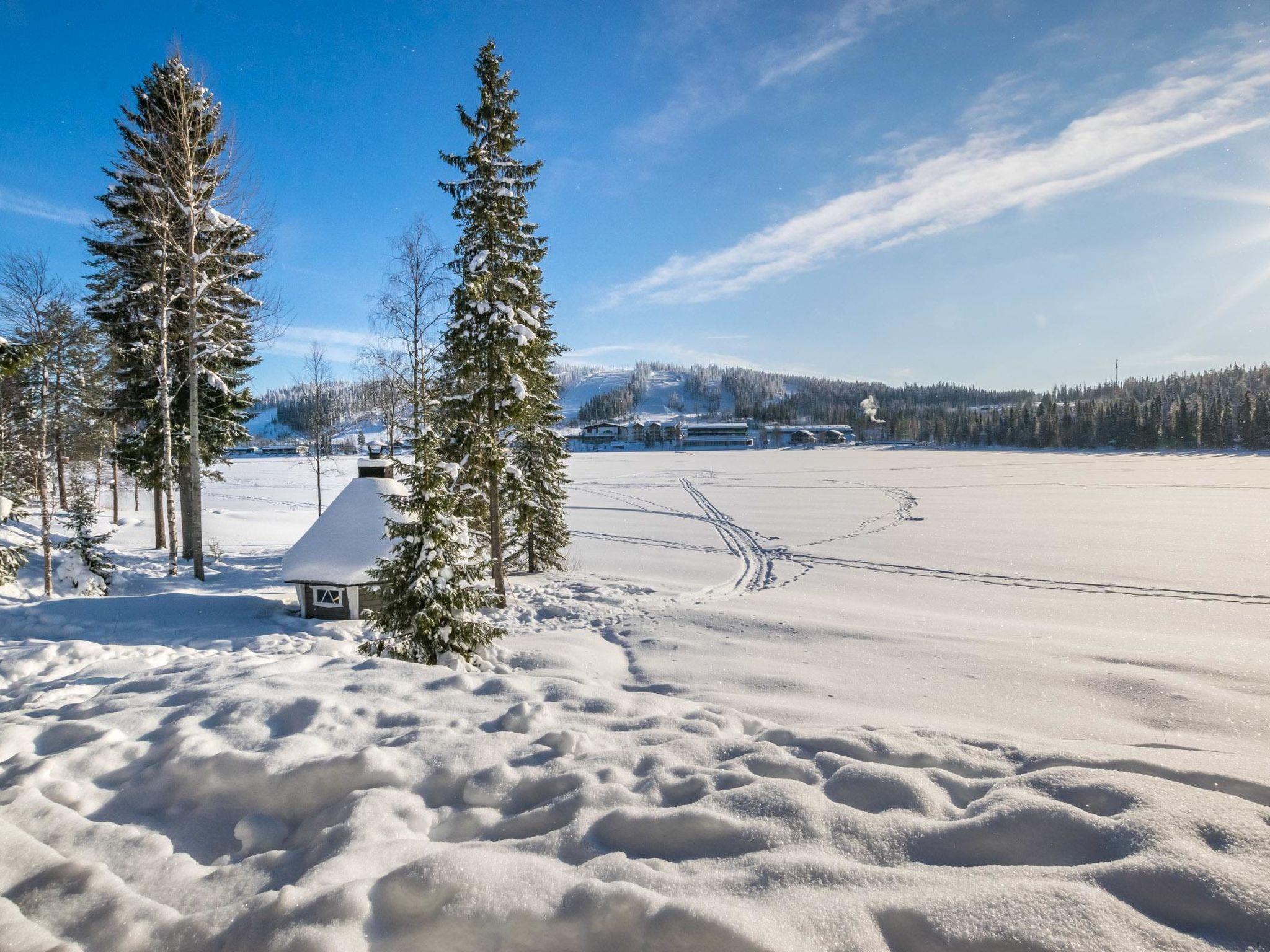 Maximal 1 Haustier/Hund erlaubt. Doppelhaushälfte, im Tourismuszentrum Ukkohalla, Fläche 150 m2, Baujahr 2007. Küche, 5 Schlafzimmer, Dachboden, Sauna, Dusche/WC, 2 separate Toiletten, Ankleideraum, Vorraum, Terrasse, Abstellraum, Kamin. Der Preis beinhaltet Brennholz. 4 Schlafzimmer mit je 2 Betten (80 cm), Schlafzimmer mit 1 Bett (140 cm), 4 Ersatzmatratzen auf dem Dachboden. Steg und Boot am See zur Mitbenutzung. Ukkohalla: Tourismuszentrum am See Syväjärvi, mit Informationszentrum, Geschäft, Restaurant, Spa, Pistenzentrum, Schneemobilpisten, Skipisten, Programmservice, Strand (weitere Informationen unter www.ukkohalla.fi). Entfernung zu den Ukkohalla-Diensten 0,7 km. Flughafen Kajaani 86 km, Oulu 170 km, Helsinki 650 km, Bushaltestelle Hyrynsalmi 18 km, Bahnhof Kontiomäki 66 km. Schöne Aussicht über die Pisten und den See Syväjärvi. Das Ferienhaus steht am Anreisetag ab 16.00 Uhr bis 12.00 Uhr am Abreisetag zur Verfügung. Bettwäsche muss gebucht werden (€12/Person). Ab 1.10.2014 ist die Endreinigung im Preis inbegriffen.