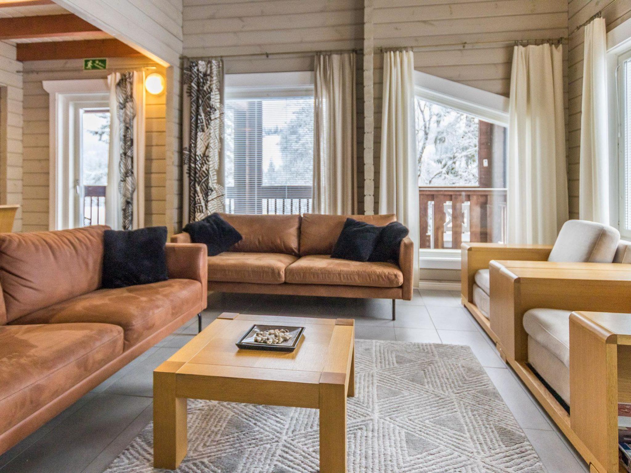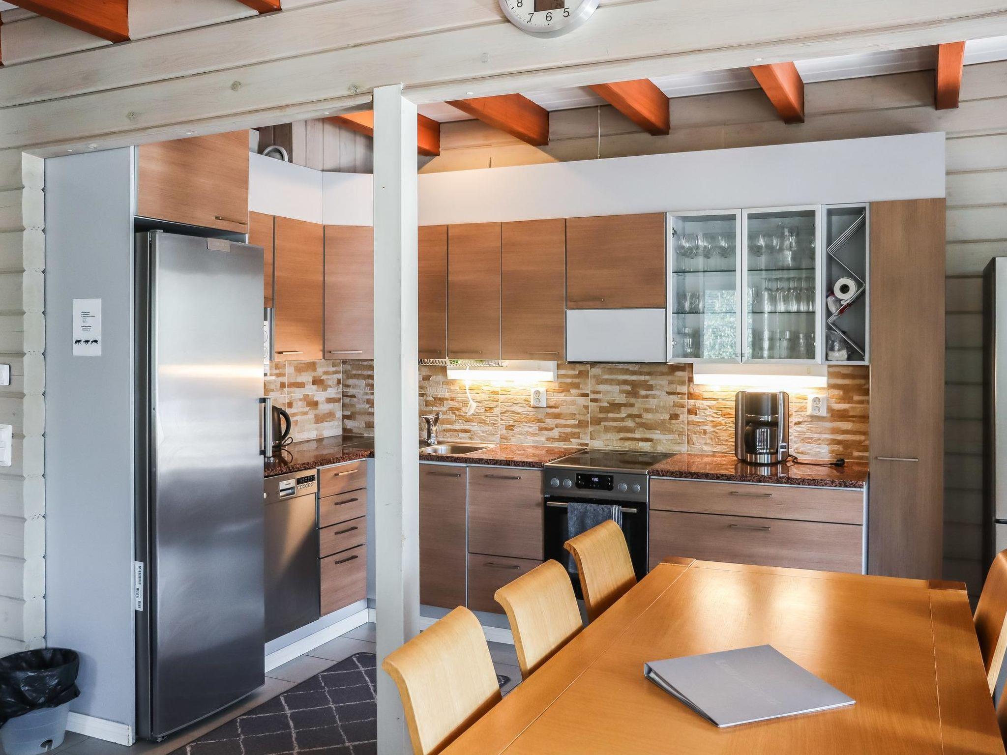 Maximal 1 Haustier/Hund erlaubt. Doppelhaushälfte, im Tourismuszentrum Ukkohalla, Fläche 160 m², für 14 Personen, Baujahr 2009. Küche, 5 Schlafzimmer (3 auf dem Dachboden), Sauna, Duschbad, 2 separate Toiletten, Ankleideraum, Vorraum, Terrasse, Kamin. 2 Schlafzimmer mit je 2 Betten (80 cm), 1 Einzelbett (120 cm breit) in einem der Schlafzimmer, 1 Schlafzimmer mit Betten (5x80 cm), 1 Schlafzimmer mit 1 Bett (80 cm) und 1 Doppelbett (140 cm). Der Preis beinhaltet 1 Sack Brennholz, zusätzliches Holz vom Hausmeister (Eur10/Sack). Ukkohalla: Tourismuszentrum am Syväjärvi-See mit Informationszentrum, Geschäft, Restaurant, Spa, Pistenzentrum, Schneemobilpisten, Skipisten, Programmservice, Strand (weitere Informationen unter www.ukkohalla.fi). Entfernung zu den Ukkohalla-Diensten 1 km. Flughafen Kajaani 86 km, Oulu 170 km, Helsinki 650 km, Bushaltestelle Hyrynsalmi 18 km, Bahnhof Kontiomäki 66 km. Haustiere erlaubt, €30/2 Haustiere, Blick über die Pisten und den See Syväjärvi. Das Ferienhaus steht am Anreisetag ab 16.00 Uhr bis 12.00 Uhr am Abreisetag zur Verfügung.