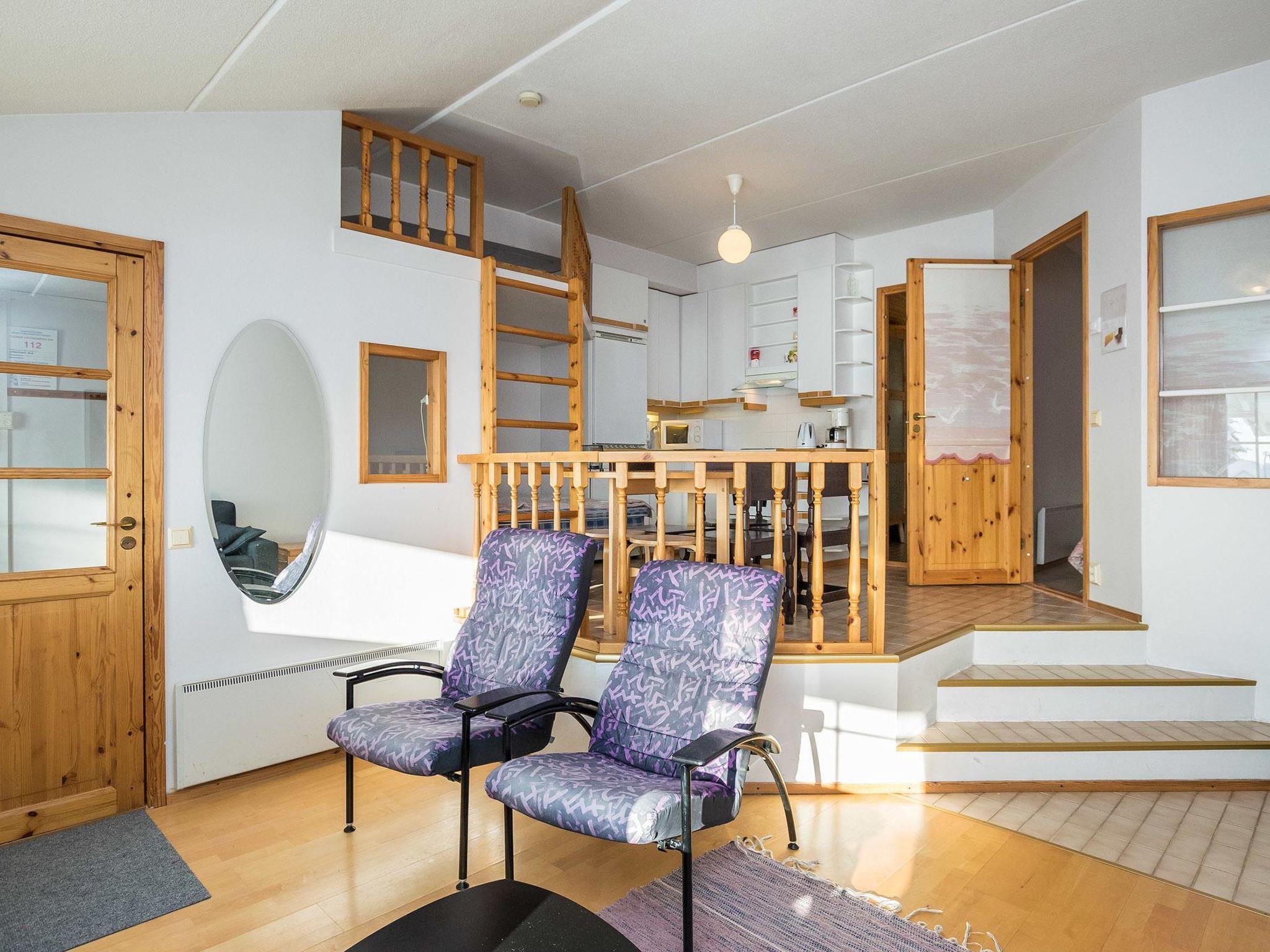 Ferienwohnung im Lofthaus-Erdgeschoss, im Tourismuszentrum Ukkohalla, (Wohnungen auf 3 Etagen) Fläche 47m², Baujahr 1992, Küche, 1 Schlafzimmer, 1 Schlafecke, kleiner Dachboden, Sauna, Duschbad/WC, Vorraum, Balkon. 2 Betten im Schlafzimmer, Doppelbett in der Schlafecke, Schlafsofa und 1 Matratze auf dem Dachboden. Außengrill im Sommereinsatz. Kamin wird nicht benutzt. Ukkohalla: Tourismuszentrum am See Syväjärvi, Informationszentrum, Geschäft, Restaurant, Spa, Pistenzentrum, Schneemobilpisten, Skipisten, Programmservice, Strand (weitere Informationen unter www.ukkohalla.fi). Entfernung zu den Ukkohalla-Diensten 1,5 km. Flughafen Kajaani 86 km, Oulu 170 km, Helsinki 650 km, Bushaltestelle Hyrynsalmi 18 km, Bahnhof Kontiomäki 66 km. Haustiere verboten, Blick über die Pisten und den See Syväjärvi. Das Ferienhaus steht am Anreisetag ab 16.00 Uhr bis 12.00 Uhr am Abreisetag zur Verfügung.