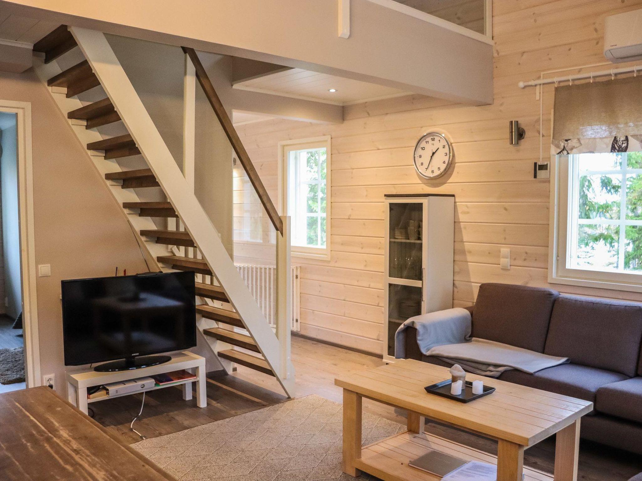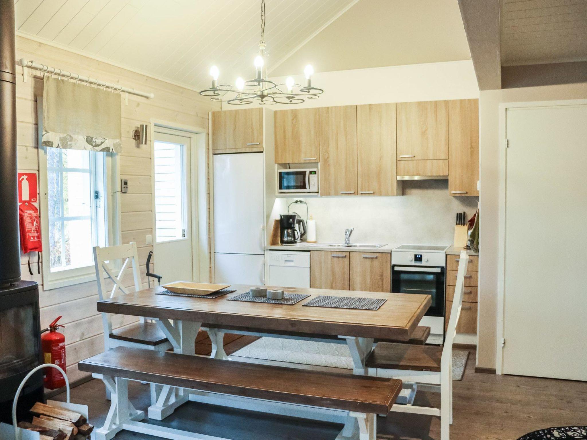 Maximal 1 Haustier/Hund erlaubt. Doppelhaushälfte im Tourismuszentrum Ukkohalla, 95 m2 + Dachboden 28 m2, für 8 Personen, Baujahr 2015. Eingang von der unteren Etage des Hauses, wo sich Wohnzimmer und Sauna befinden. In der mittleren Etage befinden sich Wohnküche und 2 Schlafzimmer. 2 WC, davon eines im Erdgeschoss und das zweite auf der mittleren Etage. Das Ferienhaus verfügt über Trocken-, Wachs- und Abstellraum für 2 Häuser zur Mitbenutzung. Blick auf den See und die Pisten. Betten: in einem Schlafzimmer 1 Doppelbett, im zweiten Schlafzimmer 2 Betten, auf dem Dachboden 4 Betten. Küche, 3 Schlafzimmer (eines auf dem Dachboden), Dachboden-Lobby, Sauna, Duschbad, 2 separate Toiletten, Ankleideraum, Vorraum, Terrasse, Abstellraum, Kamin und Brennholz. 2 Schlafzimmer mit je 2x80 cm Betten - 1 Doppelbett in einem der Schlafzimmer, 1 Schlafsofa + 2 Ersatzmatratzen auf dem Dachboden. WLAN. Brennholz ist im Preis inbegriffen. Ukkohalla: Tourismuszentrum am See Syväjärvi, mit Informationszentrum, Geschäft, Restaurant, Spa, Pistenzentrum, Schneemobilstrecken, Skipisten, Programmdiensten, Cable Wakeboard, Strand (weitere Informationen unter www.ukkohalla.fi). Entfernung zu den Ukkohalla-Diensten 0,1 km. Flughafen Kajaani 86 km, Oulu 170 km, Helsinki 650 km, Bushaltestelle Hyrynsalmi 18 km, Bahnhof Kontiomäki 66 km. Haustiere sind im Erdgeschoss verboten. Blick über die Pisten. Das Ferienhaus steht am Anreisetag ab 16.00 Uhr zur Verfügung - am Abreisetag bis 12.00 Uhr. DIE ENDREINIGUNG IST IM PREIS INBEGRIFFEN. DIE BETTWÄSCHE, 15€/PRO PERSON, SIND OBLIGATORISCH FÜR DIE RESERVIERUNG.