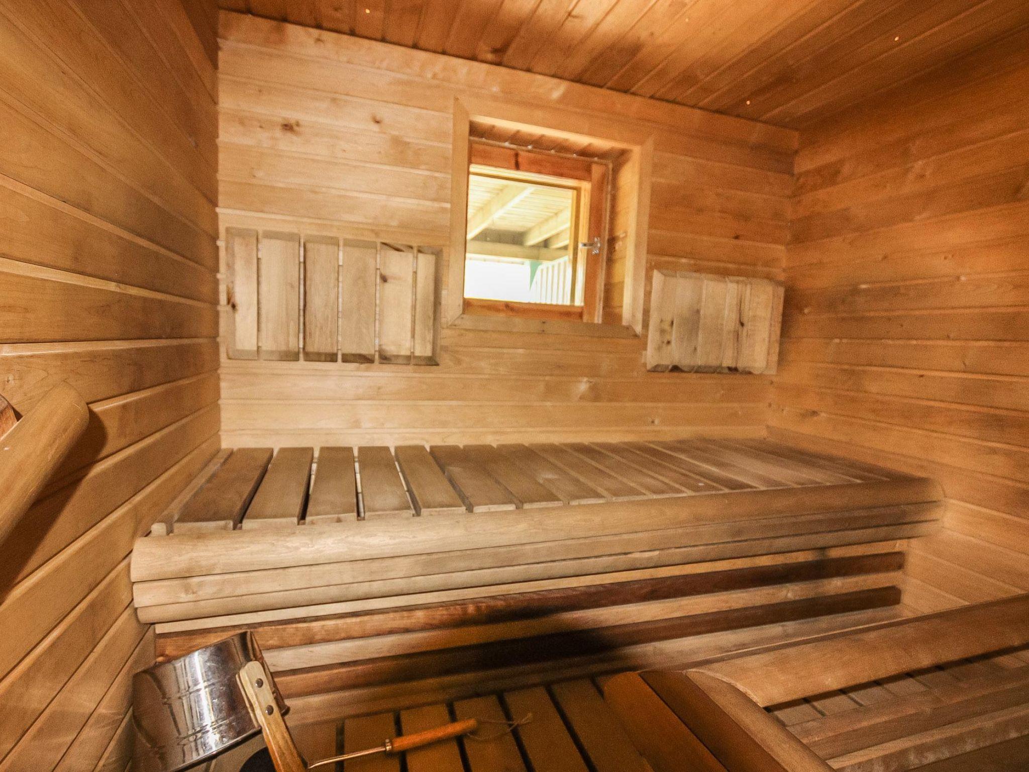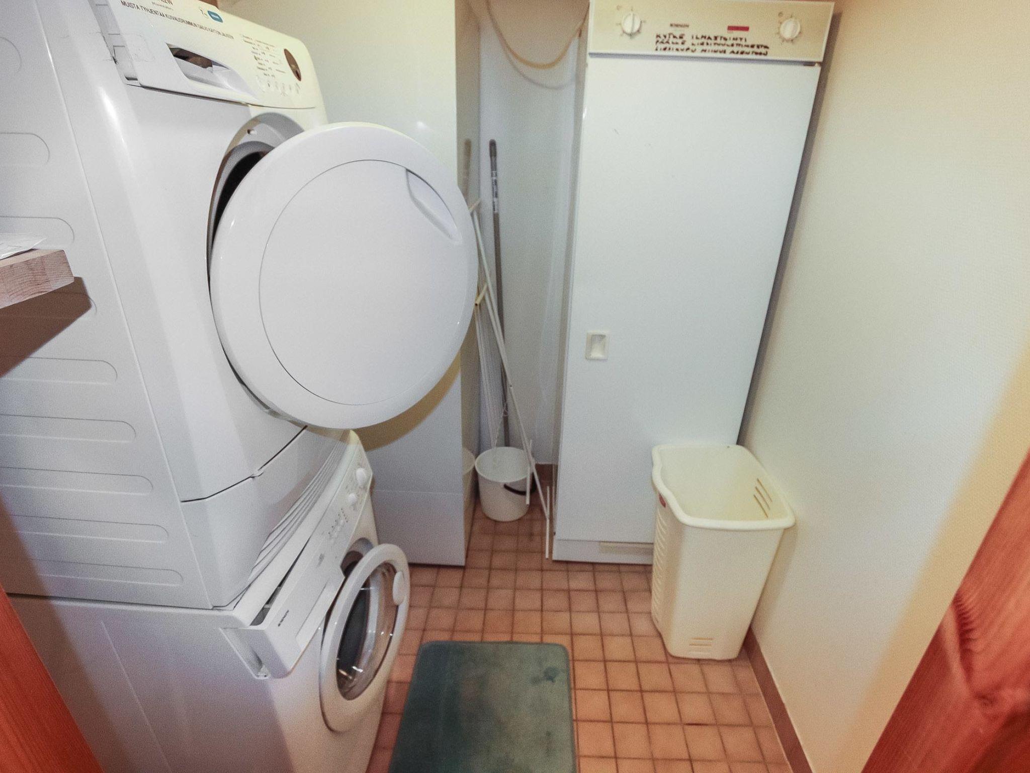 Equipment: electric cooker, microwave oven, refrigerator + freezer, extractor fan, dishes, dishwasher, water boiler, toaster, coffee maker, ironing and, cleaning equipment, vacuum cleaner, washing machine, tumbler drier, hot cupboard, TV, DVD, radio, cassette player, CD player, VHS, baby cot, high chair for babies, an outdoor grill in summer use, car heating plug.