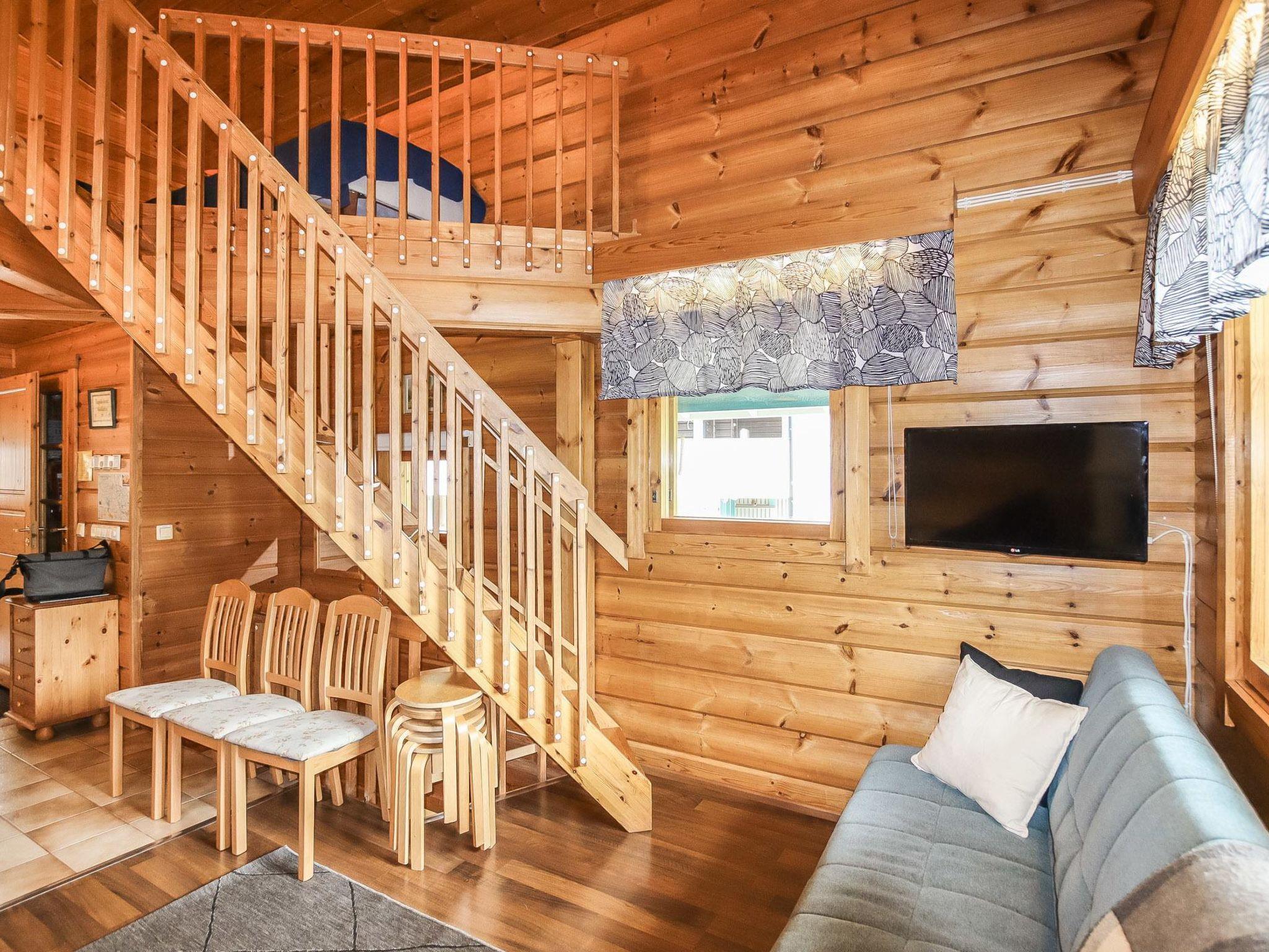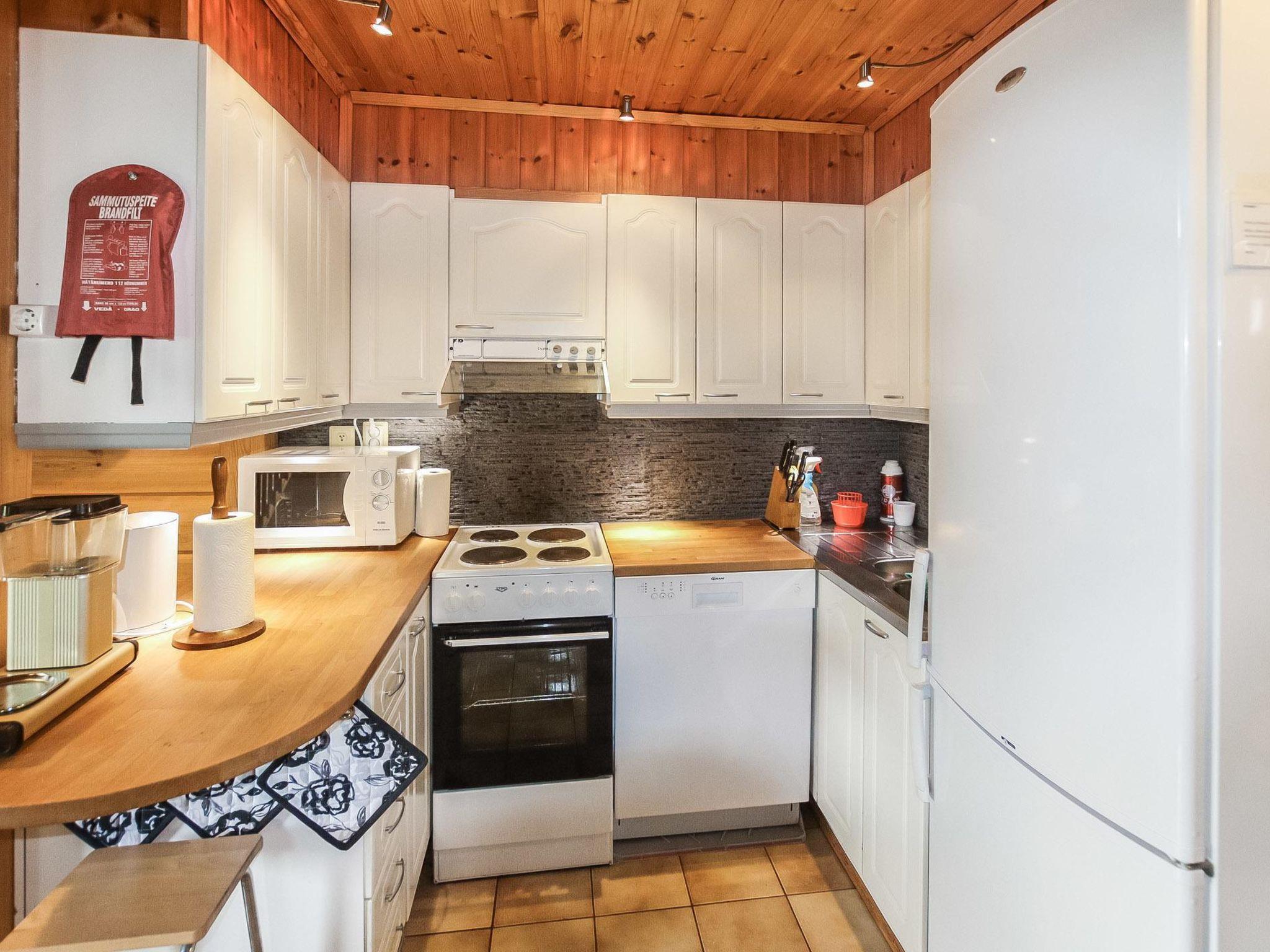 A semi-detached house located in the Ukkohalla tourism centre, 85m2 + loft 15m2, built in 1991, premises on 3 floors. Kitchen, 3 bedrooms, loft, sauna downstairs, shower room/toilet, dressing room, toilet, terrace, balcony, vestibule, fireplace and firewood. First floor; lounge area. Bed and bunk bed in the second floor bedrooms. a sofa-bed in living room. Double bed and bed in the third floor bedroom, an opening bed plus mattress on the loft, child safety gates on the second and third floor.