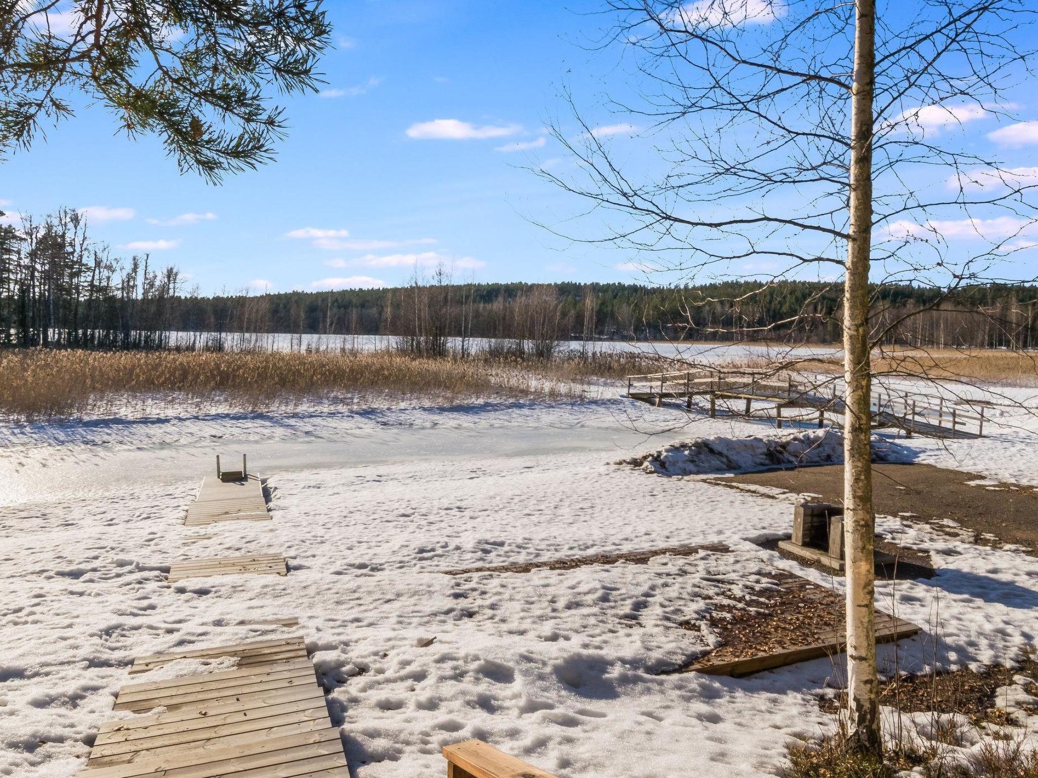 47 km to the east of Lahti, Lake Iso Valkjärvi 20 m, shallow, gradually deepening sandy bottom, a pier, and rowing boat. The log cabin, built in 1995 and renovated in 2023, living room/kitchen, bedroom with a double bed and two armchairs, a WC corner with a curtain, and a sauna with wood-burning sauna stove and shower.