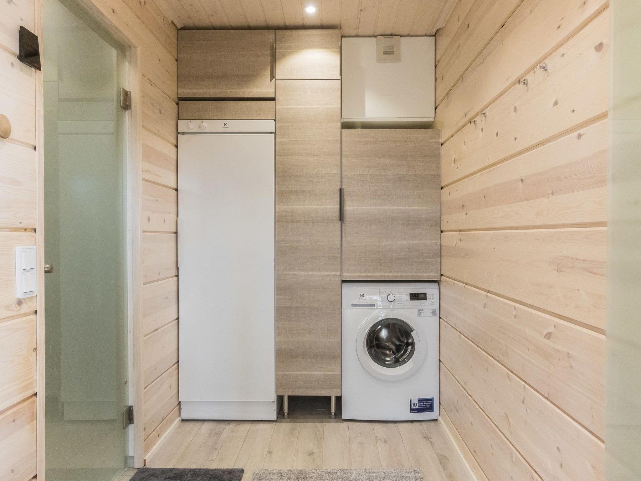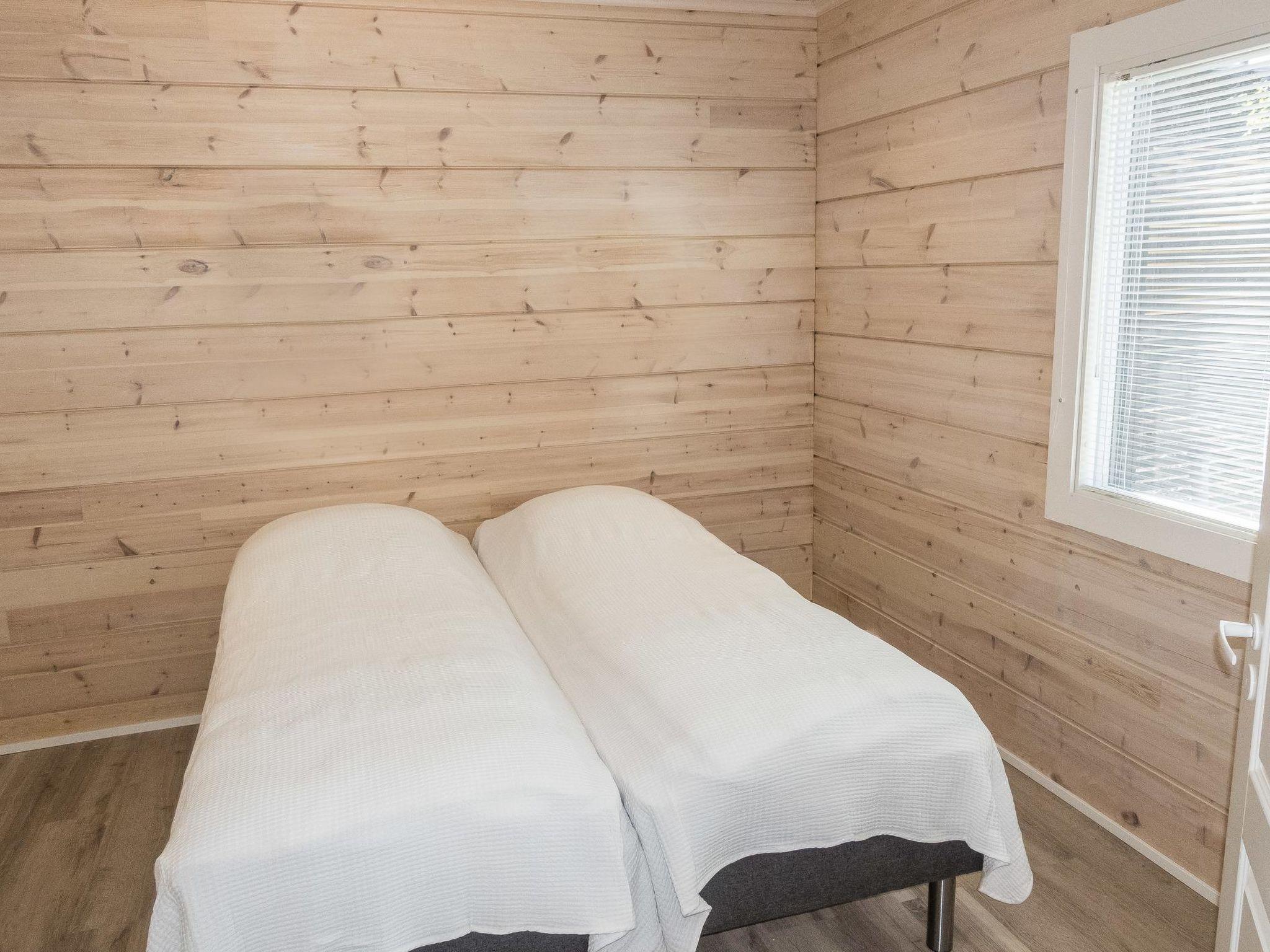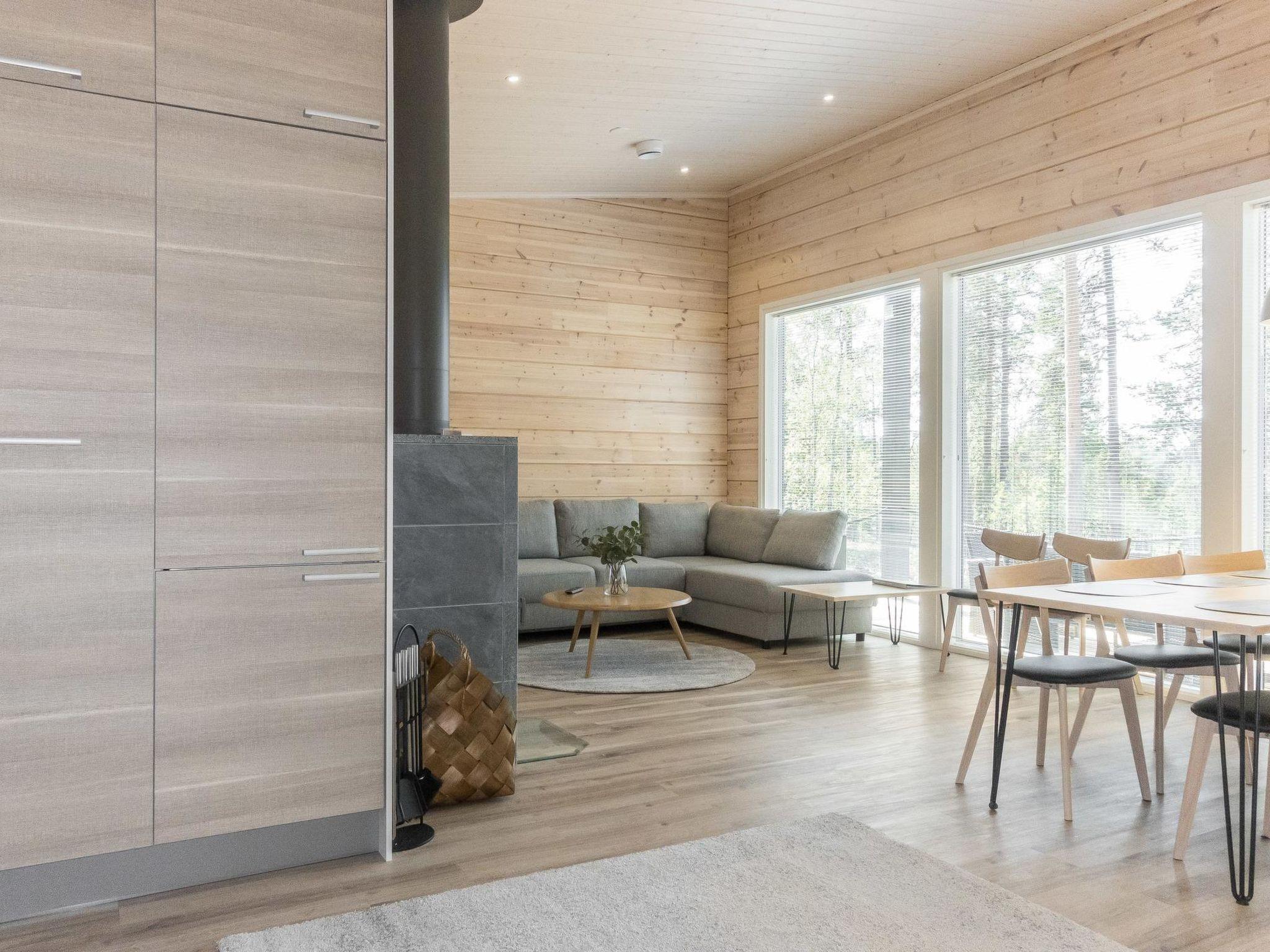Log house (80 m²), built in 2022. Living room/kitchen with sofa bed, two bedrooms, both with two beds, sauna, washroom, utility room, separate WC and covered terrace.