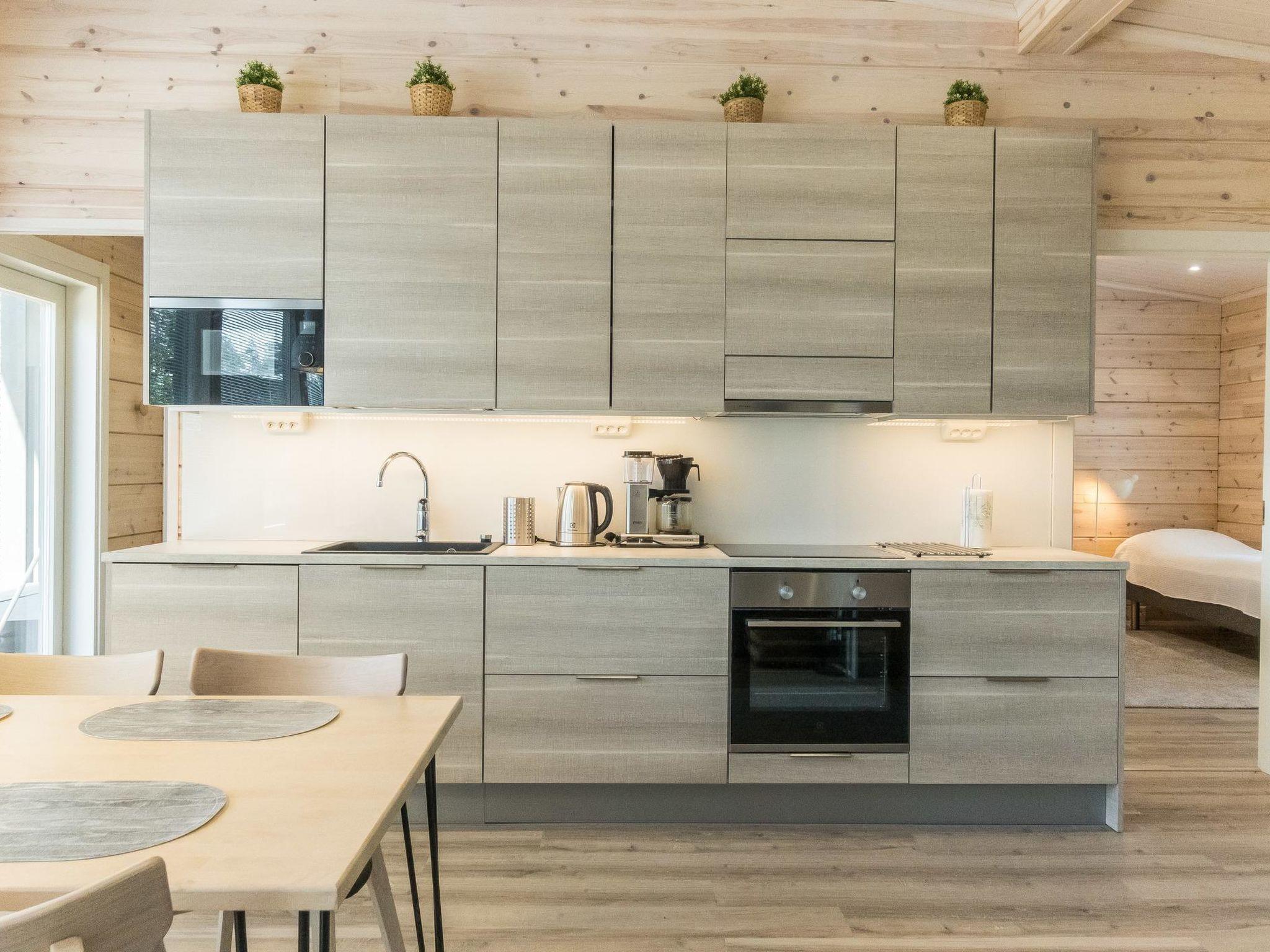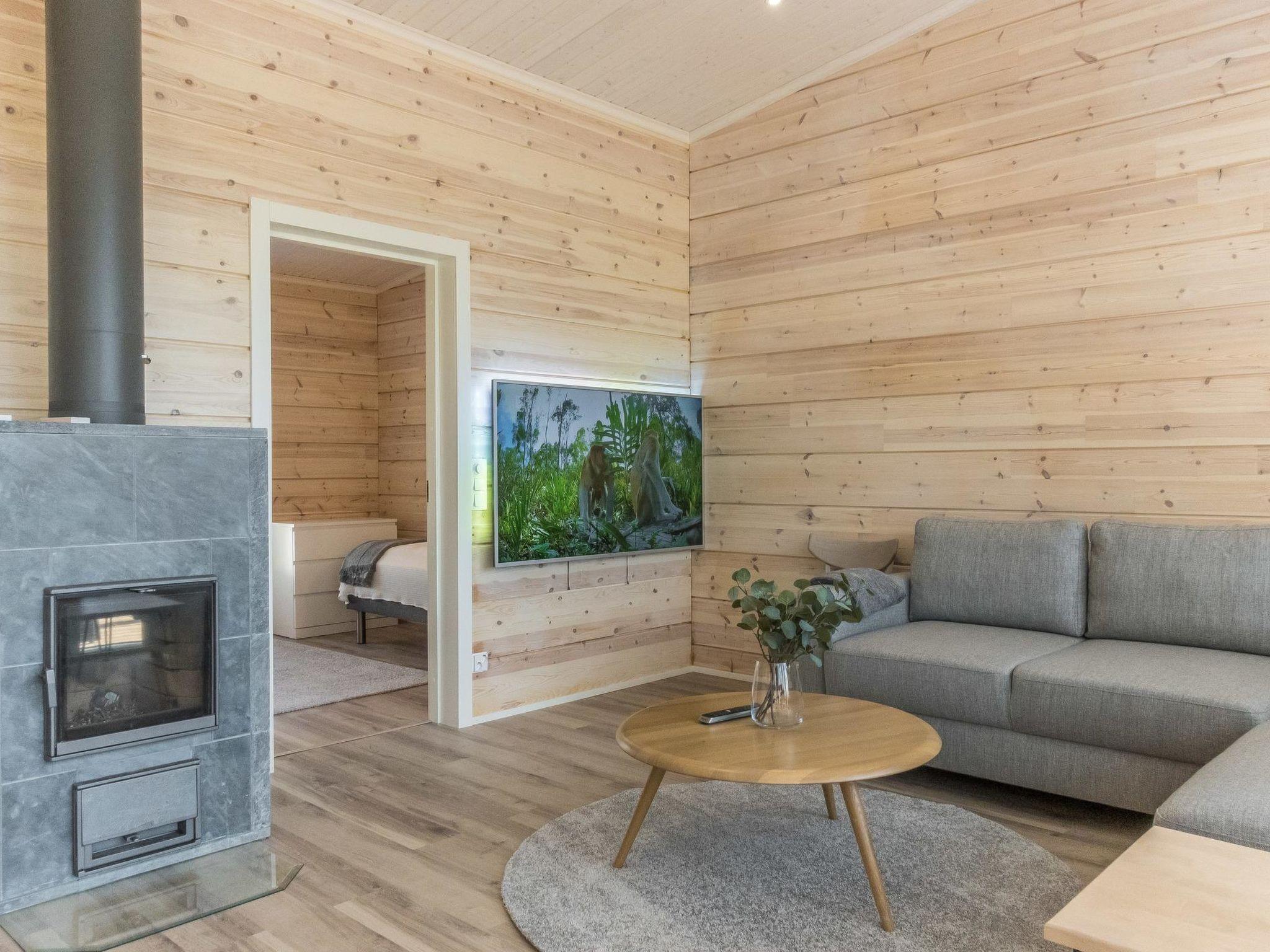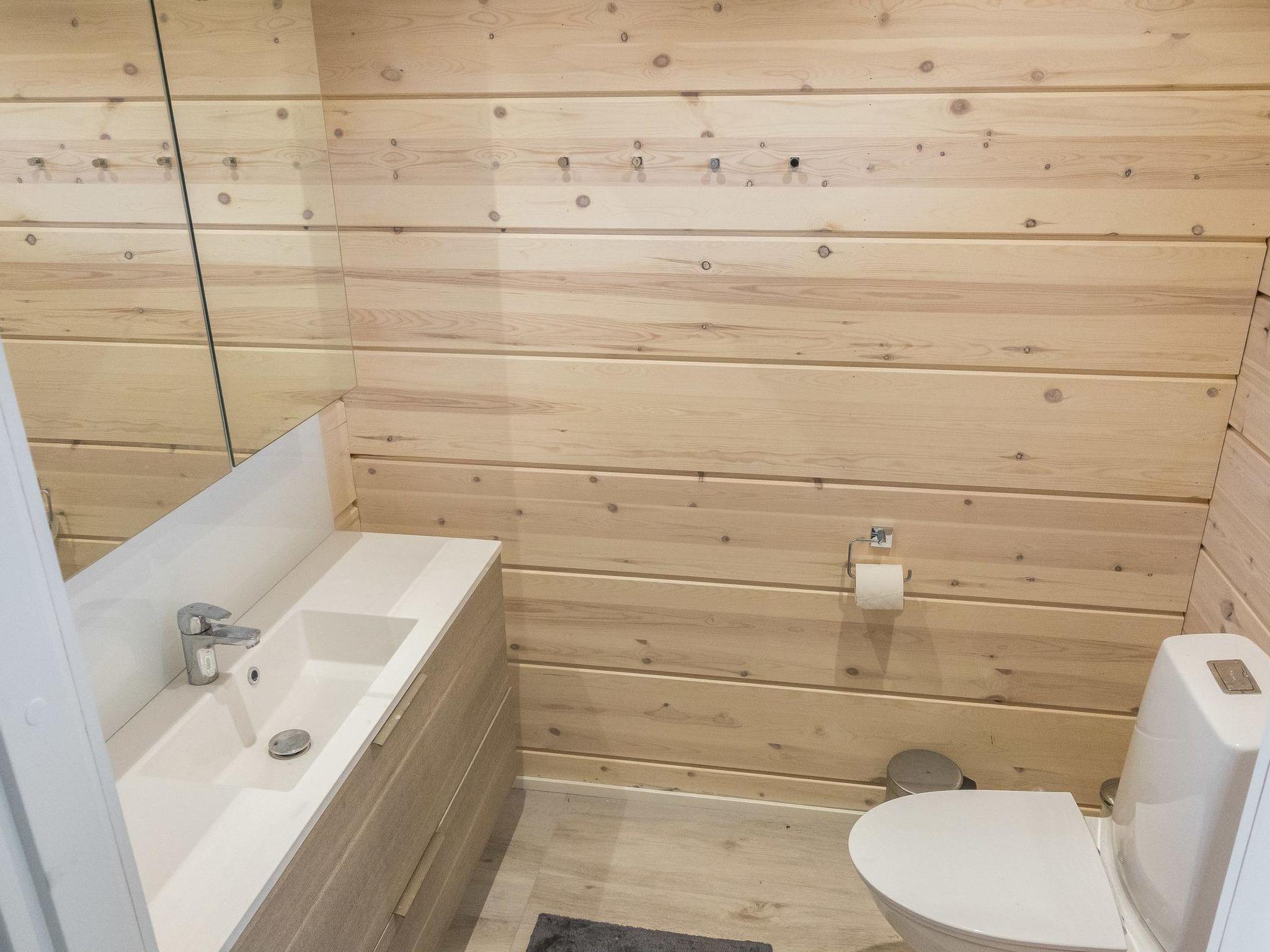 Log house (80 m²), built in 2022. Living room/kitchen with sofa bed, two bedrooms, both with two beds, sauna, washroom, utility room, separate WC and covered terrace.