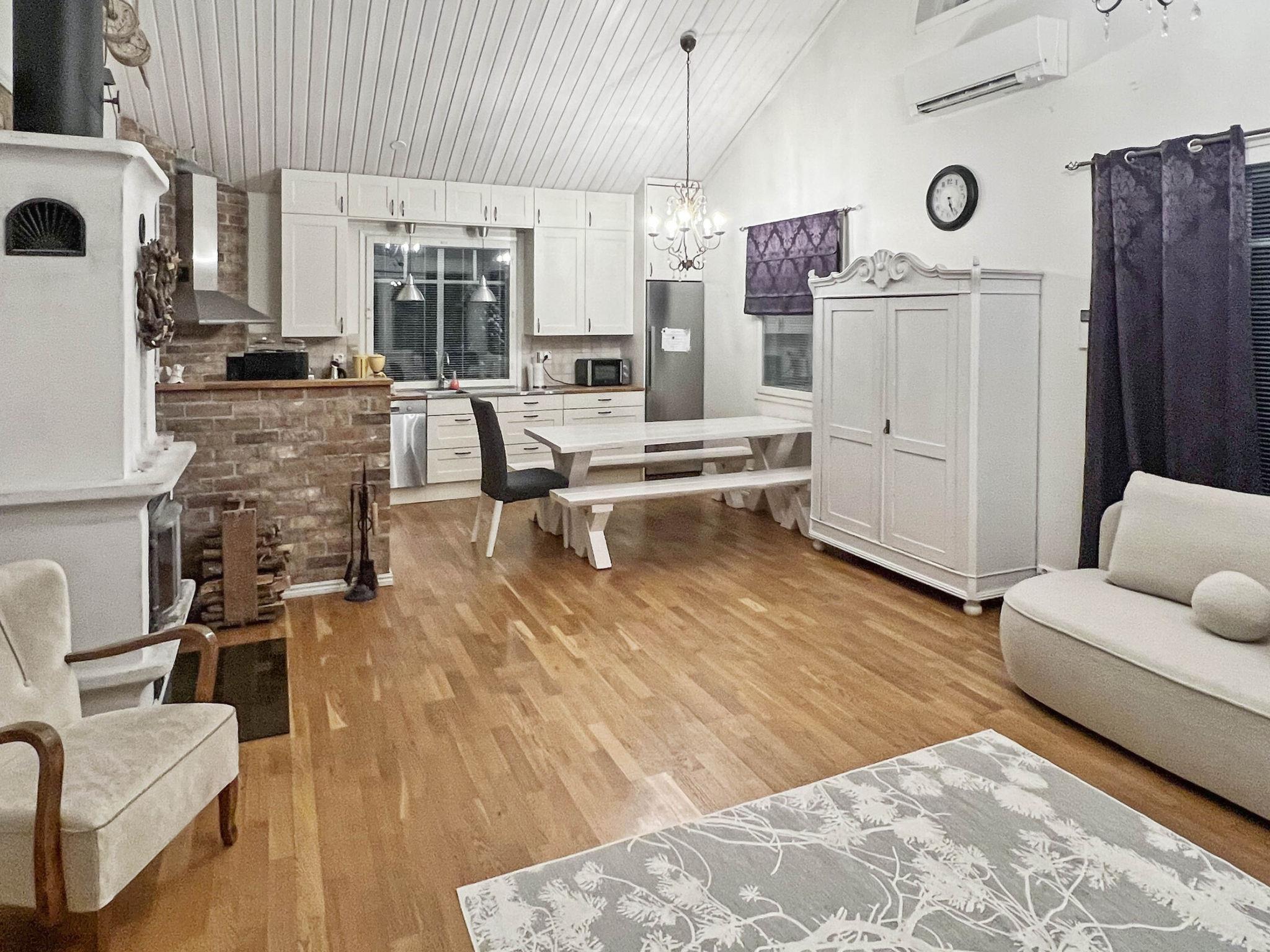 Tyttelsson is a cozy villa situated in a peaceful area near the services of Kankaanpää. The swimming beach is 550 m away, and there is also a rowing boat available for use. The villa has five bicycles for exploring the surroundings, as well as a SUP-board for paddling on Lake Venesjärvi.
