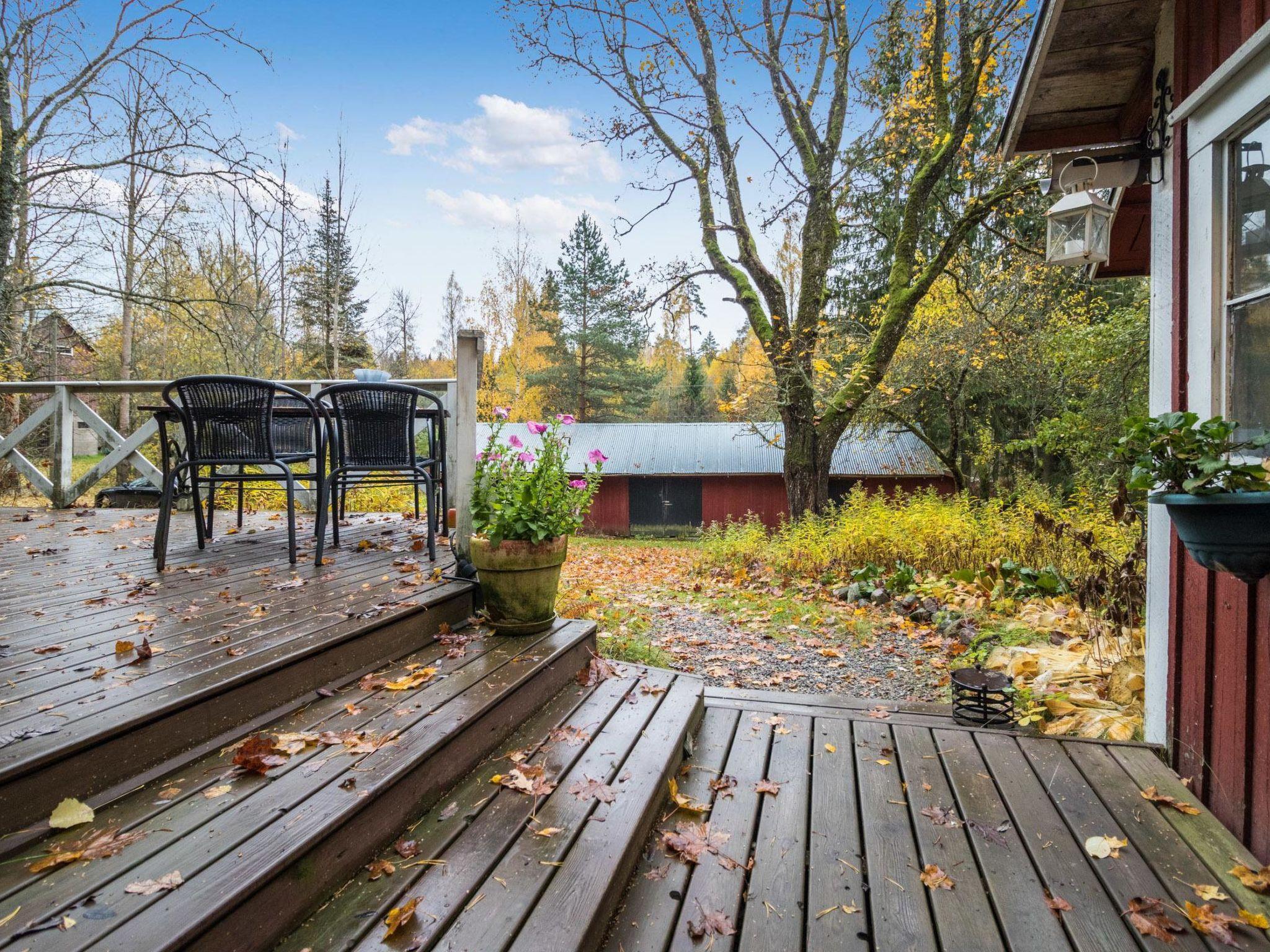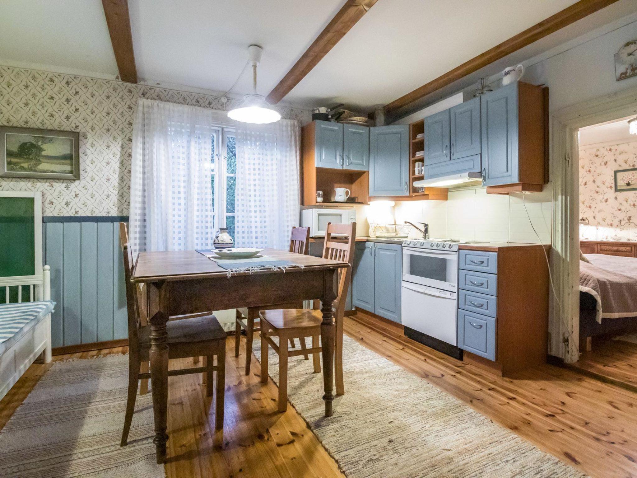 33 km westlich von Lohja, sogenanntes "Trockenlandhaus", See Lohjanjärvi 1 km (Länge 25 km, Breite 35 km), Bootsanlegeplatz am Lohjanjärvi-See, Boot vorhanden. Kommunales, gutes öffentliches Badeufer (4 km). Blockferienhaus, Baujahr 1890, renoviert 2005, Wohnküche mit 1 Zusatzbett, Schlafzimmer mit 1 Bett und 1 Etagenbett, Diele mit 2 Zusatzbetten, Sauna (Elektroherd), Ankleideraum, verglaste Terrasse. Idyllisches, altes, renoviertes "Gärtnerhaus" auf trockenem Boden. Bootsanlegeplatz am 1 km entfernten See Lohjanjärvi. Kommunales, gutes öffentliches Badestrand (4 km). Ferienhaus in leichter Hanglage, Bäume, Beerensträucher, Apfelbäume im Hofbereich. Kurhotel Päiväkumpu 7 km, Mustio Burg 20 km, Fiskars alte Eisengiesserei 20 km, Bison Park 4 km, Karkali strenges Naturschutzgebiet 2 km (auf dem Wasserweg), Helsinki 90 km, Turku 90 km. 1 Haustier ohne Gebühr, andere für EUROS 25 (Bezahlung in bar beim Eigentümer, bei der Ankunft).