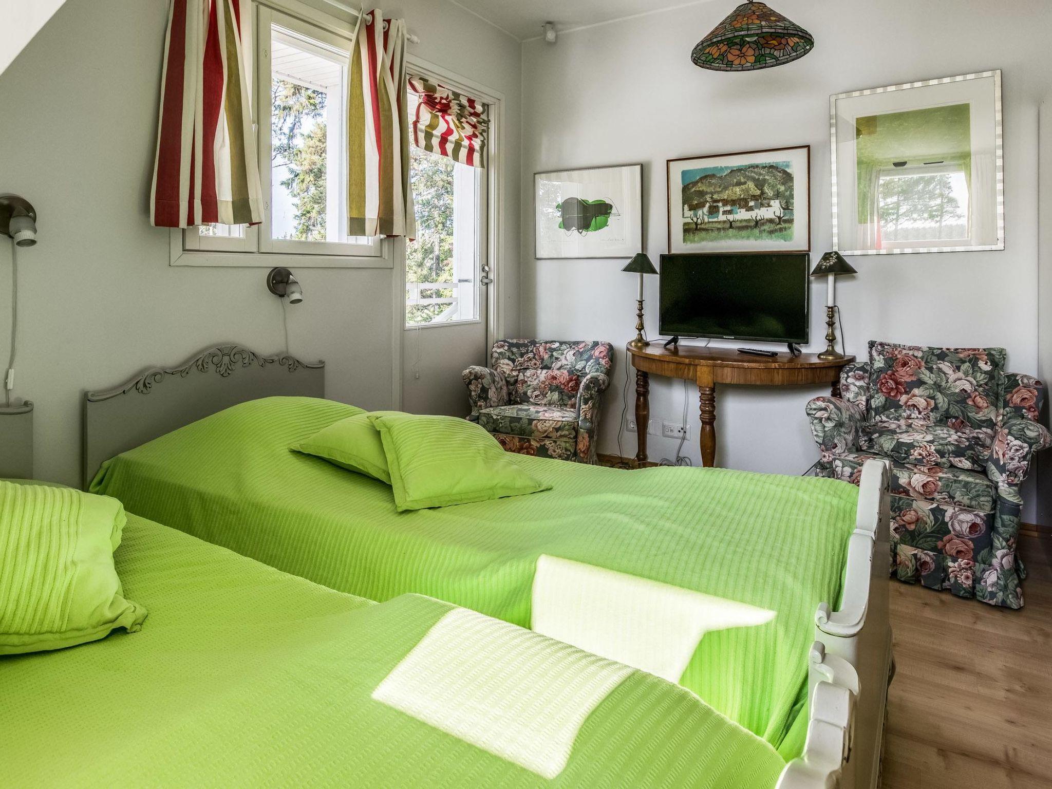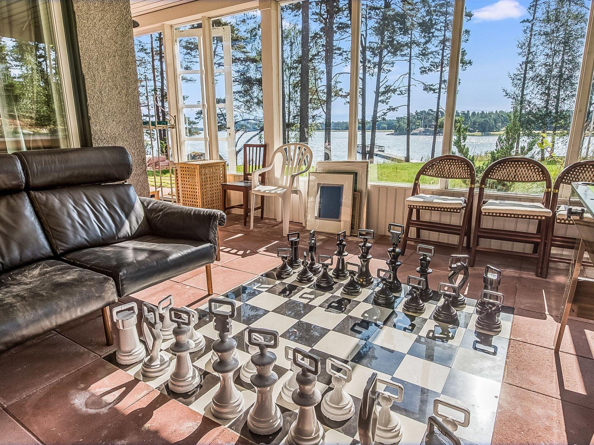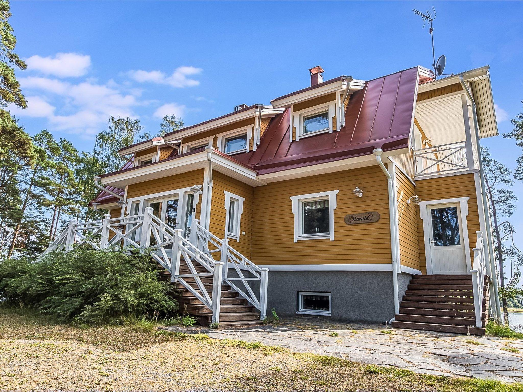 200 km westlich von Helsinki, Turunmaa Archipelmeer/Hiittinen-Gebiet 15 m, flacher und harter Sandboden in natürlichem Zustand, eigenes Boot, Ufer und grosse Anlegestelle für ein Boot. Anlegeboje für Segelboot. Berghütte von Firmen-Repräsentationsstandard, Baujahr 2009. 3-stöckiges Gebäube namens Villa Harald. Mittlere Etage: Küche, Esszimmer, Bibliothek und 1 Schlafzimmer mit Einzelbetten. Obergeschoss: 4 Schlafzimmer mit je 2 Einzelbetten (alle mit eigener Toilette, Dusche und eigenem Balkon). Im TV-Aufenthaltsraum im Obergeschoss besteht die Möglichkeit, zwei Zusatzbetten zu benutzen (Schlafcouch). Erdgeschoss: Saunabereich, Konferenzraum, Kaminzimmer, Bar (Getränke bitte mitbringen), verglaste Terrasse, Aussentreppe. Die Villa verfügt auch über eine Hydromassagewanne und 8 Fernseher. Küstensauna 25 m², Kaminzimmer, Sauna, 2 Duschen, Aussenkamin. ACHTUNG: Das Schwimmbad im Saunabereich ist im Moment nicht verfügbar. Herrliche Berghütte auf dem Hiittinen-Archipel. Auf sonnigem Grunstück, mit feinem Sandstrand. Nächster Nachbar ist die Berghütte Nr. 8650, Entfernung 30 Meter. Sicht zur benachbarten Berghütte. Tennisplatz zur Mitbenutzung mit der Villa Harald und Nachbarvilla Helga (Spielrunden müssen vor Ort gebucht werden, bitte eigenen Tennisschläger etc. mitbringen). Das Wasser (in diesem Bereich eisenreich) kann zum Kochen verwendet werden, der Kunde muss jedoch das Trinkwasser mitbringen. Das Dorf Hiittinen ist 2 km von der Berghütte entfernt. Gute Angelgewässer in der Nähe. Bootsfahrten und Angelführer nach Vereinbarung verfügbar. Der Hiittinen-Archipel ist berühmt für seine natürliche Schönheit und die ausgezeichneten Fischbestände. Es gibt 2 Lebensmittelgeschäfte, 2 Sommerrestaurants, 1 Café und Tankstelle auf der Insel. Auf dem Weg zum Ort gibt es eine kurze Seefahrt mit einem Schiff (der Aura), die Kasnäs mit Hiittinen verbindet. Hinweis! Sonntags fährt das letzte Schiff nach Kasnäs um 18.45 Uhr ab. Helsinki 200 km, Salo 80 km, Meri-Teijo Golf- und Skizentrum 60 km, Rosala 12 km (Wikingerzentrum), Kasnäs (Besucherzentrum der Inselgruppe Blaue Muschel), Kasnäs hat auch Anschluss an die Leuchtturminsel Bengtskär. Besuche des Leuchtturms von Bengtskär mit dem Boot können mit einem Unternehmer vor Ort arrangiert werden, die Reise dauert ca. 1 h. Hinweis! Die Bettwäsche ist im Preis inbegriffen.