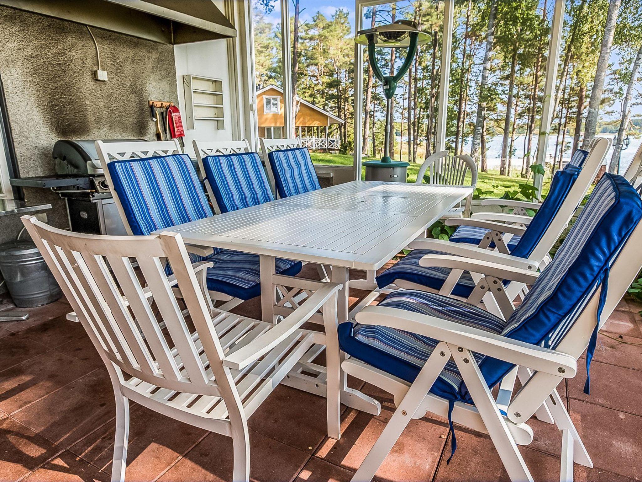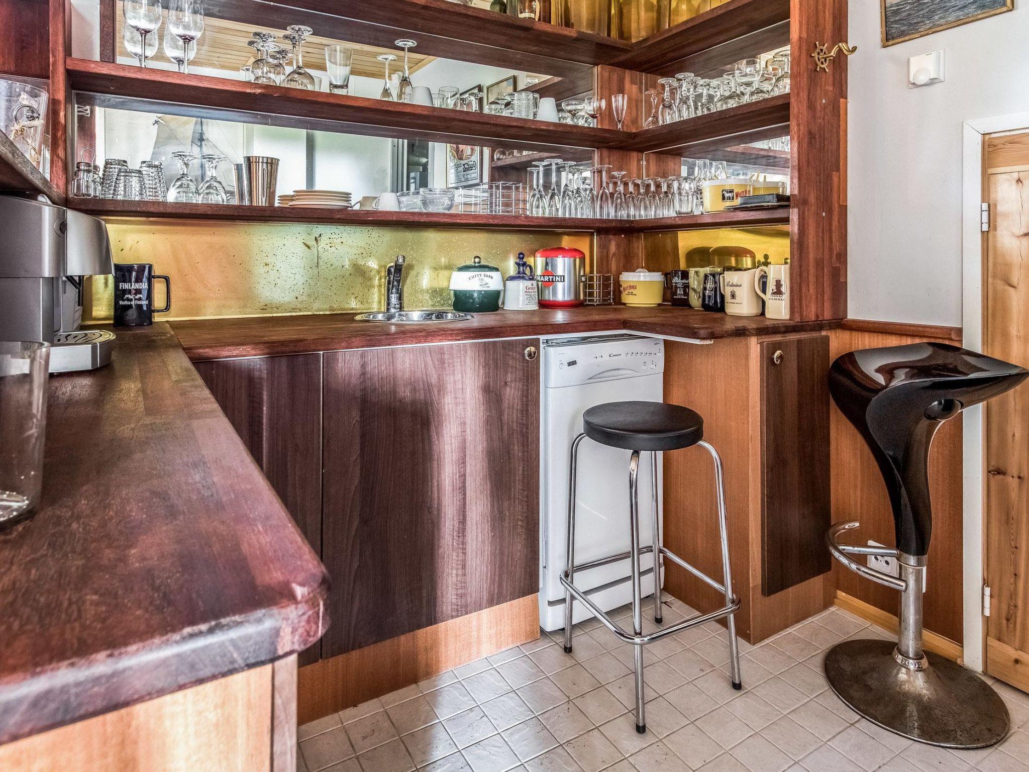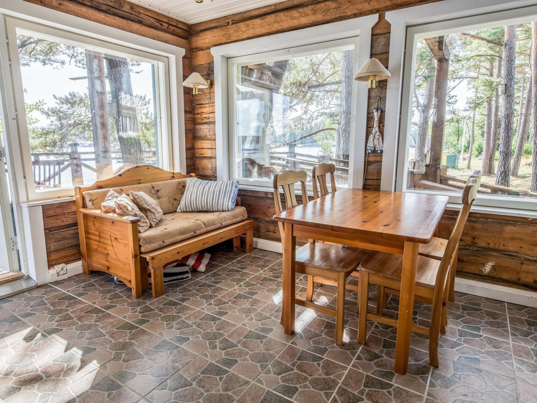 200 km westlich von Helsinki, Turunmaa Archipelmeer/Hiittinen-Gebiet 15 m, flacher und harter Sandboden in natürlichem Zustand, eigenes Boot, Ufer und grosse Anlegestelle für ein Boot. Anlegeboje für Segelboot. Berghütte von Firmen-Repräsentationsstandard, Baujahr 2009. 3-stöckiges Gebäube namens Villa Harald. Mittlere Etage: Küche, Esszimmer, Bibliothek und 1 Schlafzimmer mit Einzelbetten. Obergeschoss: 4 Schlafzimmer mit je 2 Einzelbetten (alle mit eigener Toilette, Dusche und eigenem Balkon). Im TV-Aufenthaltsraum im Obergeschoss besteht die Möglichkeit, zwei Zusatzbetten zu benutzen (Schlafcouch). Erdgeschoss: Saunabereich, Konferenzraum, Kaminzimmer, Bar (Getränke bitte mitbringen), verglaste Terrasse, Aussentreppe. Die Villa verfügt auch über eine Hydromassagewanne und 8 Fernseher. Küstensauna 25 m², Kaminzimmer, Sauna, 2 Duschen, Aussenkamin. ACHTUNG: Das Schwimmbad im Saunabereich ist im Moment nicht verfügbar. Herrliche Berghütte auf dem Hiittinen-Archipel. Auf sonnigem Grunstück, mit feinem Sandstrand. Nächster Nachbar ist die Berghütte Nr. 8650, Entfernung 30 Meter. Sicht zur benachbarten Berghütte. Tennisplatz zur Mitbenutzung mit der Villa Harald und Nachbarvilla Helga (Spielrunden müssen vor Ort gebucht werden, bitte eigenen Tennisschläger etc. mitbringen). Das Wasser (in diesem Bereich eisenreich) kann zum Kochen verwendet werden, der Kunde muss jedoch das Trinkwasser mitbringen. Das Dorf Hiittinen ist 2 km von der Berghütte entfernt. Gute Angelgewässer in der Nähe. Bootsfahrten und Angelführer nach Vereinbarung verfügbar. Der Hiittinen-Archipel ist berühmt für seine natürliche Schönheit und die ausgezeichneten Fischbestände. Es gibt 2 Lebensmittelgeschäfte, 2 Sommerrestaurants, 1 Café und Tankstelle auf der Insel. Auf dem Weg zum Ort gibt es eine kurze Seefahrt mit einem Schiff (der Aura), die Kasnäs mit Hiittinen verbindet. Hinweis! Sonntags fährt das letzte Schiff nach Kasnäs um 18.45 Uhr ab. Helsinki 200 km, Salo 80 km, Meri-Teijo Golf- und Skizentrum 60 km, Rosala 12 km (Wikingerzentrum), Kasnäs (Besucherzentrum der Inselgruppe Blaue Muschel), Kasnäs hat auch Anschluss an die Leuchtturminsel Bengtskär. Besuche des Leuchtturms von Bengtskär mit dem Boot können mit einem Unternehmer vor Ort arrangiert werden, die Reise dauert ca. 1 h. Hinweis! Die Bettwäsche ist im Preis inbegriffen.