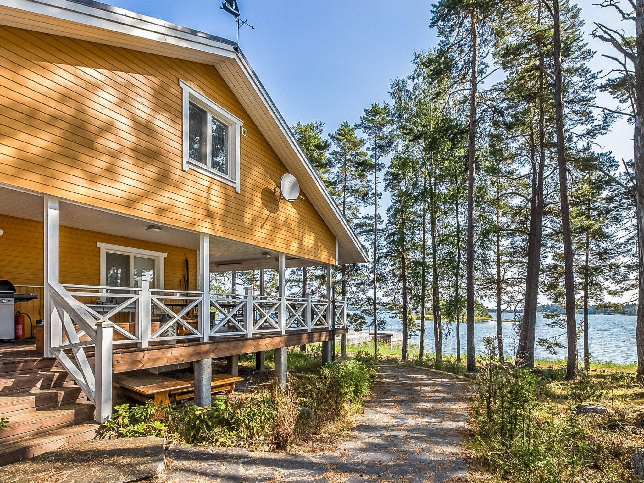 200 km westlich von Helsinki, Archipel / Hiitinen 20 m, flacher Natursandstrand, eigenes Boot, Anlegestelle (8 x 15m). Die getäfelte Villa, Baujahr 2007, Wohnküche, 1 Zustellbett, Fernsehzimmer mit Schlafsofa, Sauna (mit Holz beheizt), Duschbad und Ankleidezimmer. Im Obergeschoss (steile Treppe) Schlafzimmer (Doppelbett) und Schlafzimmer (2 Betten) und Toilette. Umfangreiche überdachte Terrasse. Eigene separate holzbeheizte Sauna am Meer. Sauna kann auch als Rauchsauna beheizt werden. Der Eigentümer wird den Gästen Anweisungen schicken. Villa mit sonnigem Grundstück, im Hiittinen-Archipel. Sandstrand, 2 grosse Anlegestellen. Der nächste Nachbar ist das zweite Miethaus (Nr. 5133), Entfernung 30 Meter. Tennisplatz hinter der Villa zur Mitbenutzung mit zwei anderen Häusern (Spielrunden müssen im Voraus beim Hausbesitzer gebucht werden, nehmen Sie bitte Ihren eigenen Tennisschläger etc. mit). Das Brunnenwasser (eisenreich) kann zum Kochen verwendet werden, der Kunde muss jedoch das Trinkwasser mitbringen. Gute Angelgewässer. Bootstransport und Angelführer sind nach gesonderter Vereinbarung erhältlich. Angelausrüstung zu mieten. Nach Hiittinen fährt die Fähre m/s Aura mehrmals täglich, Fahrzeit 25 Minuten. Hiittinen Dorf 2 km und 12 km Rosala (wie das Wikingerzentrum). Helsinki 200 km, Salo 80 km, Sea-Teijo-Ski und Golfzentrum 60 km, Kasnäs (z.B. Archipel-Besucherzentrum Blaue Muschel) 25 Minuten mit der Fähre mit der Möglichkeit, einen Leuchtturm auf der Insel Bengtskär zu besuchen. Bettwäsche im Mietpreis enthalten.