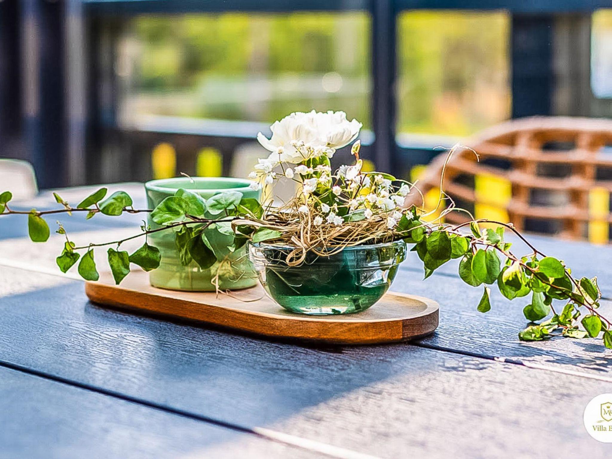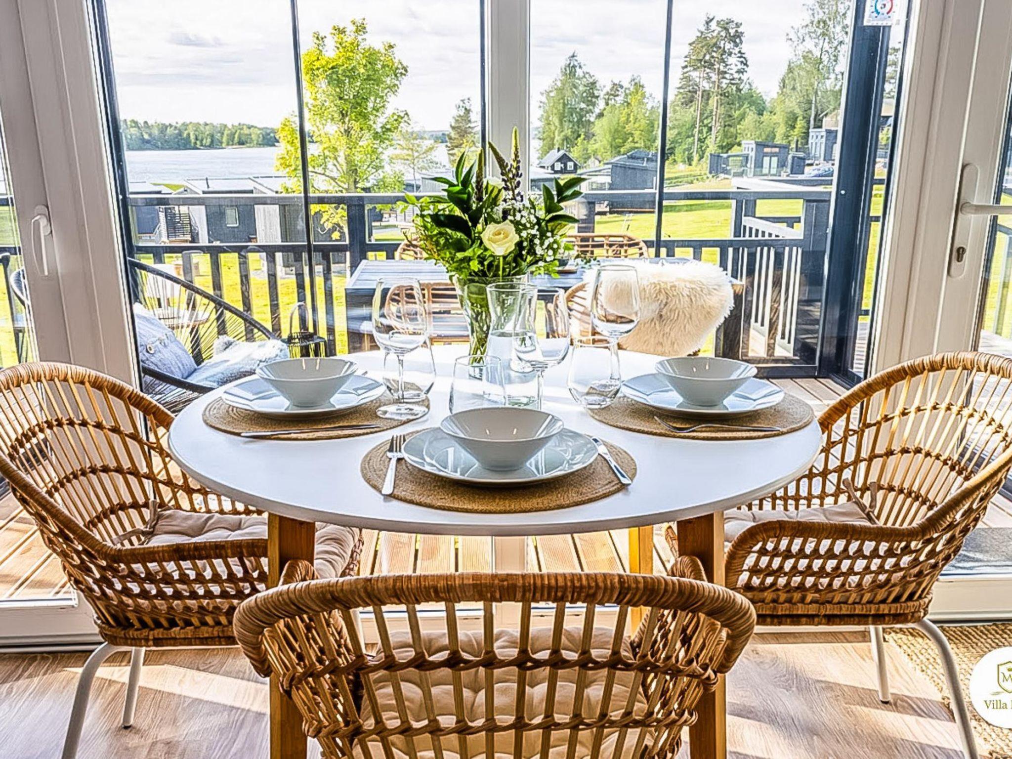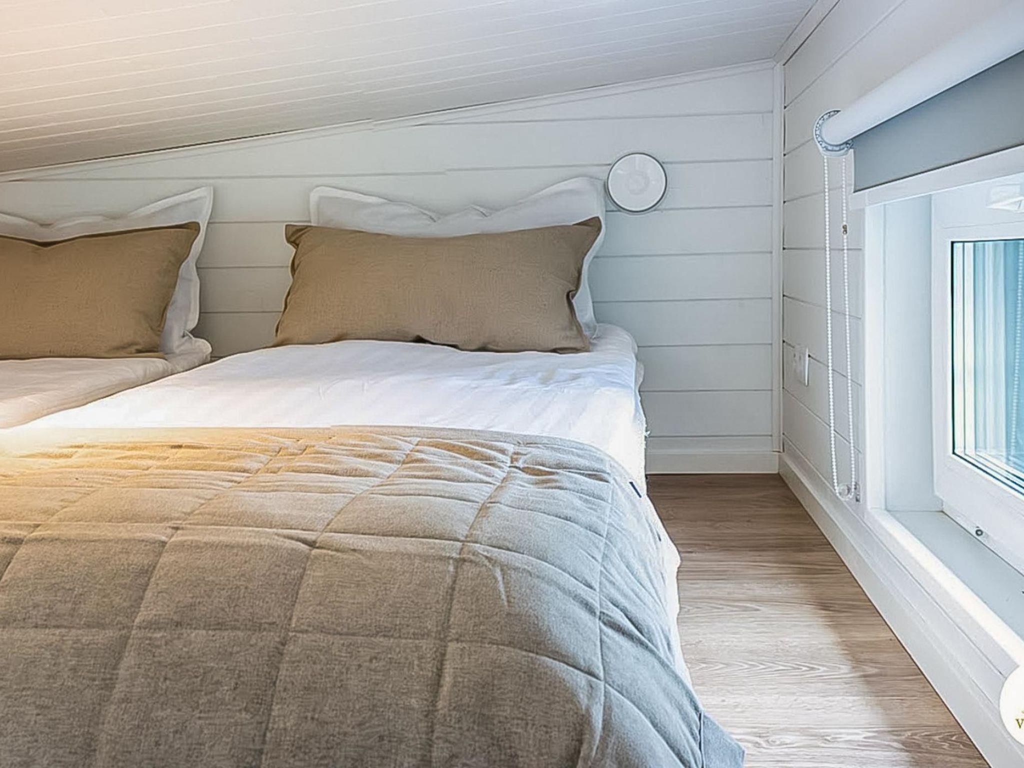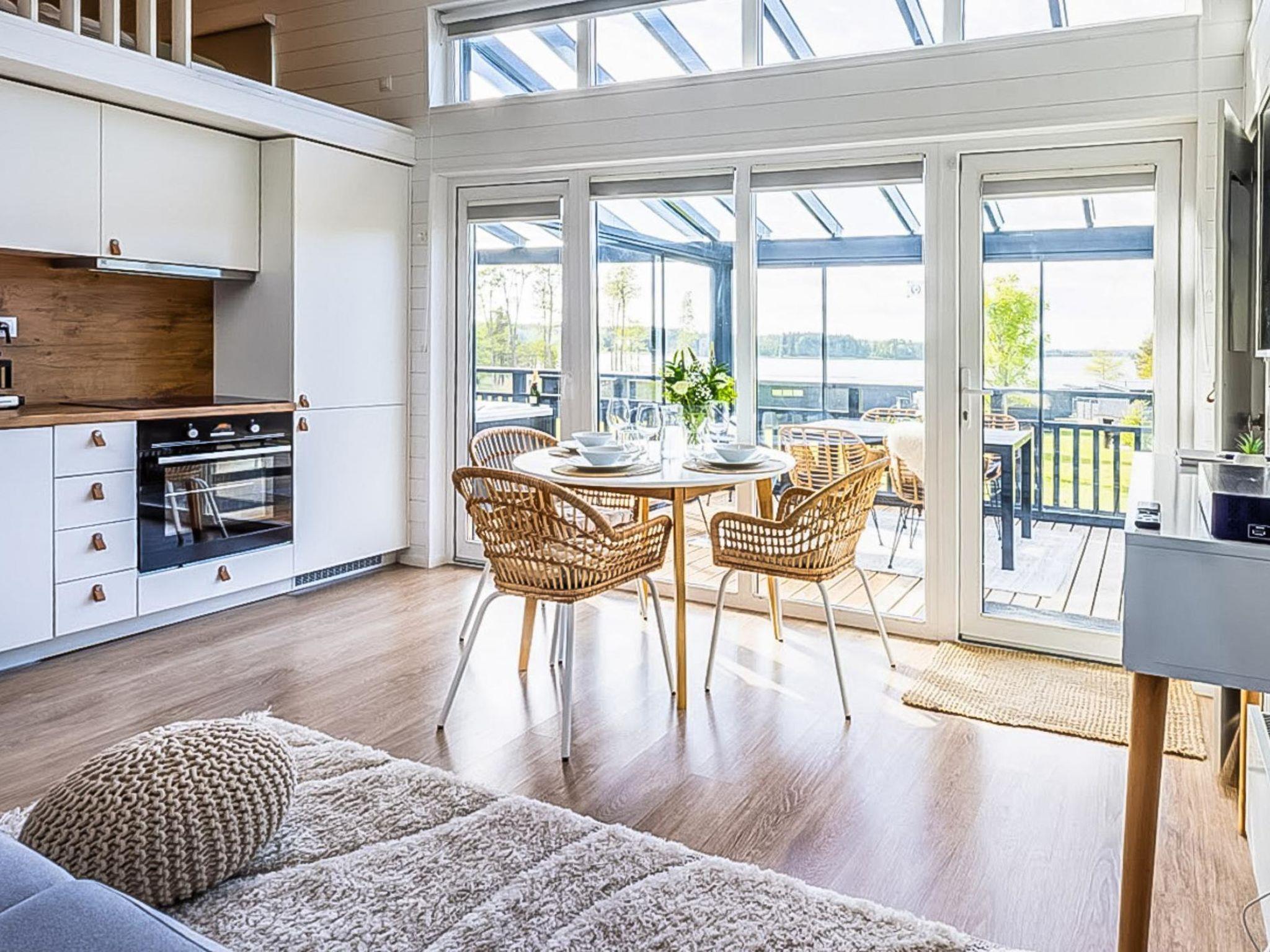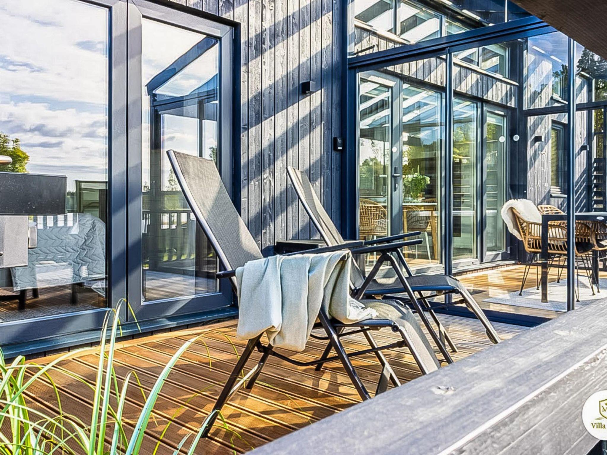 Villa Eden has an integrated space consisting of kitchen and living room. The space is equipped with air source heat pump. There are also bedroom, two lofts with windows, washroom with sauna, and large glazed seaside terrace with outdoor hydro-massage, barbecue and dining group.