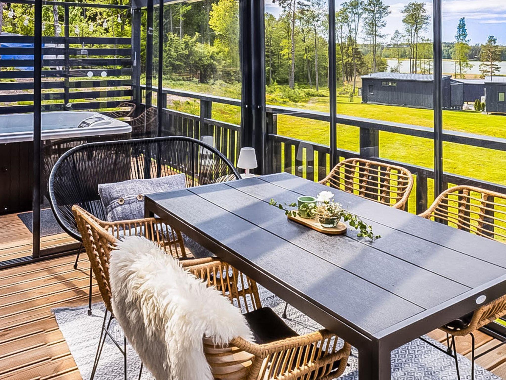 85 km to the southwest from Turku, Archipelago 100 m, boat pier. The beach is shared between the holiday village villas.
