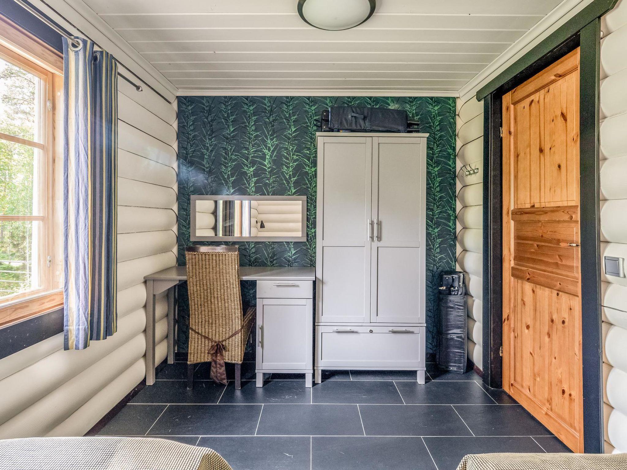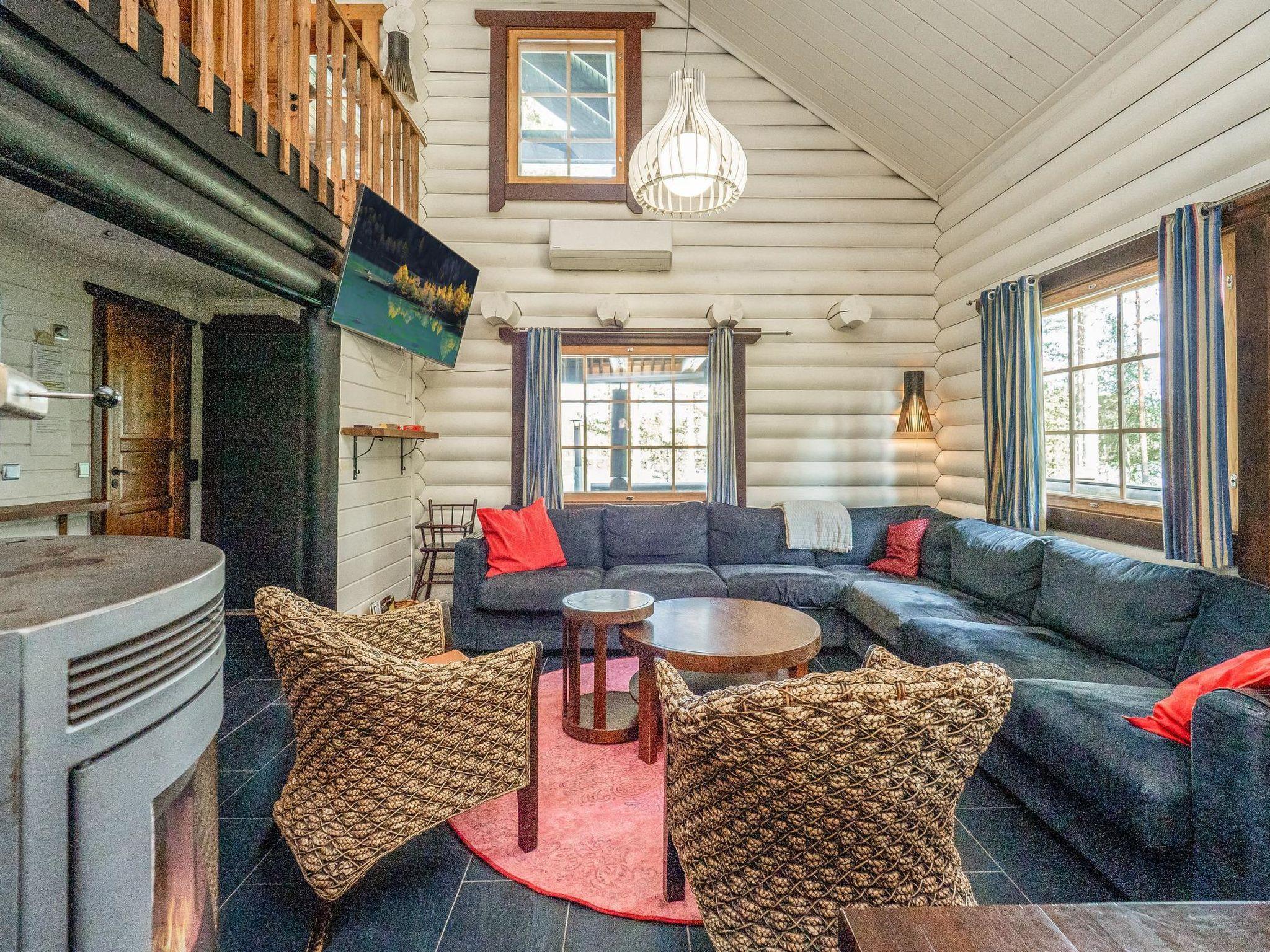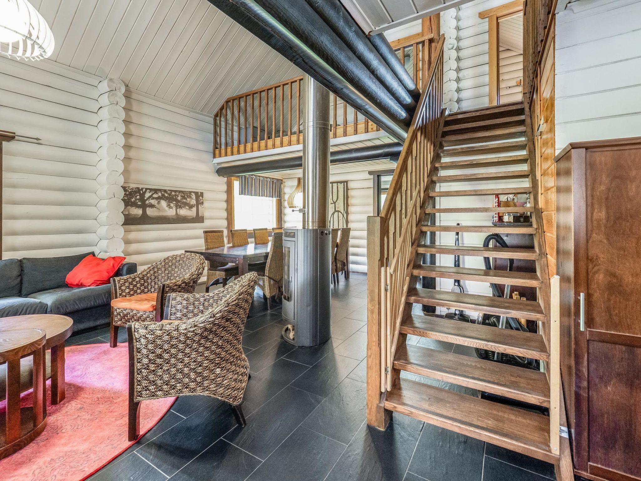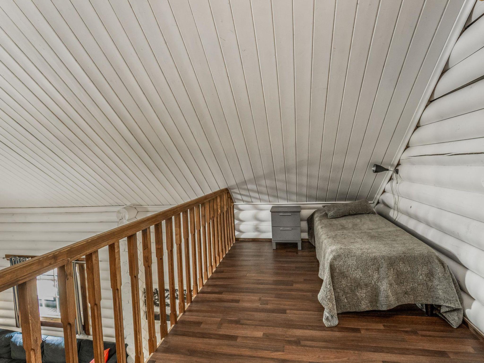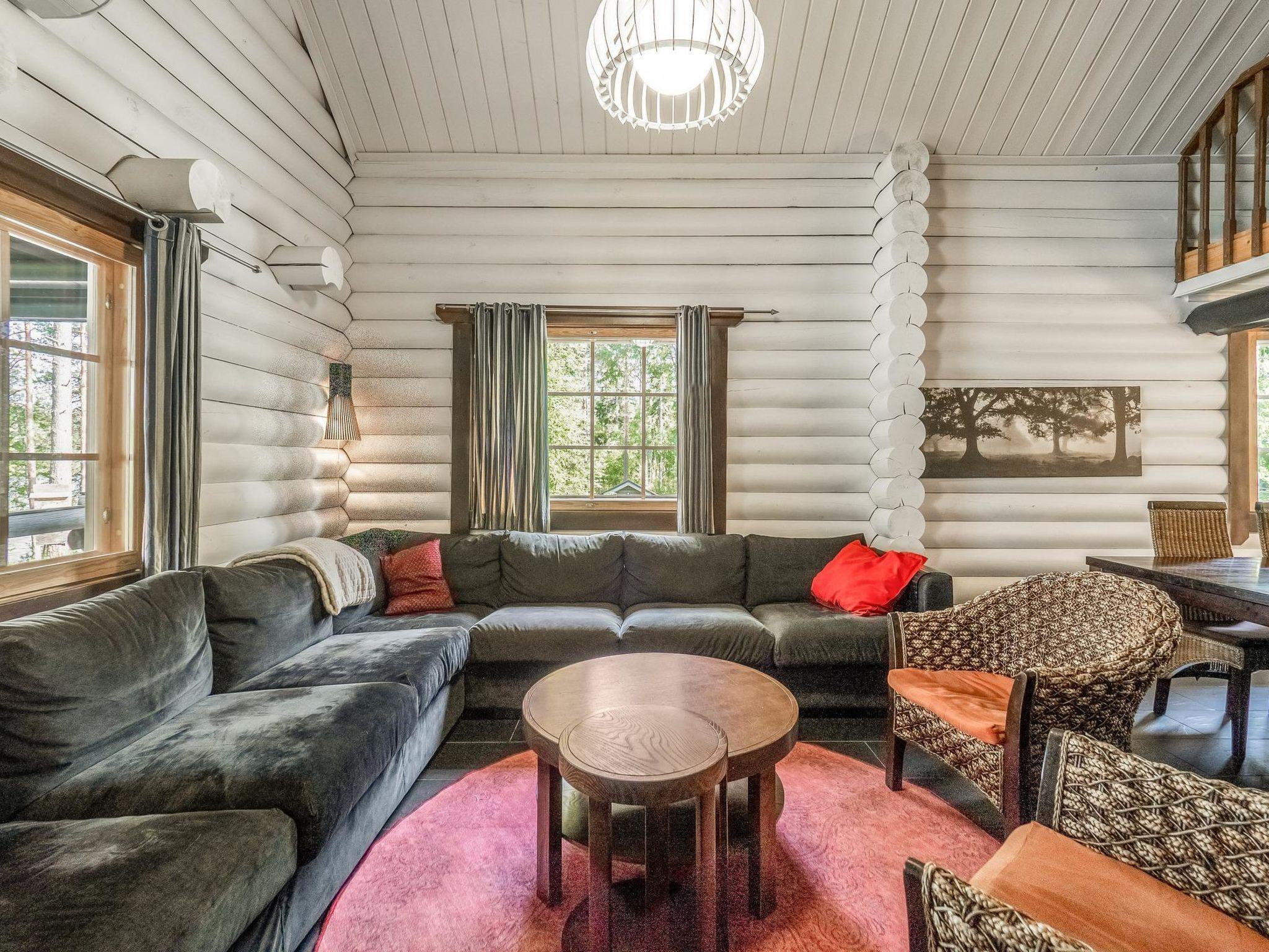 85 km to the west of Jyväskylä, Lake Alasenjärvi 25 m (length 1.6 km, width 350 m), shallow, hard, sandy beach and private boat. Log villa, built in 2008, features a living room with a large corner sofa set, flat-screen TV, and dining area with dining group for ten people. The kitchen is equipped with amenities such as an ice maker and a ceramic stove with an oven. On the ground floor, there are two bedrooms, each with 2 beds. Separate WC, washroom with 2 showers, sauna (electric sauna stove), and 32 m² wide terrace. Stone-built floors with underfloor heating and an air source heat pump for cooling/heating.