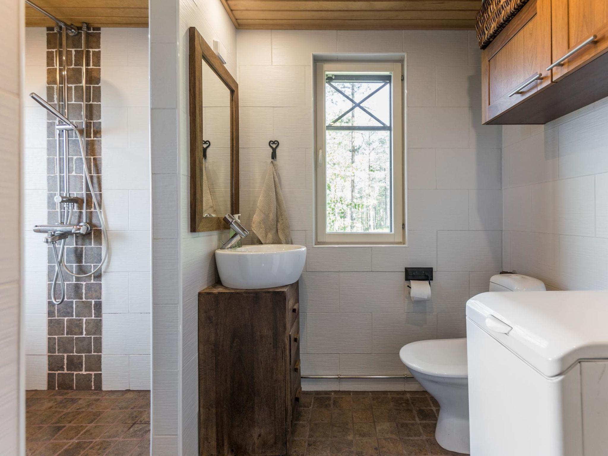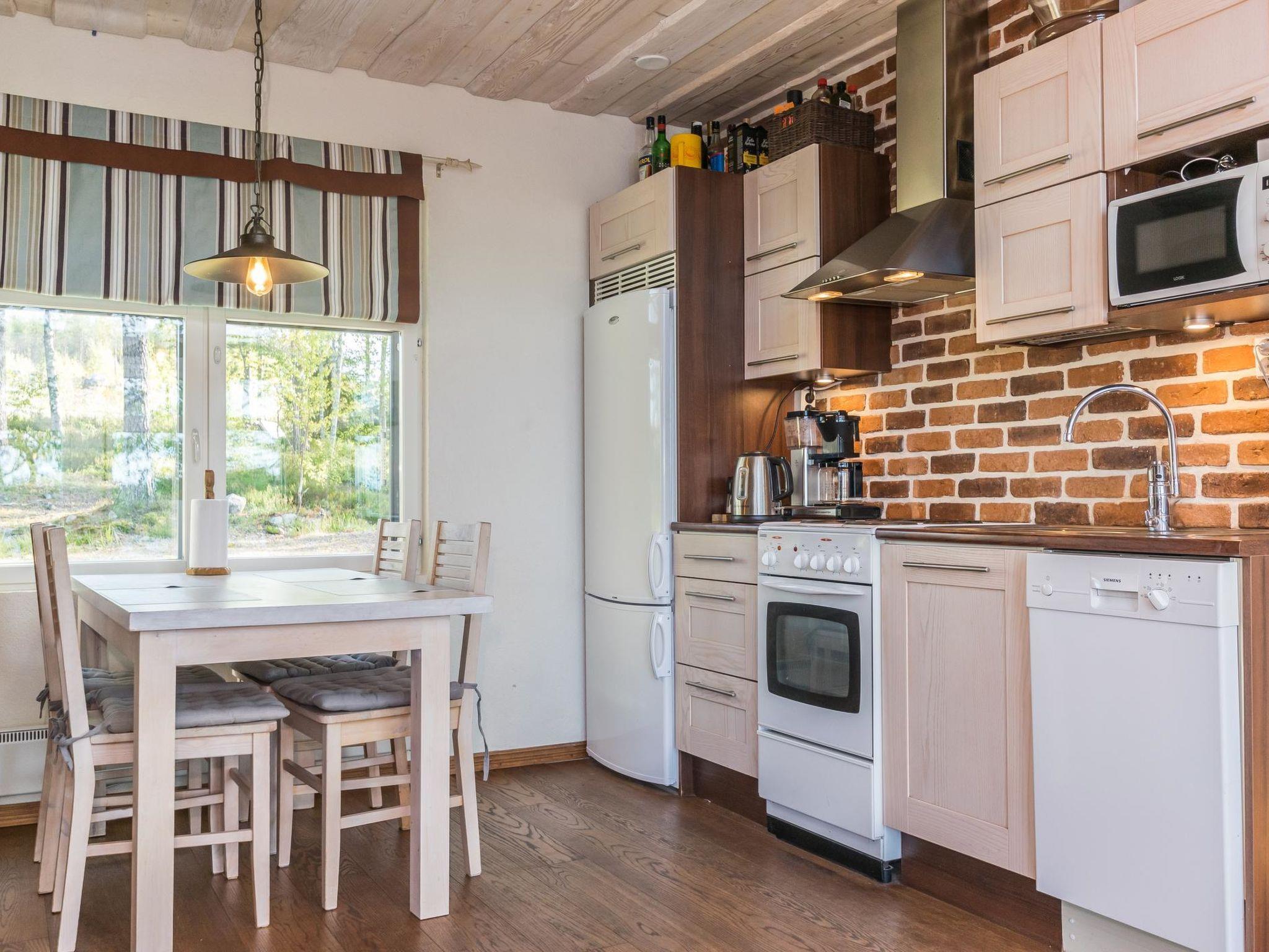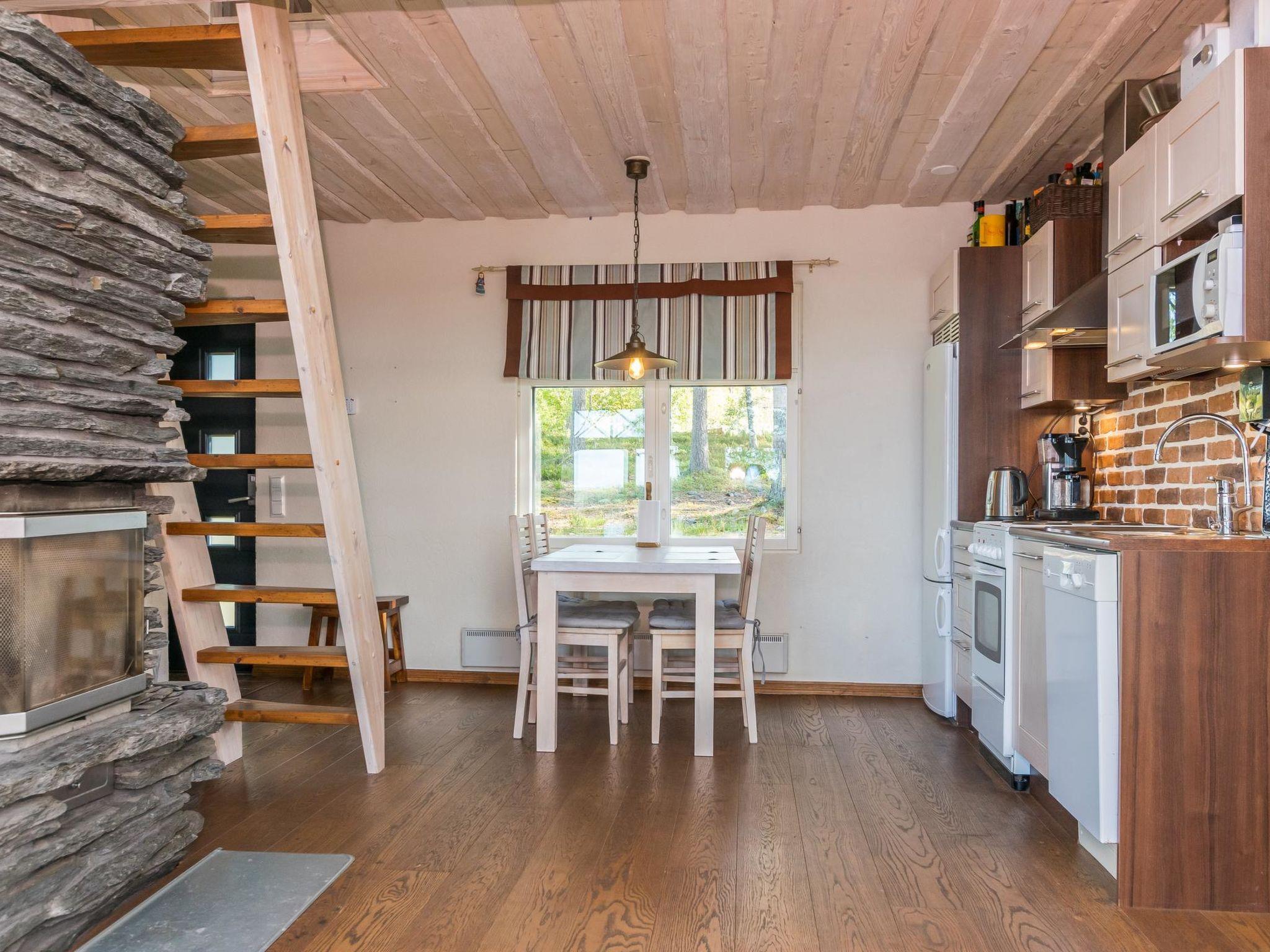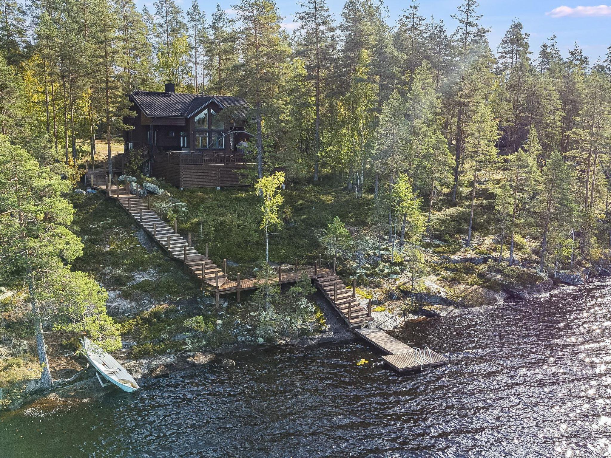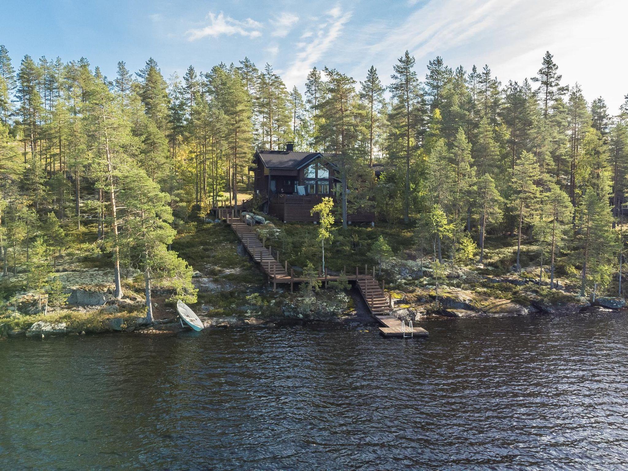 Located 82 km west of Jyväskylä, Lake Yltiä 30 m, deep rocky shore, own dock, and a rowing boat. The water is about 3 m deep at the end of the dock. The cabin is built of stone (2009) and includes a living room and open-plan kitchen. The living room has armchairs and a heat-storing fireplace. The kitchen area has a dining table for four and is well-equipped. There is one bedroom with a double bed.