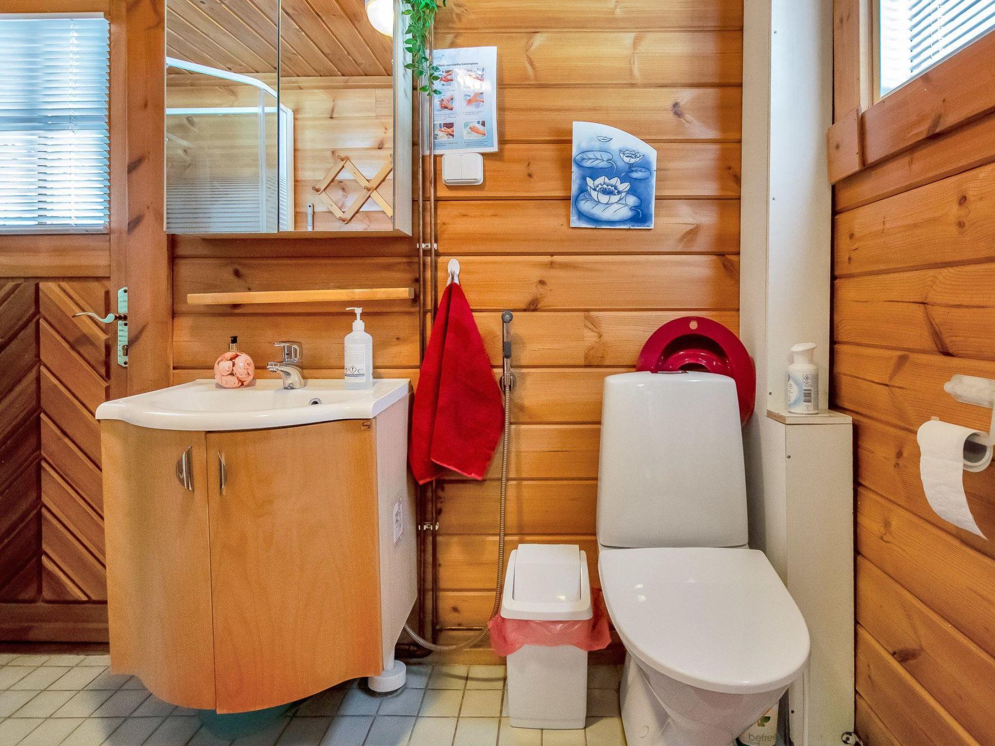The cabin has a bedroom with double bed. Living room/kitchen, heat reserving fireplace, air source heat pump, spreadable sofa bed in the living room. There is an electric sauna, shower cubicle and toilet in the washroom in the same building.