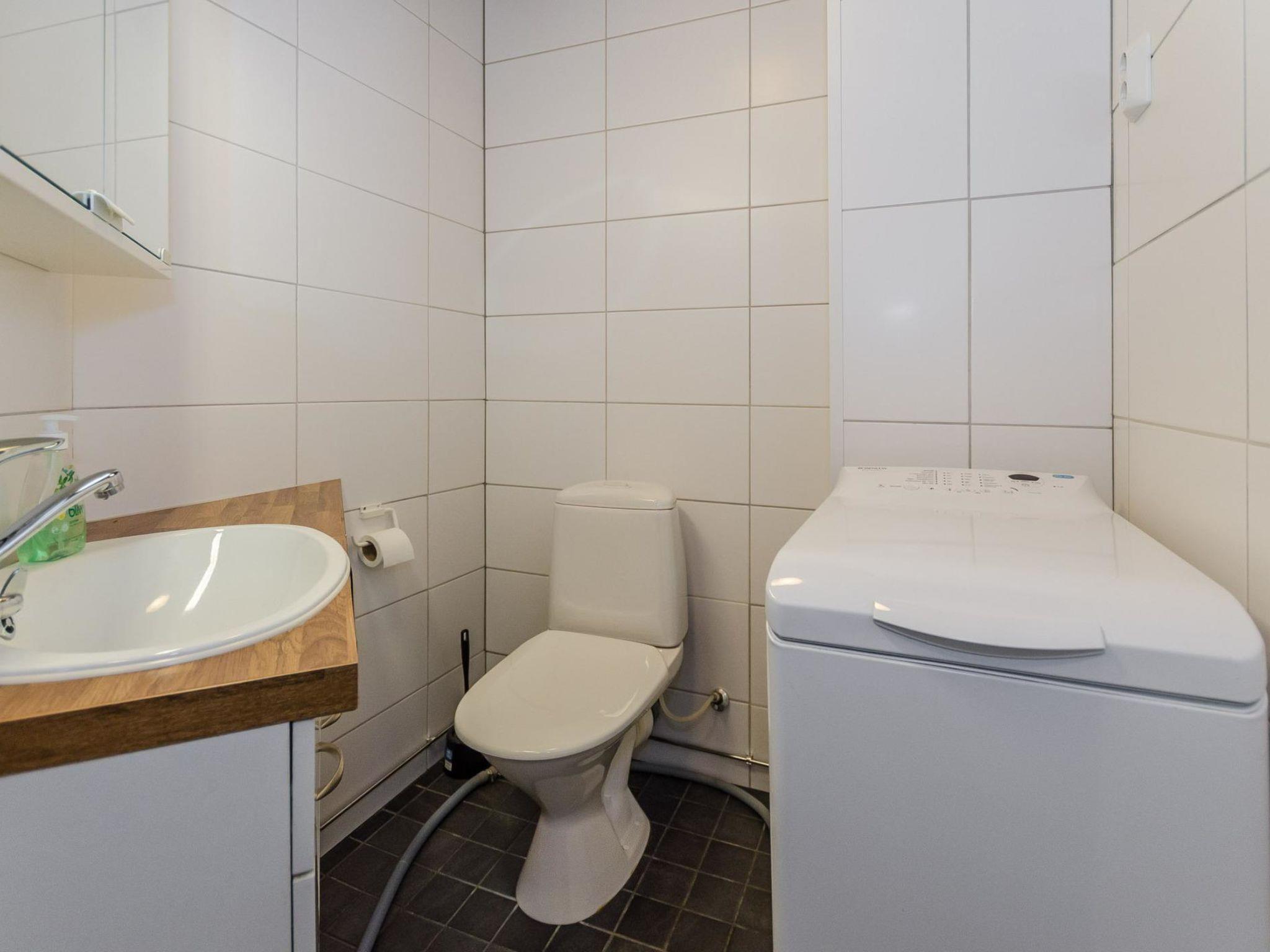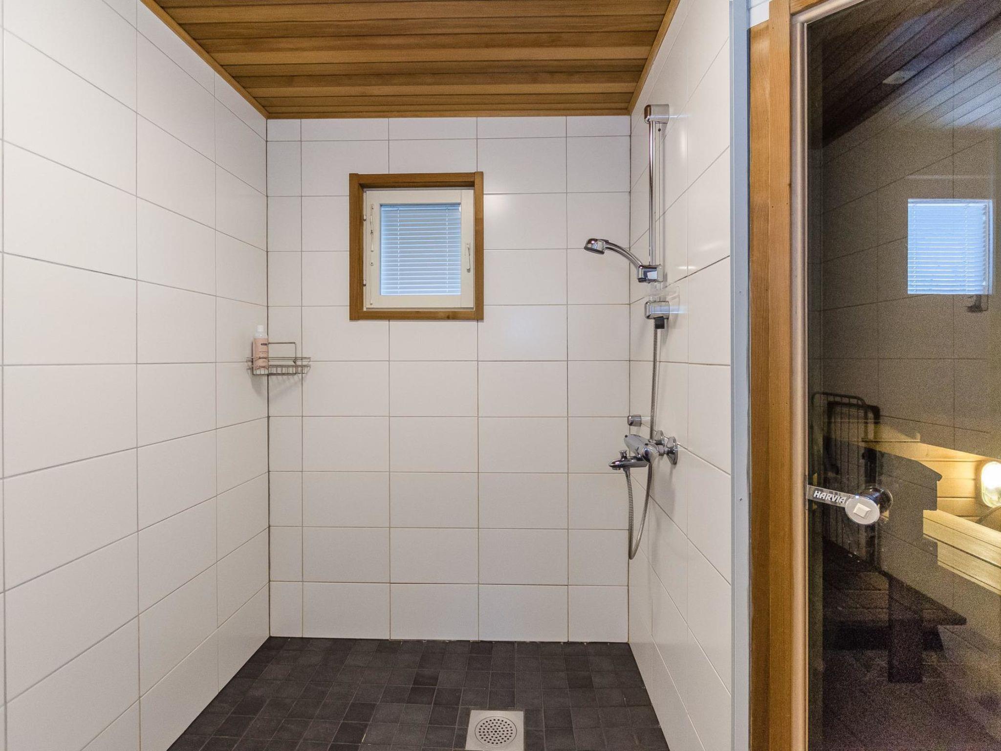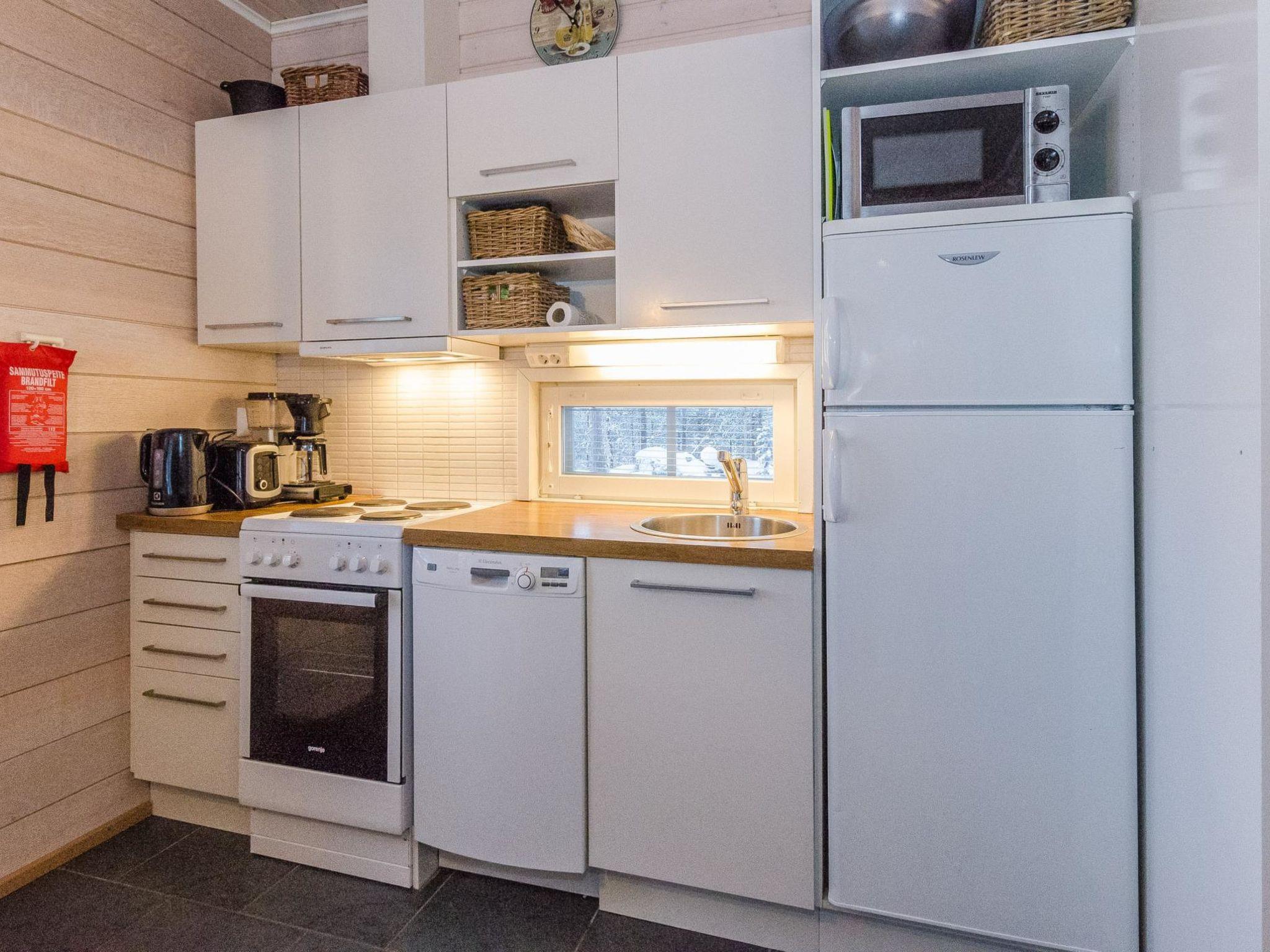 Wooden cabin, built in 2012, features a living room/kitchen and a bedroom with a double bed on the ground floor. The ground floor also includes a bathroom, a sauna with an electric sauna stove, and a separate WC.