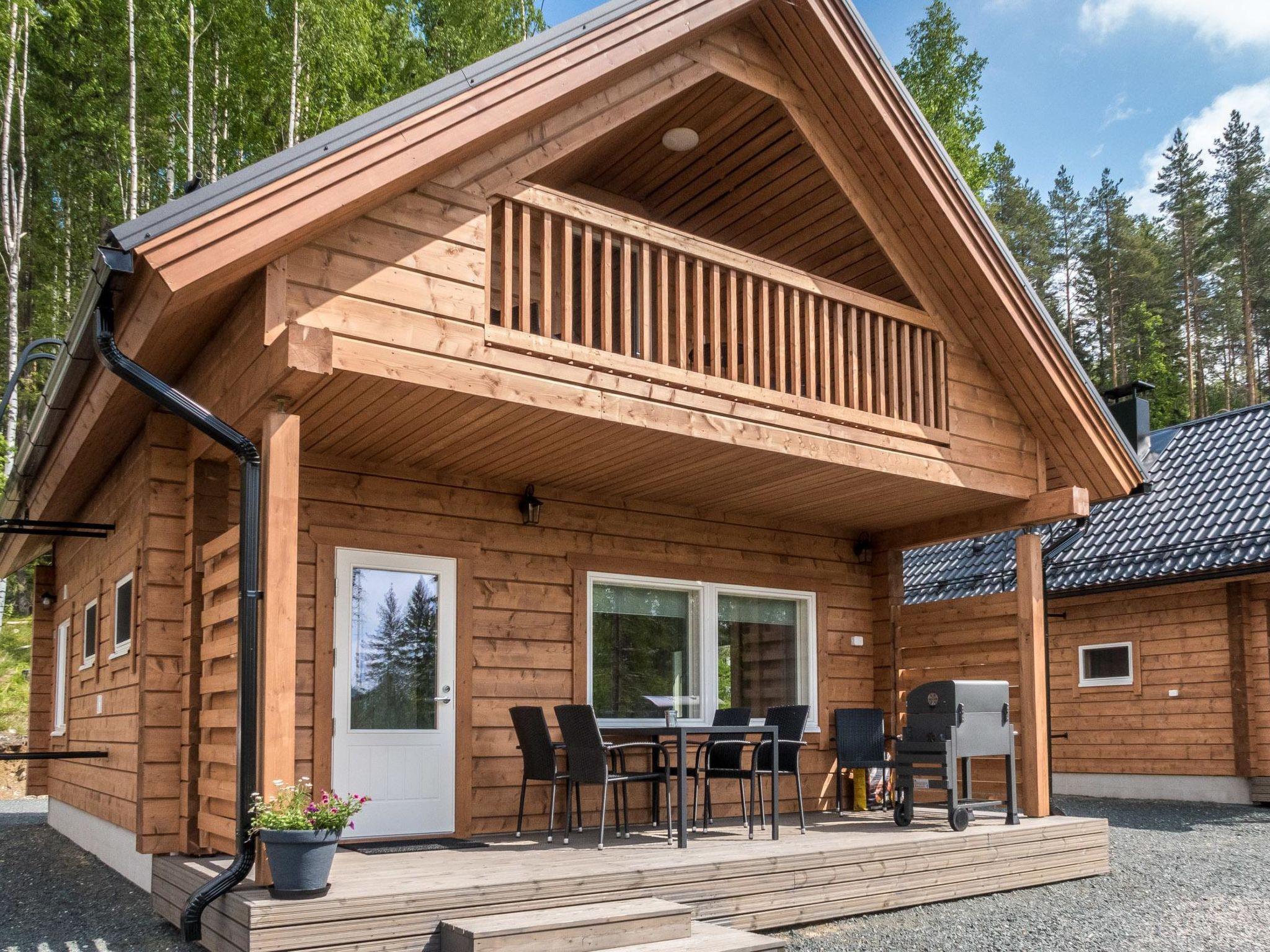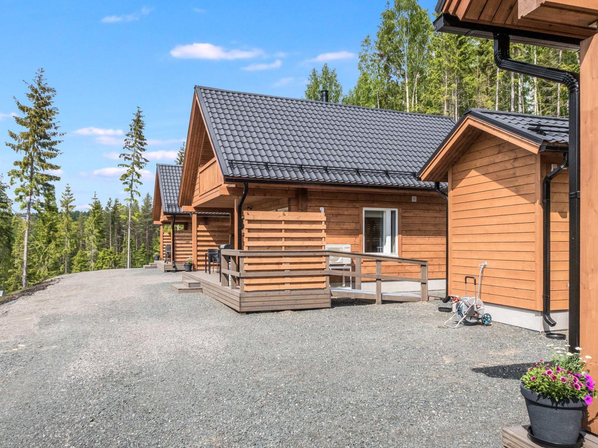Laminated-log cabin, built in 2022, near the lake Jerojärvi in Koli tourist area (Koli 4.5 km). The cabins (4 cabins in a row) have shared shallow sand beach, pier and lean-to shelter, distance is about 200 m.
