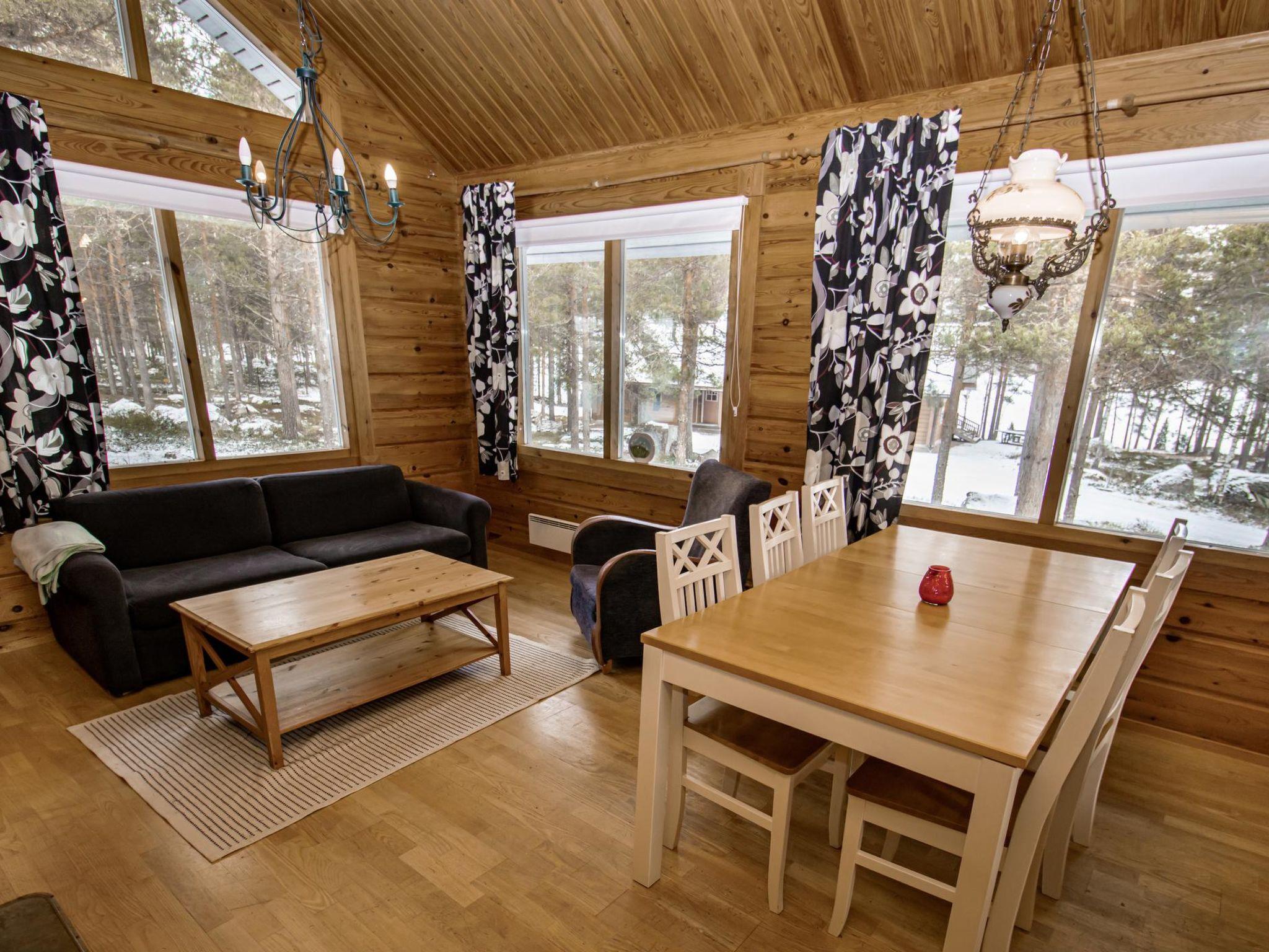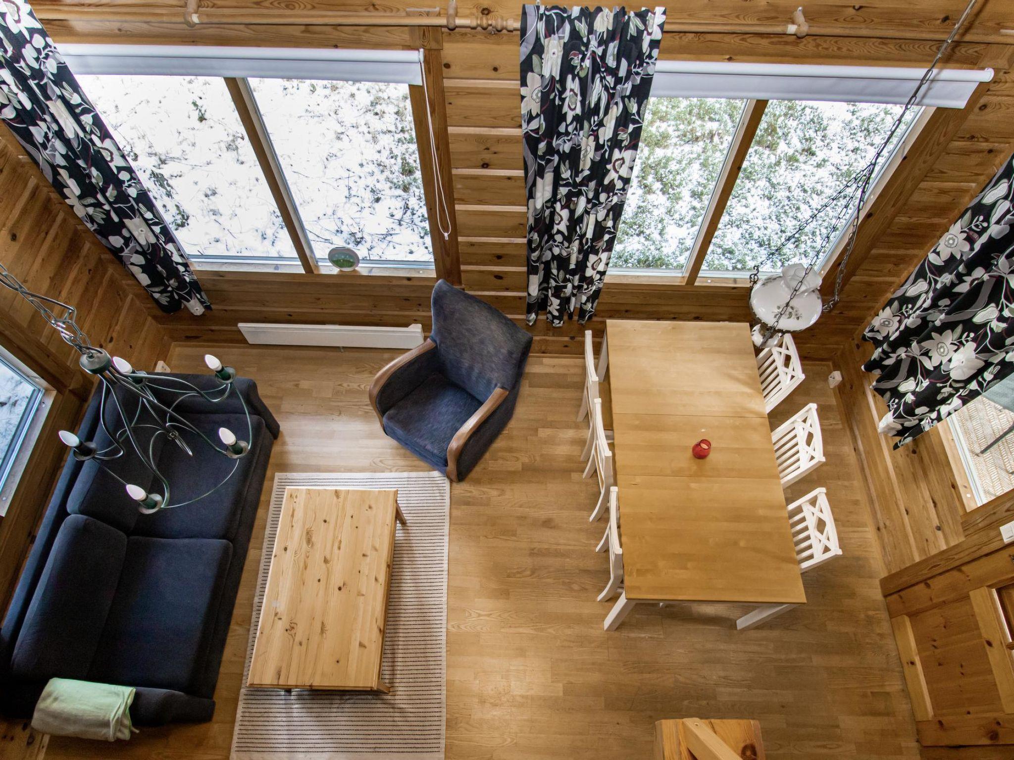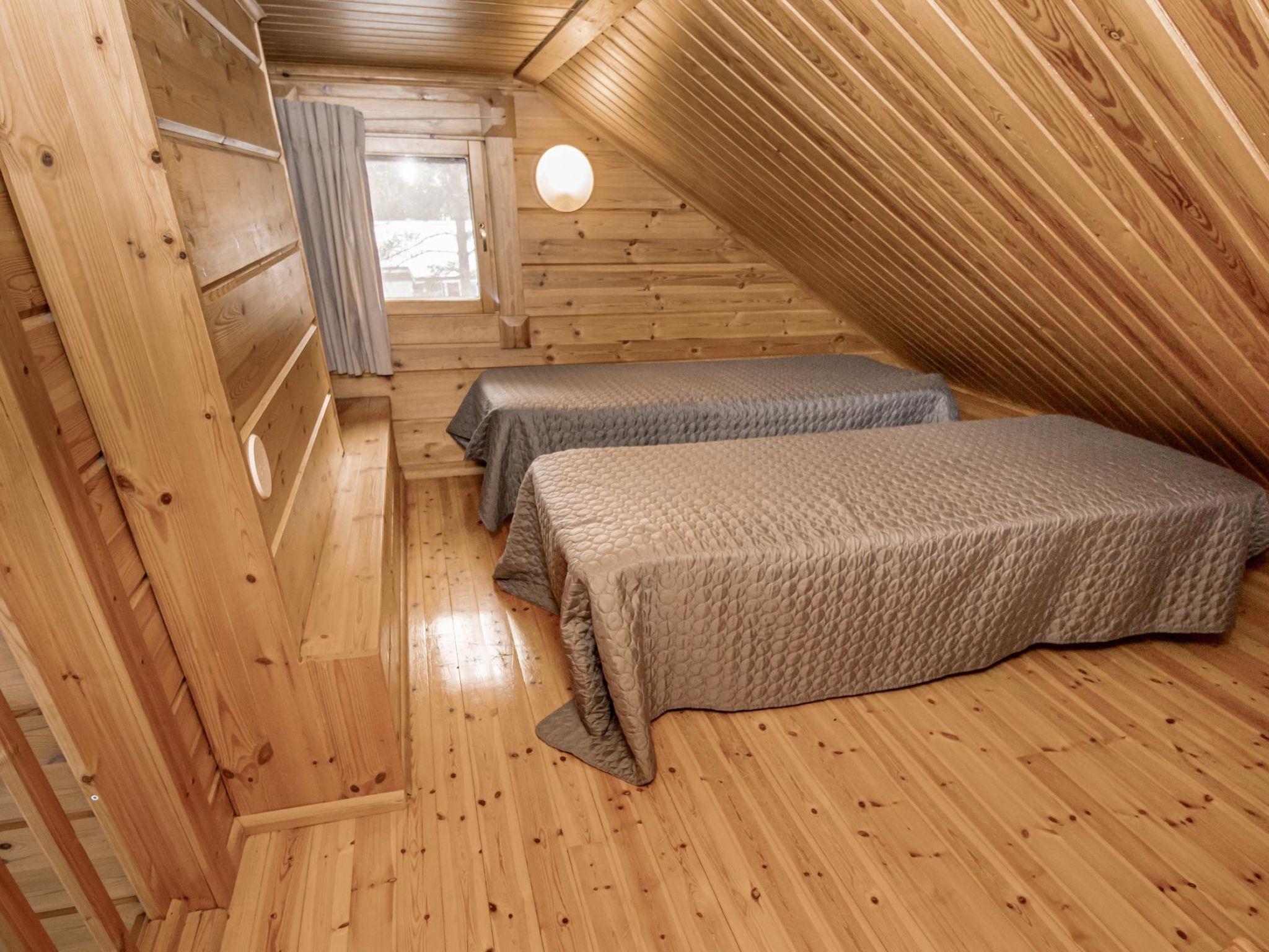 A cozy cabin (49 m²) by the sea. The cabin features a cozy living area and a well-equipped, recently renovated open kitchen. The living space is enhanced by a fireplace, creating a warm ambiance. On the ground floor, there is an additional bedroom with two beds, an attached WC/shower room, and an electric sauna. The loft upstairs accommodates four beds. There are two parking spaces in the yard. There is an air source heat pump that both wams and cools.